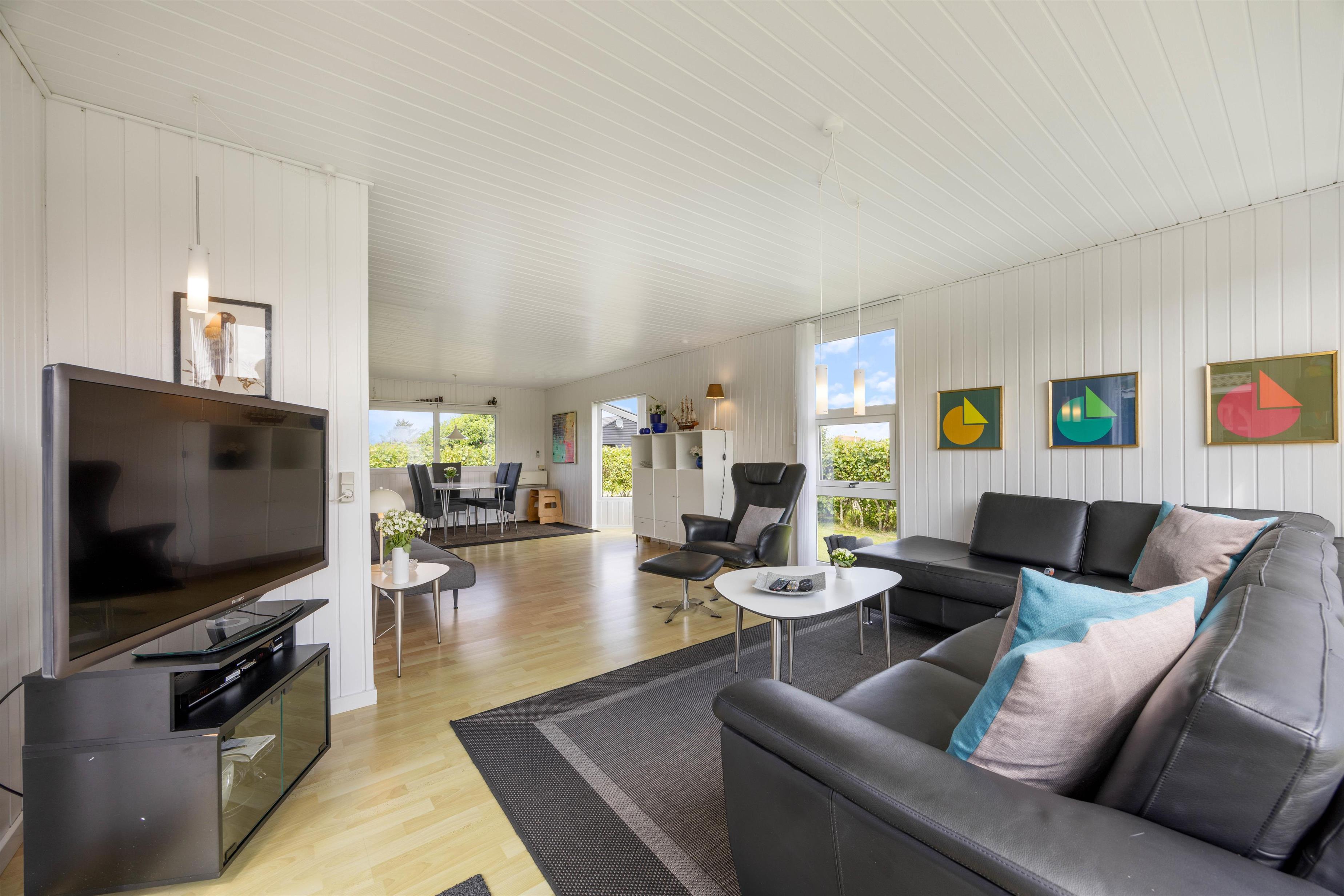 Sommerhuset byder på et opholdsrum på hele 65 kvadratmeter, som indbyder til hygge og samvær med hele familien. For at gøre jeres ophold så behageligt som muligt, er feriehuset her indrettet med en masse praktiske faciliteter. Det veludstyret køkken har bla. En opvaskemaskine, som vil klare den kedelige opvask for jer, så I kan bruge tiden sammen med familien i stedet. I kan tilbringe en masse hyggelige aftener i stuen. I feriehuset finder i en energibesparende luft-til-luft varmepumpe, som vil bidrage til et behageligt indeklima året rundt.