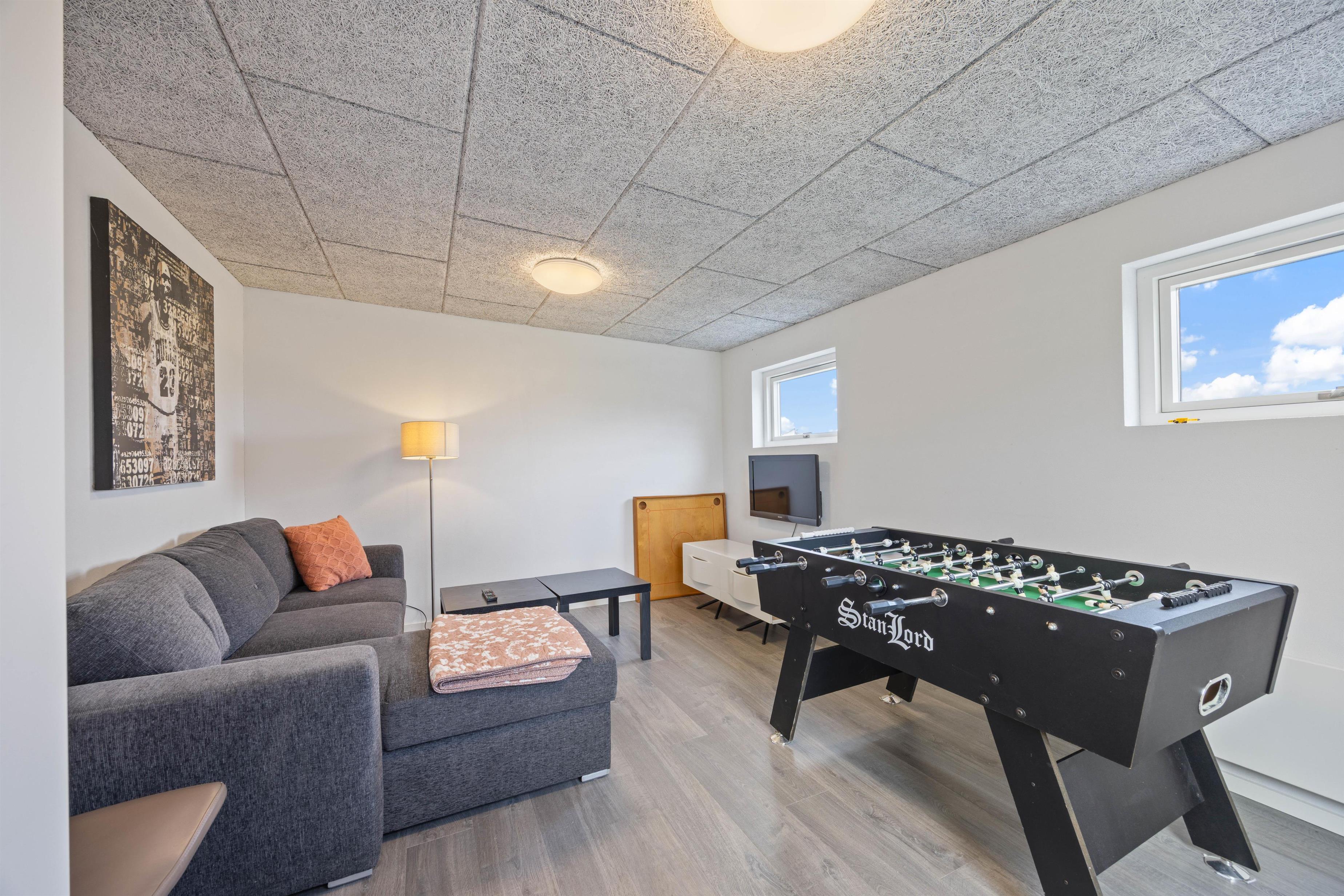 De store vinduer i huset sørger for et godt lysindfald uanset årstiden. I dette moderne og stilfulde feriehus kan du tilbringe en afslappende ferie med din familie eller dine bedste venner. Huset er yderst veludstyret og råder både over vaskemaskine, tørretumbler og opvaskemaskine, der alle er med til at gøre din ferie så bekvem så mulig.