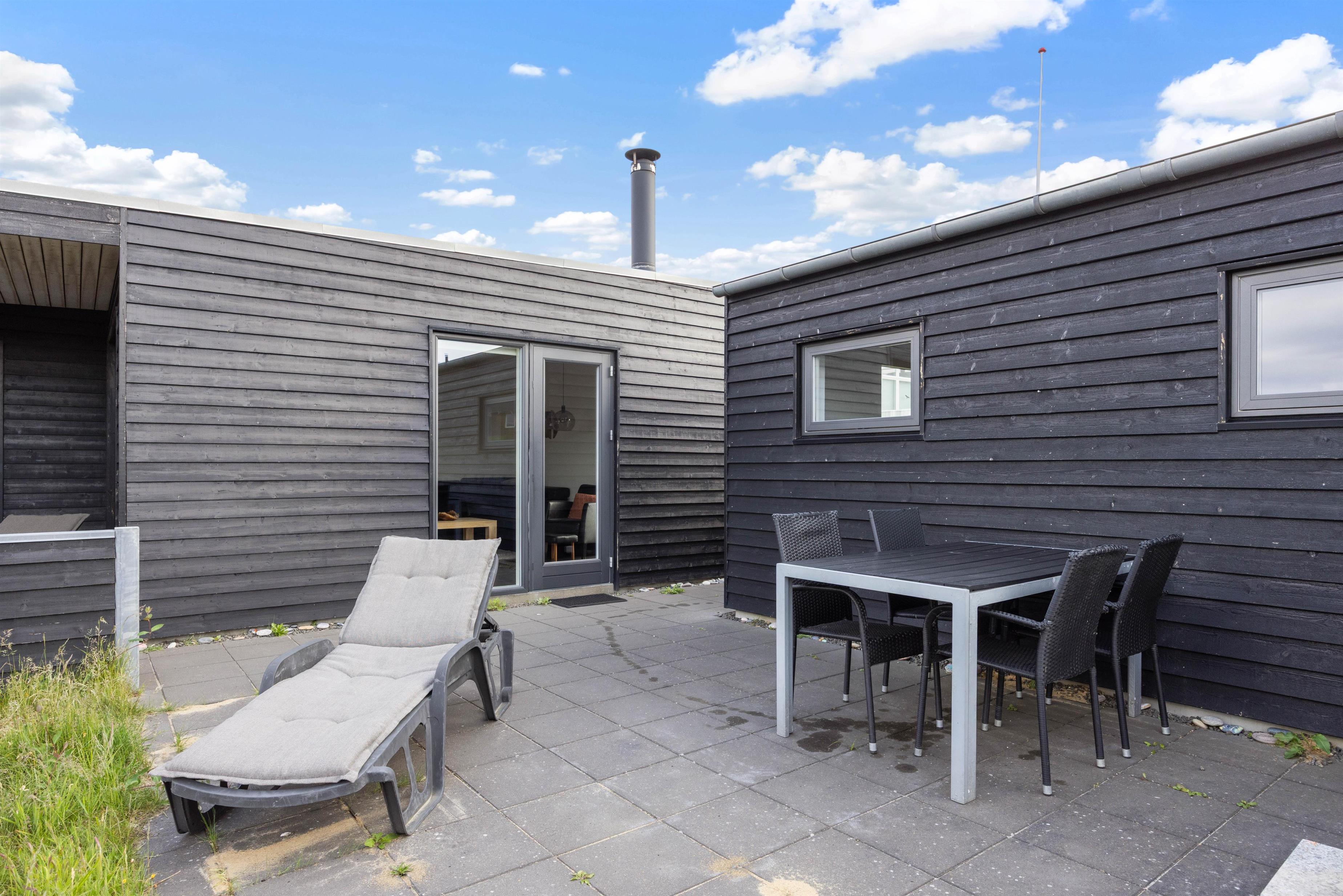 Også i husets uderum er der kælet for detaljerne. Her har man skabt hyggelige oaser rundt om huset, så du kan følge solens gang over himlen. Huset har en dejlig overdækket terrasse, som inviterer til lange, hyggelige sommeraftener i den friske luft. Her er det oplagt at nyde en god middag og en god flaske vin, mens børnene leger. Besøger I huset i den tidlige forårssæson vil den afskærmede terrasse desuden give læ og mulighed for at sidde ude og mærke de allerførste, varme forårsstråler i ansigtet.