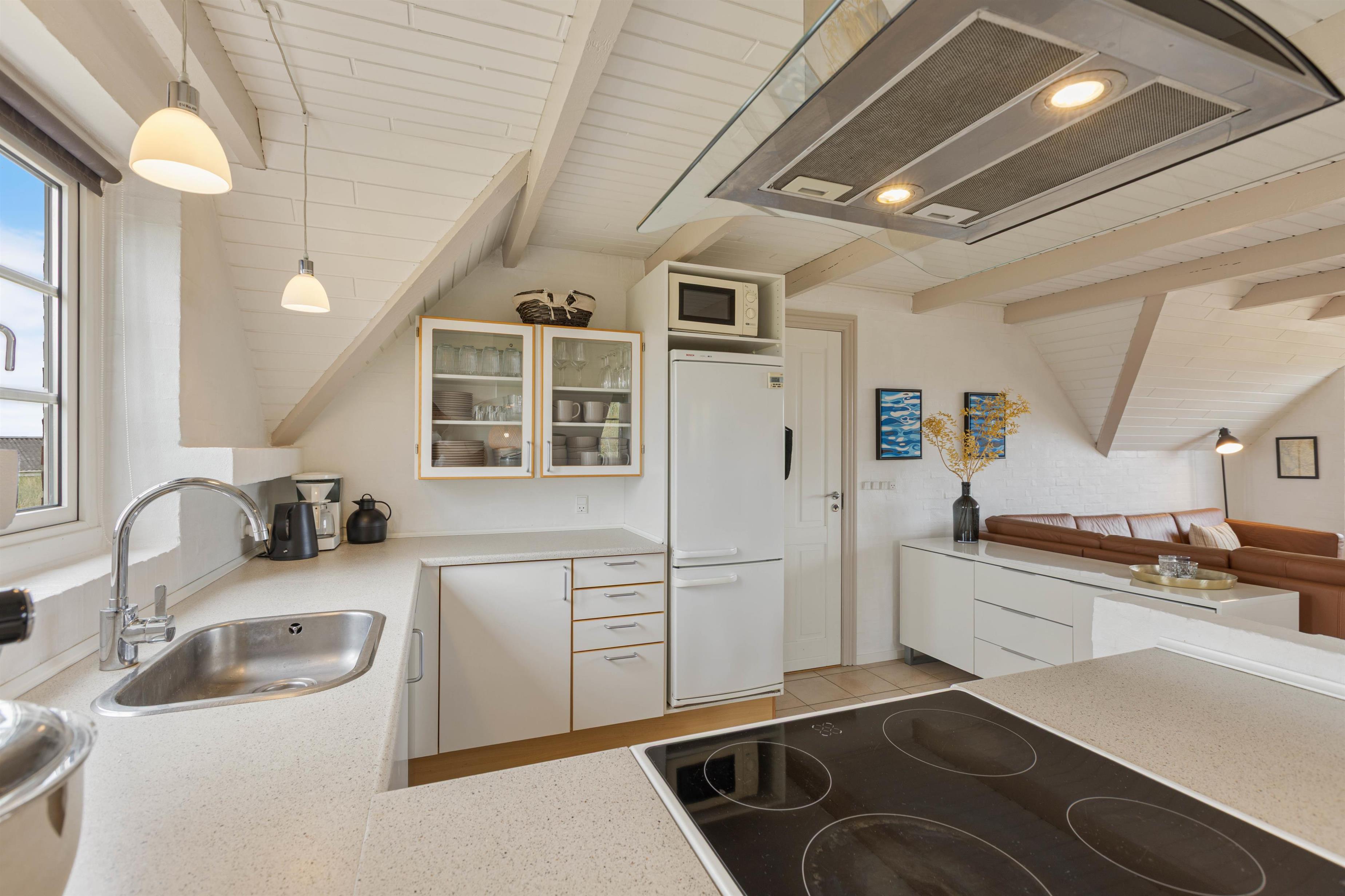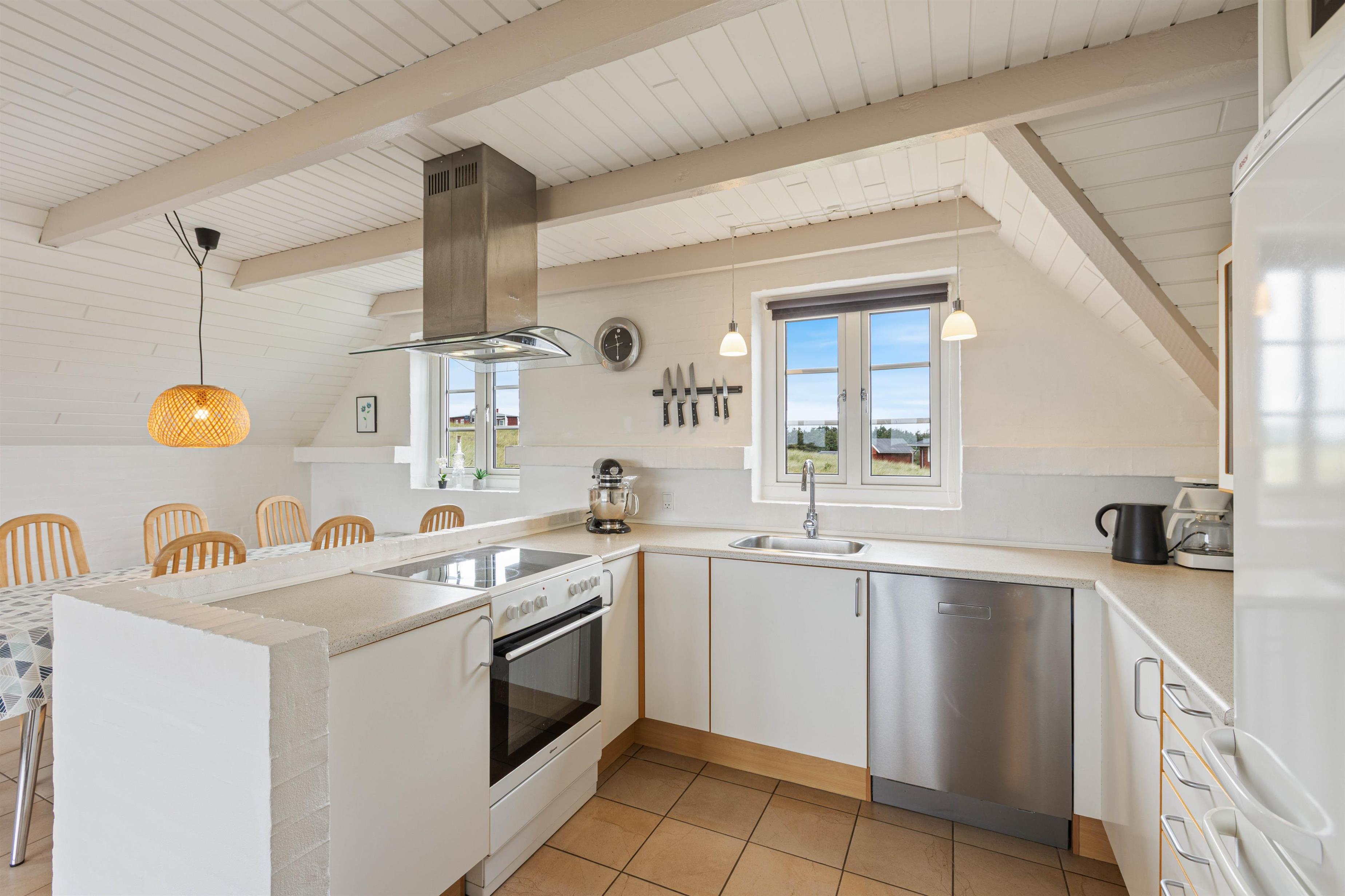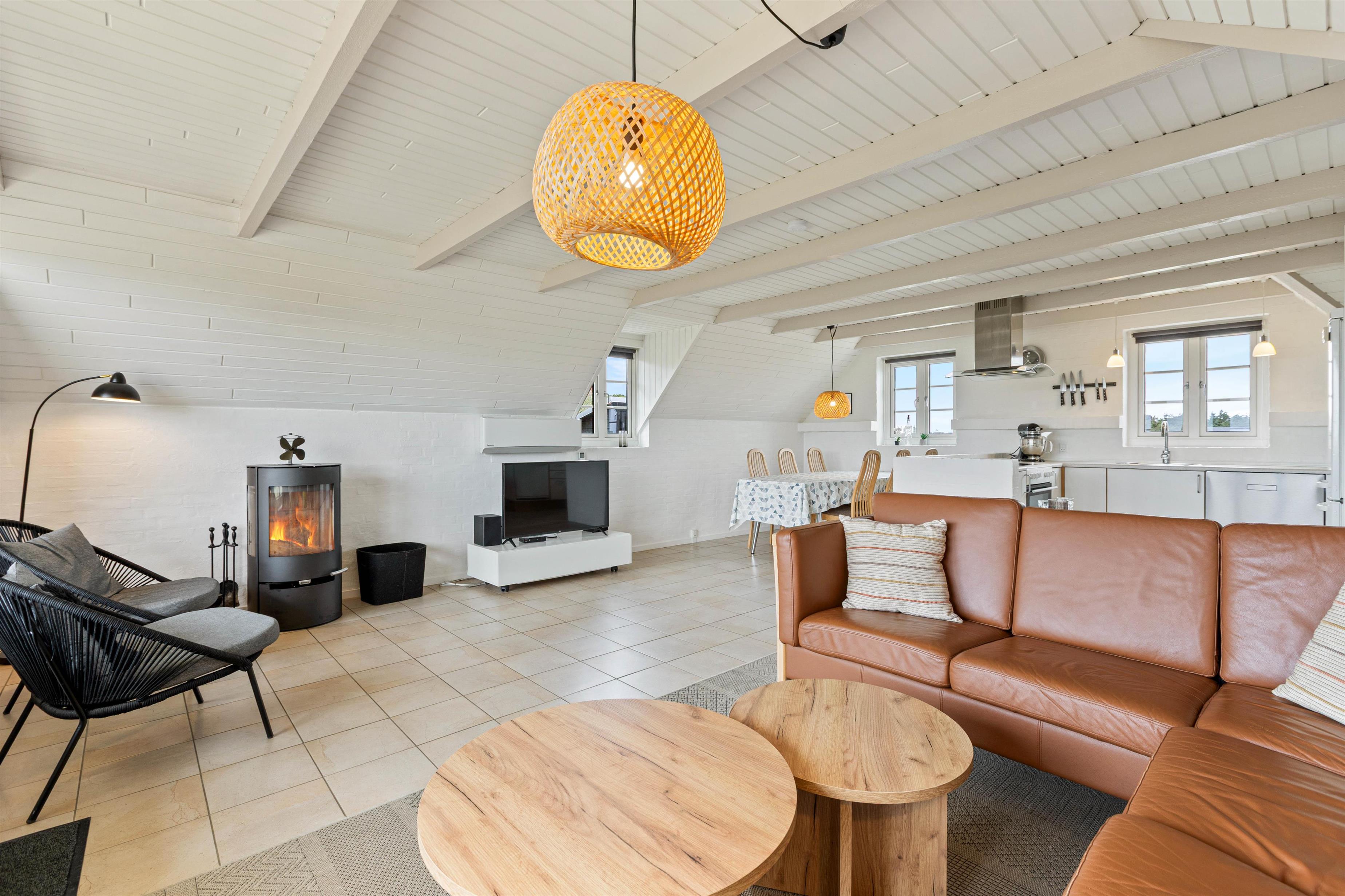 Ydermere er sommerhuset udstyret med en opvaskemaskine og en vaskemaskine, der begge sørger sommerhuset for at de praktiske gøremål nemt overstås, så I kan bruge tiden på at slappe af og nyde ferien. Tilføjelsen af en 50 L separat fryser giver jer mulighed for at opbevare madvarer, så I kan nyde længere ophold uden bekymringer. En luft-til-luft varmepumpe sikrer behageligt indeklima hele året rundt, og I får det bedste ud af teknologien med moderne faciliteter som Chromecast til rådighed.