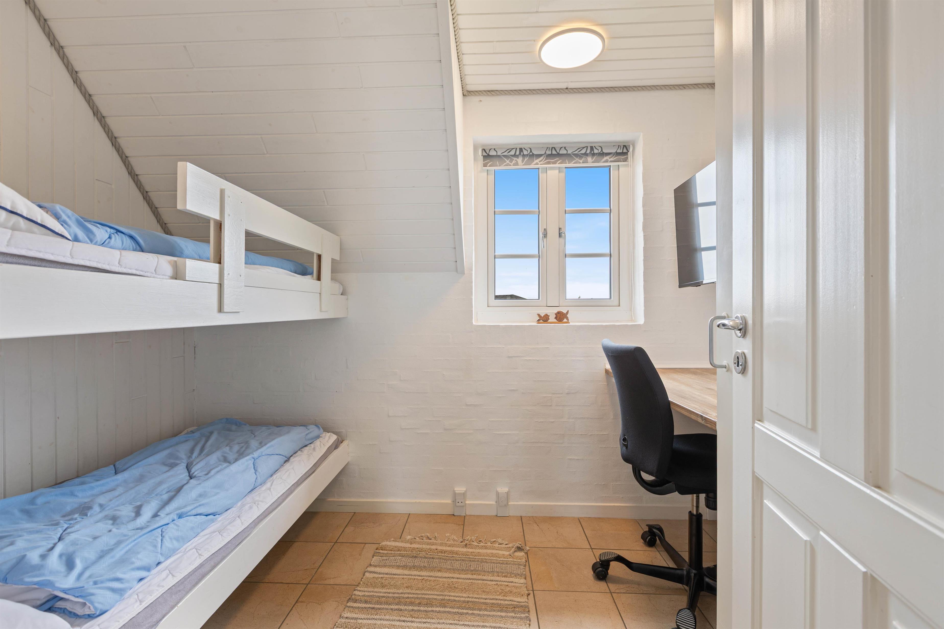 Dette velindrettede sommerhus i Søndervig byder på en skøn brændeovn, der sikrer hyggelige aftener i samvær med dem, I elsker. Sommerhuset har med sine 3 gode soveværelser plads til 6 personer. To af værelserne er med dobbeltsenge og det tredje med køjesenge til børnene. Sommerhuset har et dejligt, lyst badeværelse med gulvvarme, bruseniche og indgang til sauna. I den hyggeligt møblerede stue er der faste tæpper på gulvene og en dejlig brændeovn til kølige dage.
