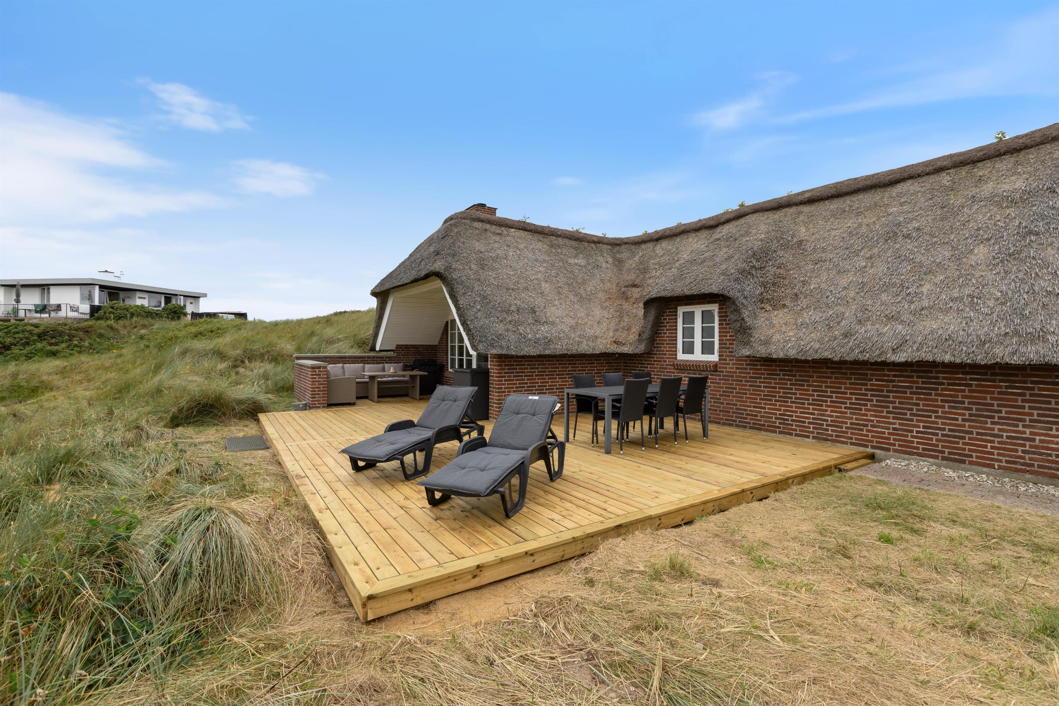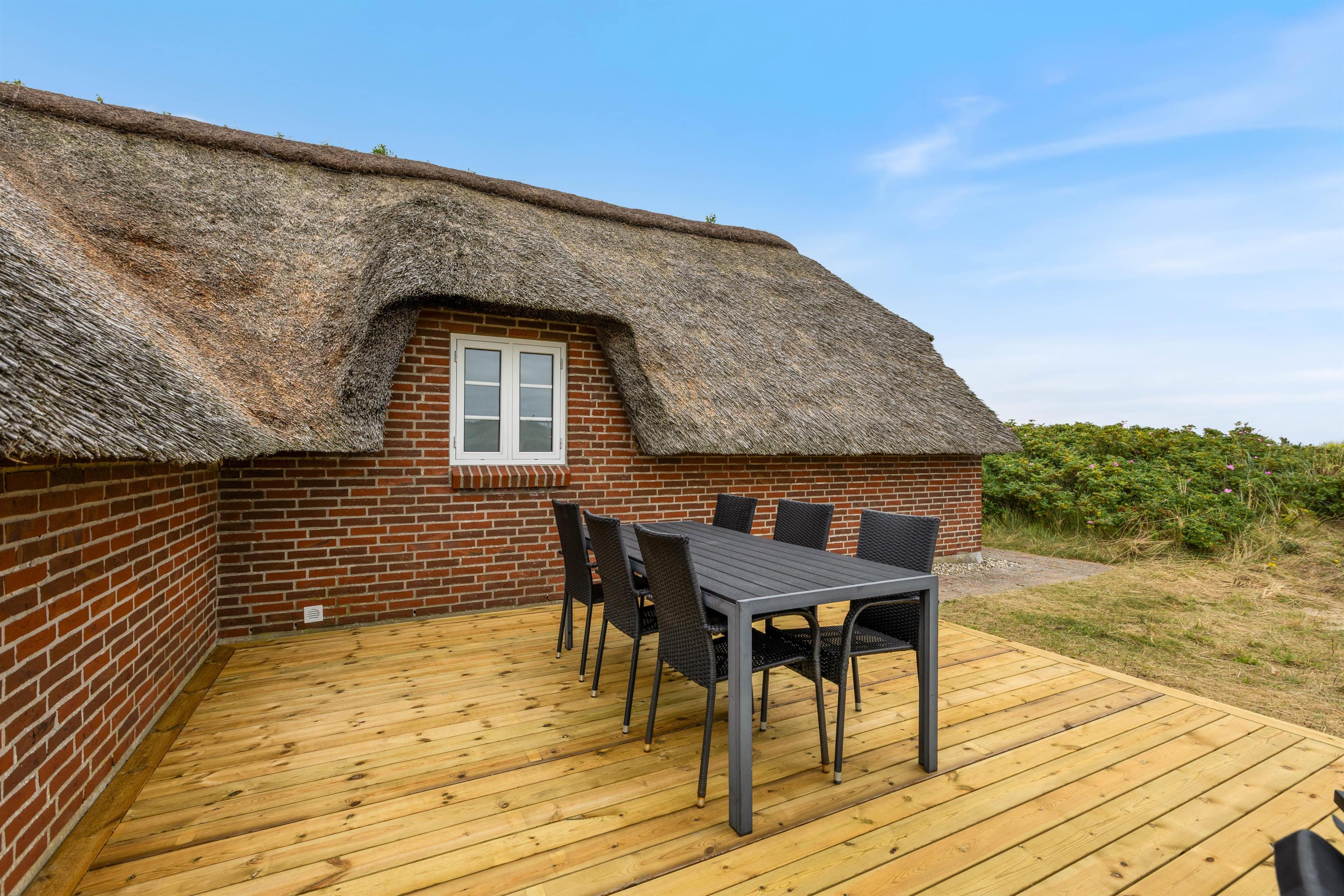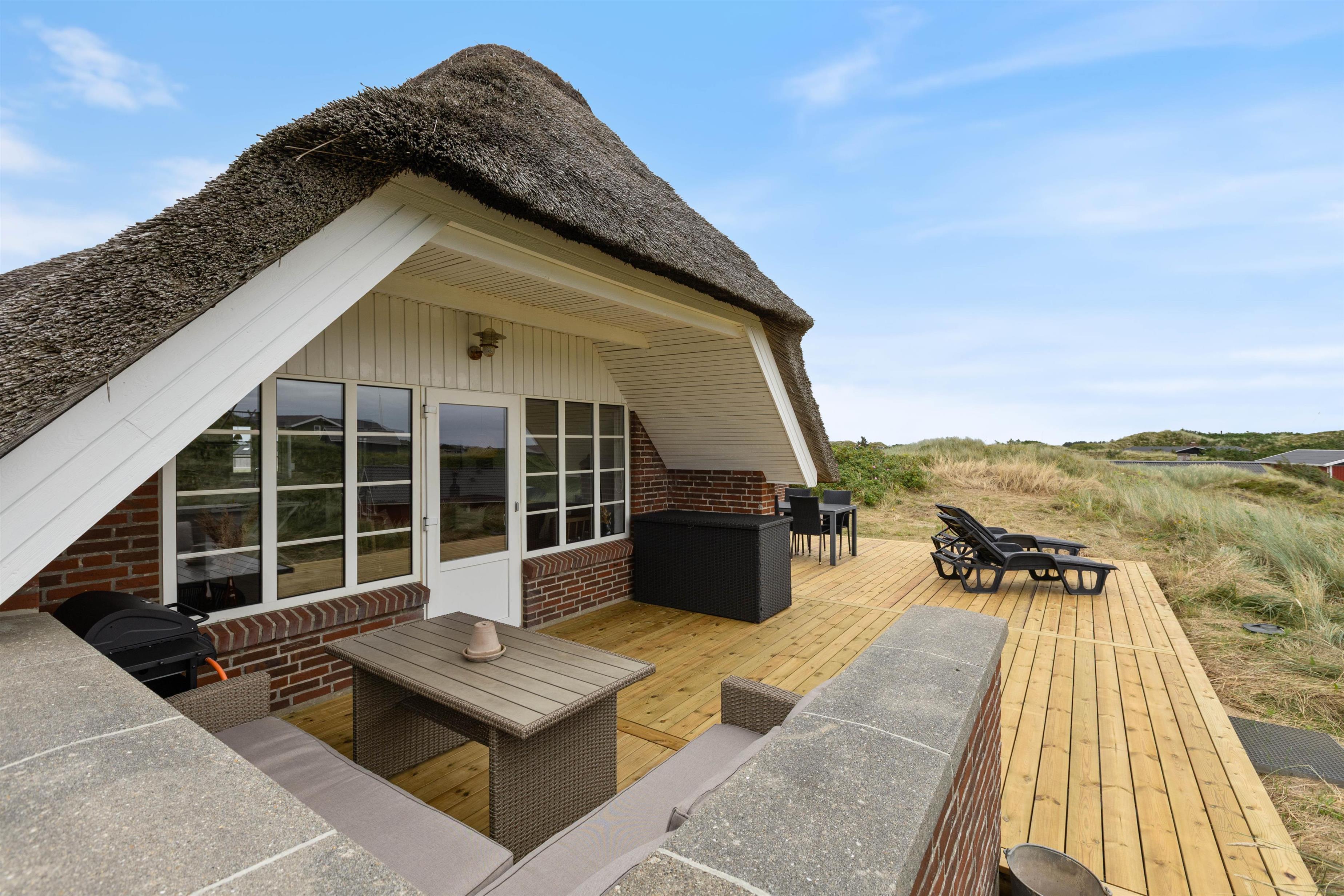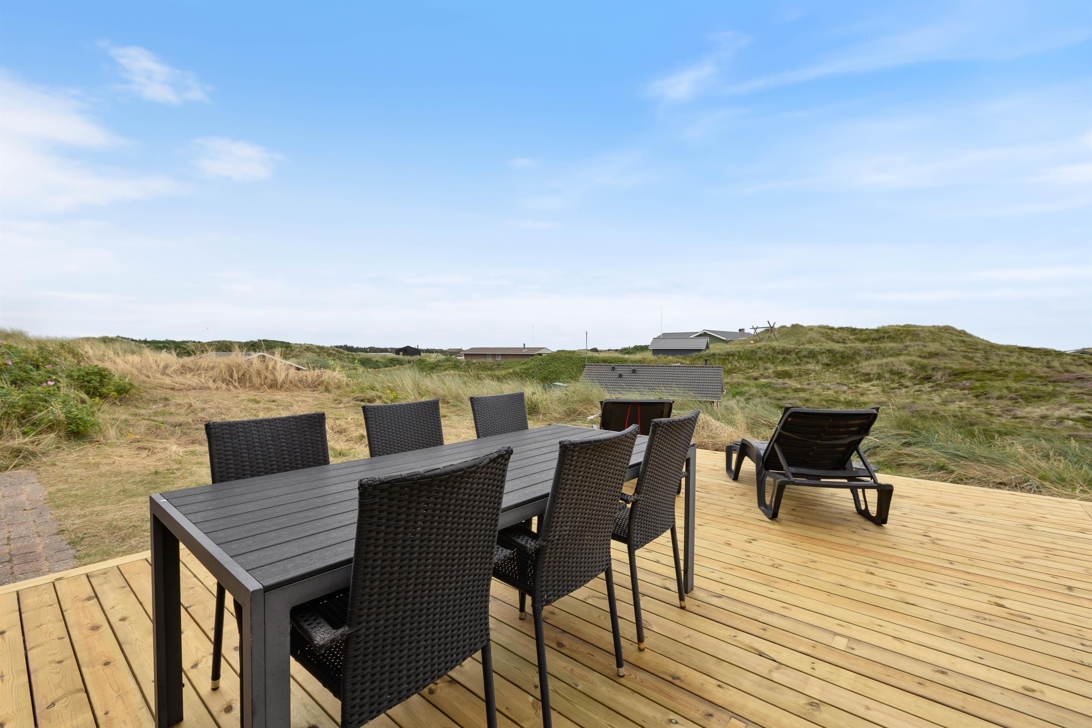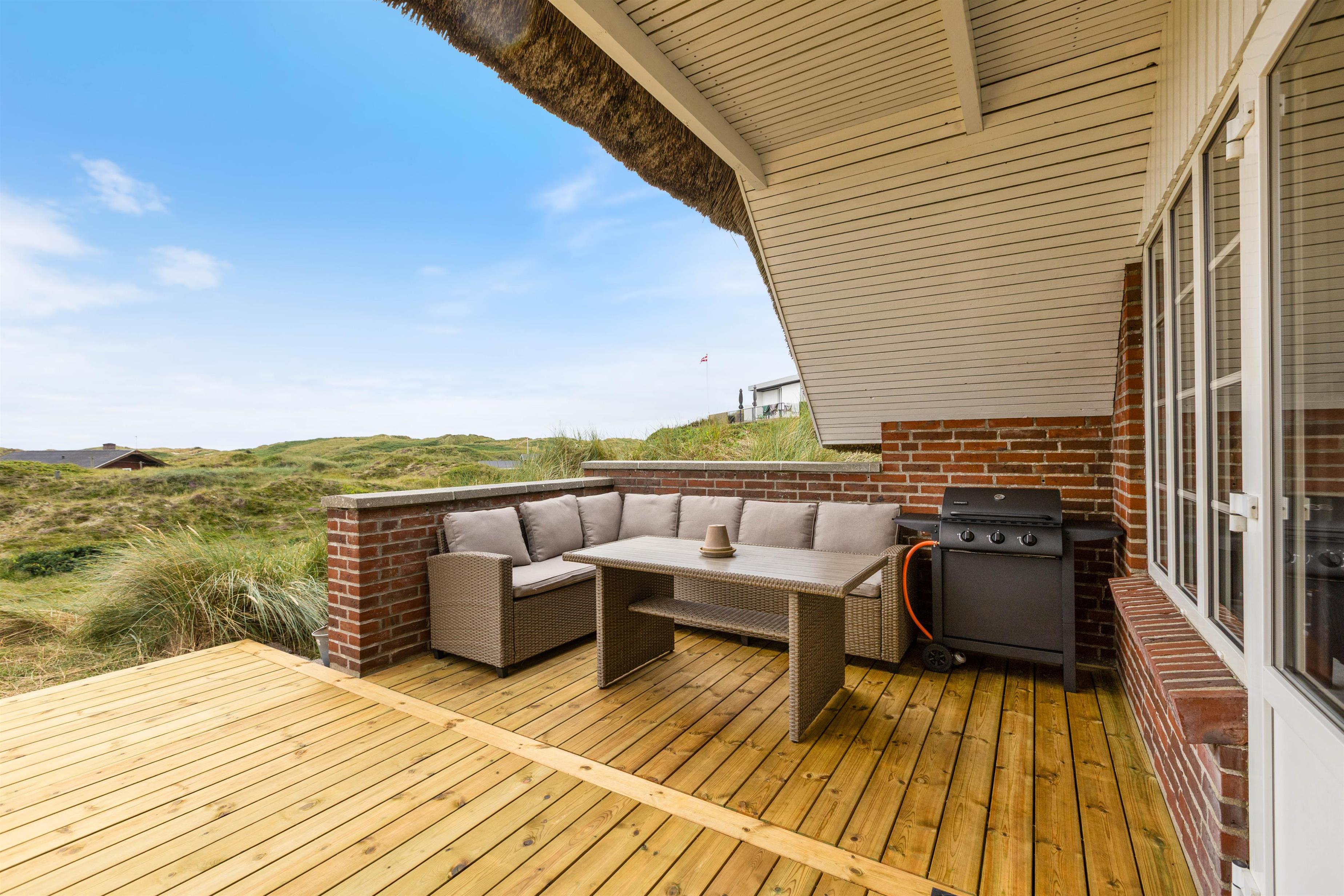 Sommerhuset har en afskærmet terrasse, der giver jer mulighed for at nyde grillretter på de inkluderede havemøbler, mens I suger den storslåede panoramaudsigt til jer. Huset er beliggende på en skøn klitgrund, der understøtter en følelse af privatliv og nærhed til naturen. Her kan I have familiens bedste ven med, da op til én hund er tilladt, hvilket gør det nemt at inkludere alle medlemmer i ferien.