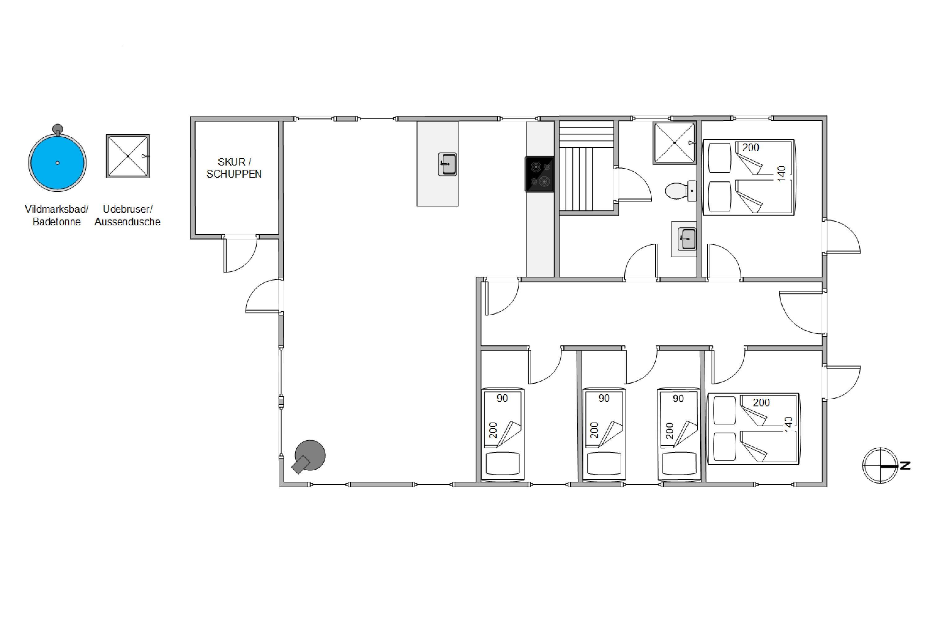 Efter en oplevelsesrig dag i det vestjyske er der rig mulighed for afslapning foran brændeovnen, mens I ser en god film eller serie. Det åbne samtalekøkken er moderne og velintegreret i resten af huset. Her kan feriekokken slå sig løs med hårde hvidevarer af høj kvalitet. Køkkenet er bl.a. udstyret med opvaskemaskine, mikroovn og køleskab med en 40L fryser.