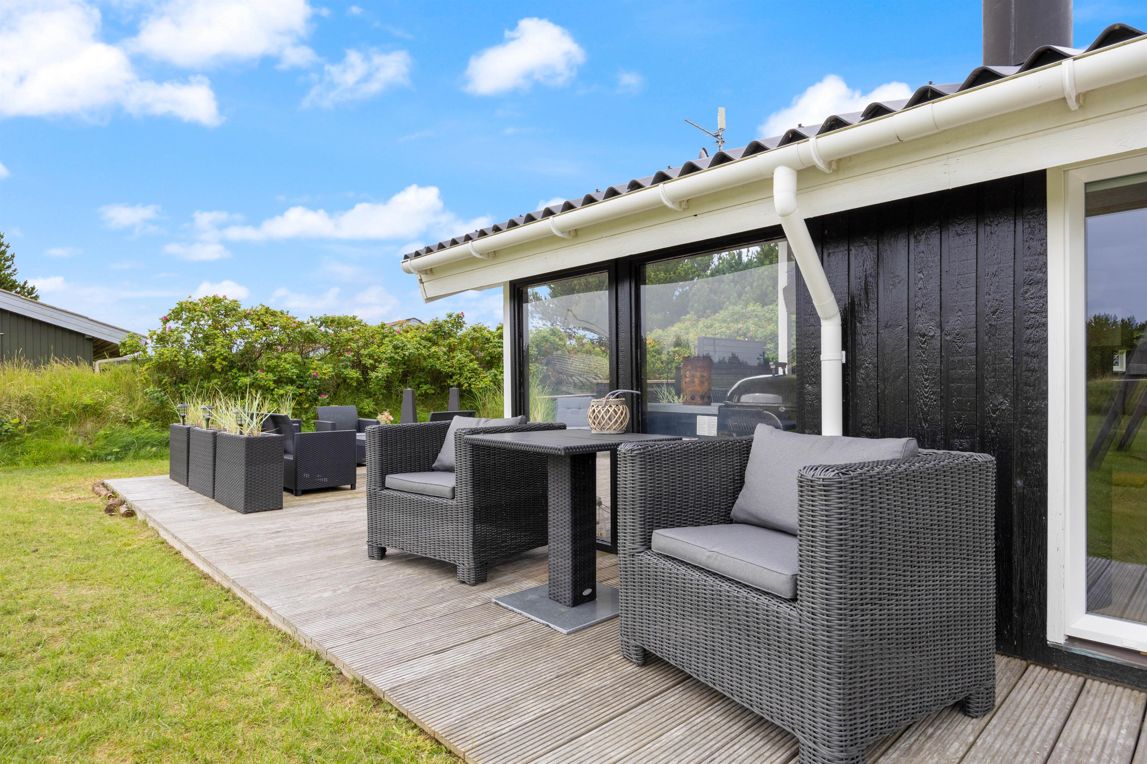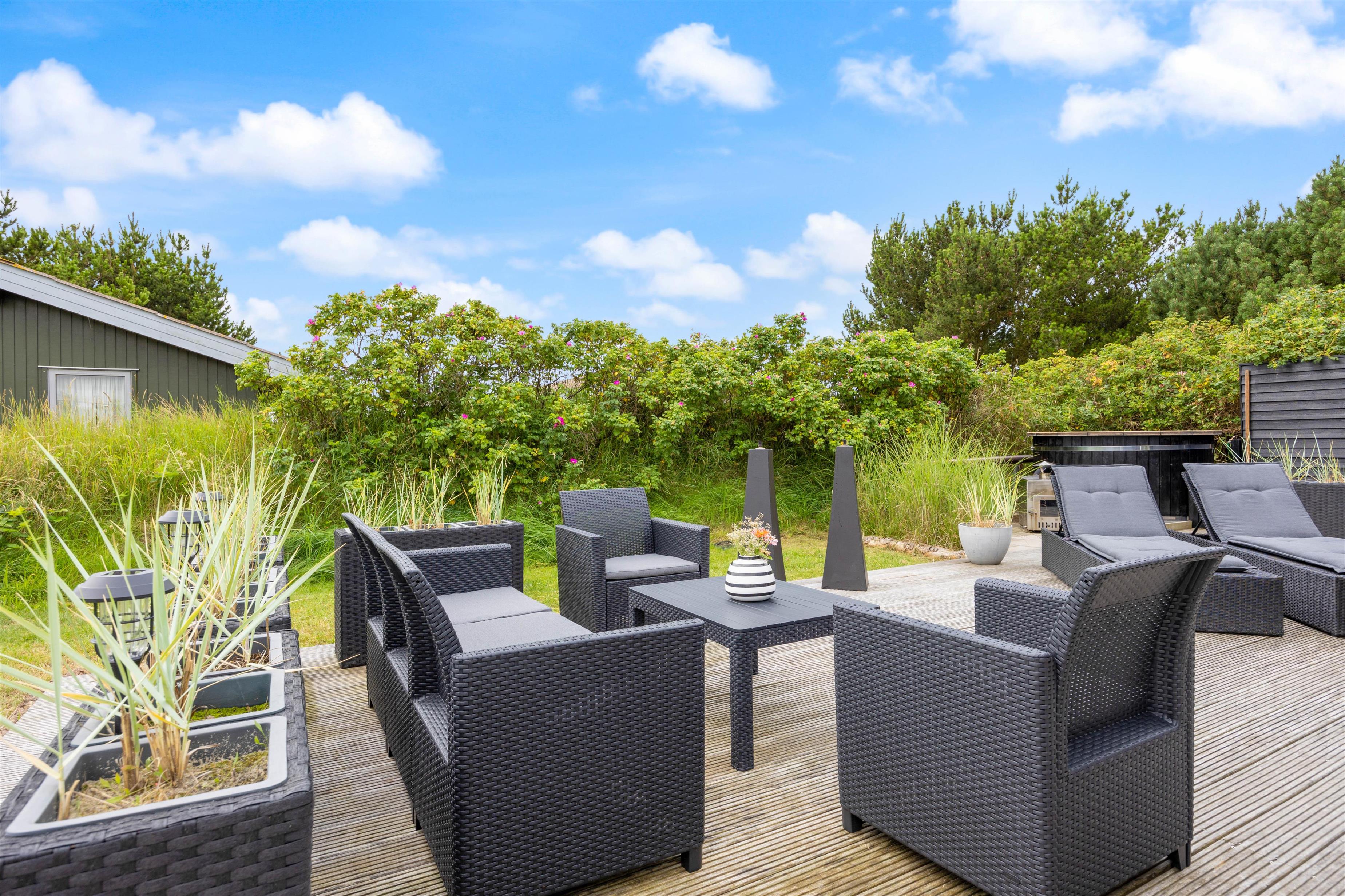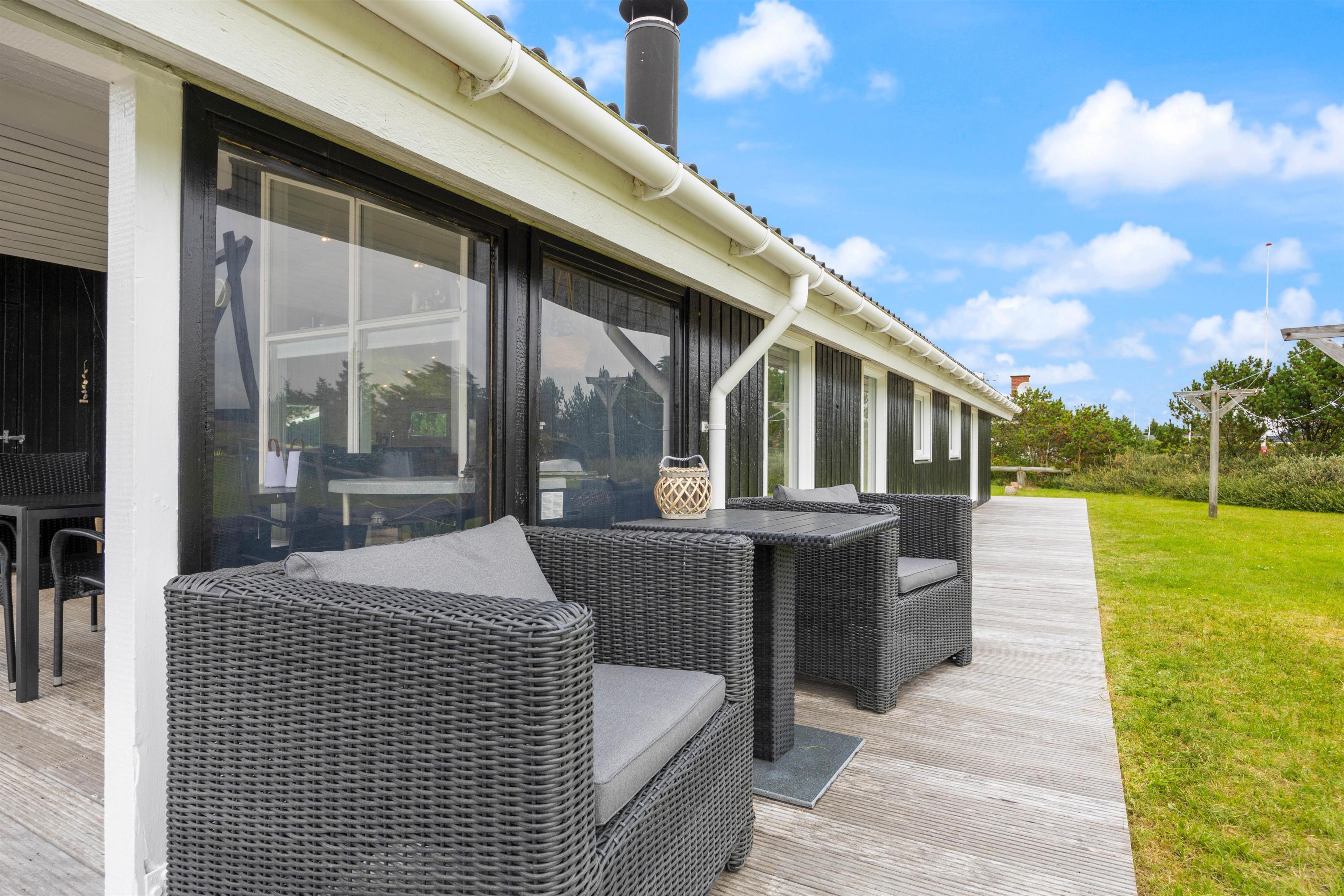 Gennem terrassedøren i opholdsrummet kommer I ud på den skønne syd- og østvendte, delvist overdækkede, terrasse. Terrassen fortsætter hele vejen rundt om huset, så der er altid et dejligt læfyldt sted at finde, lige meget på hvilket tidspunkt af døgnet.