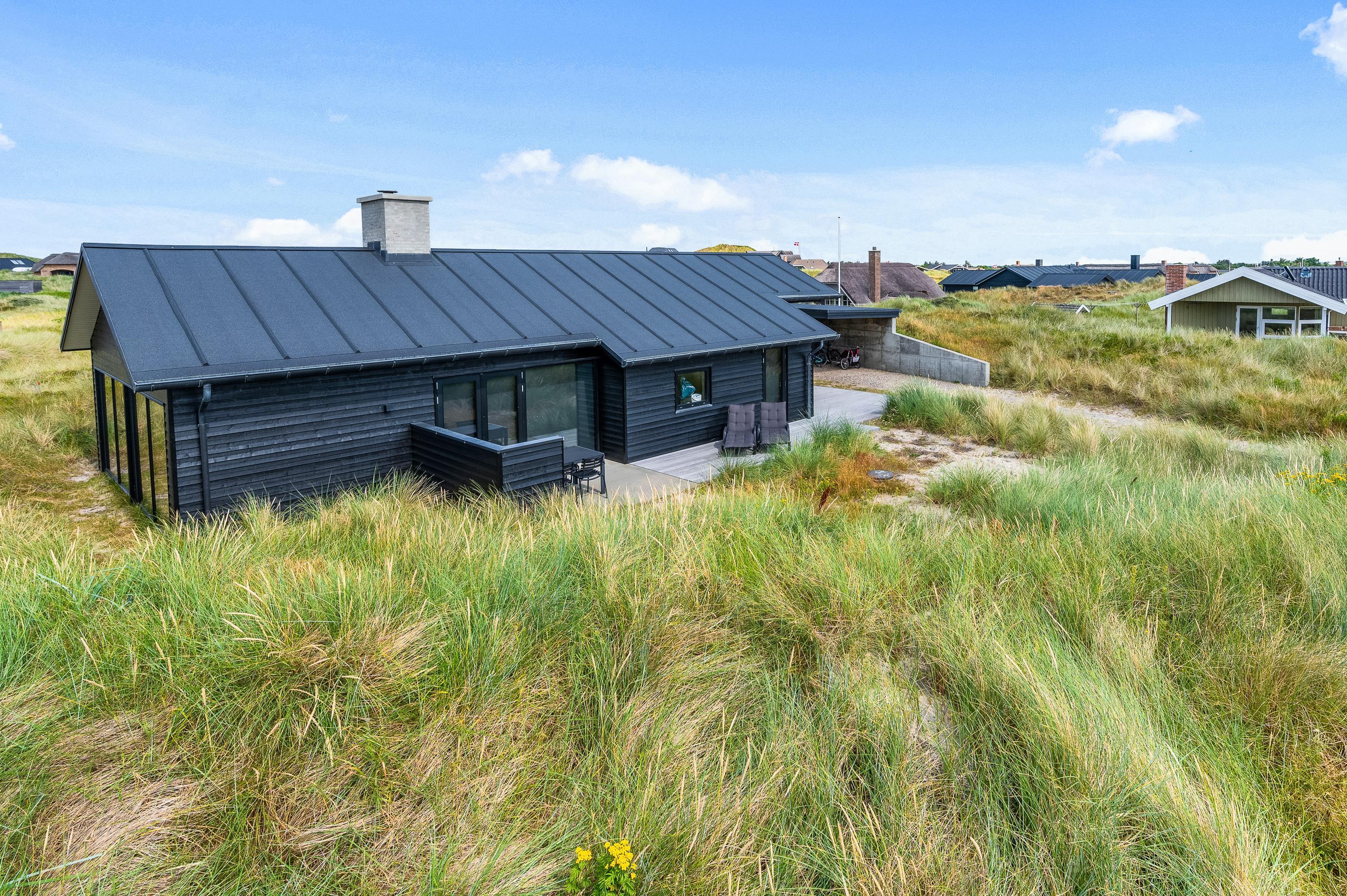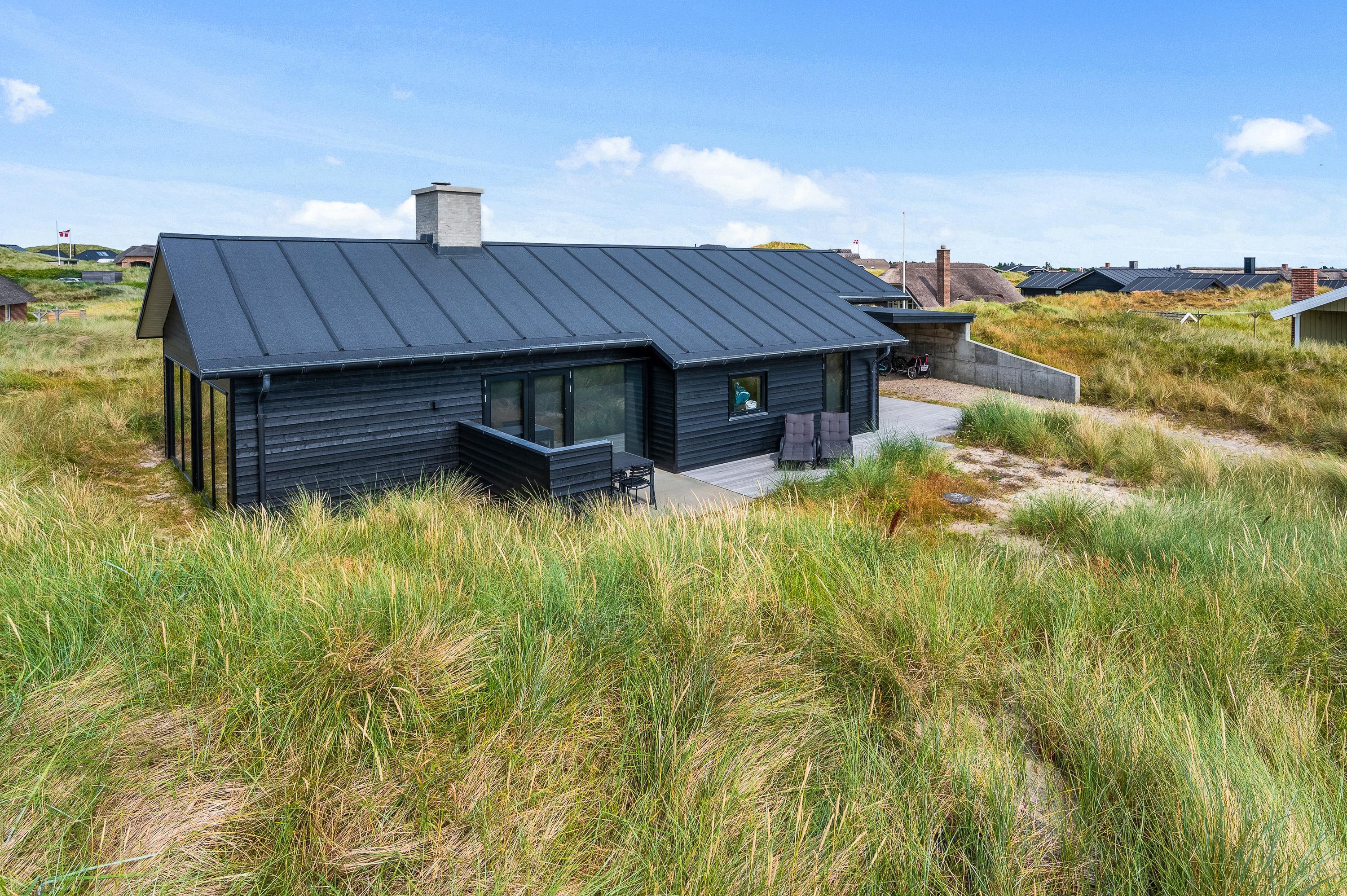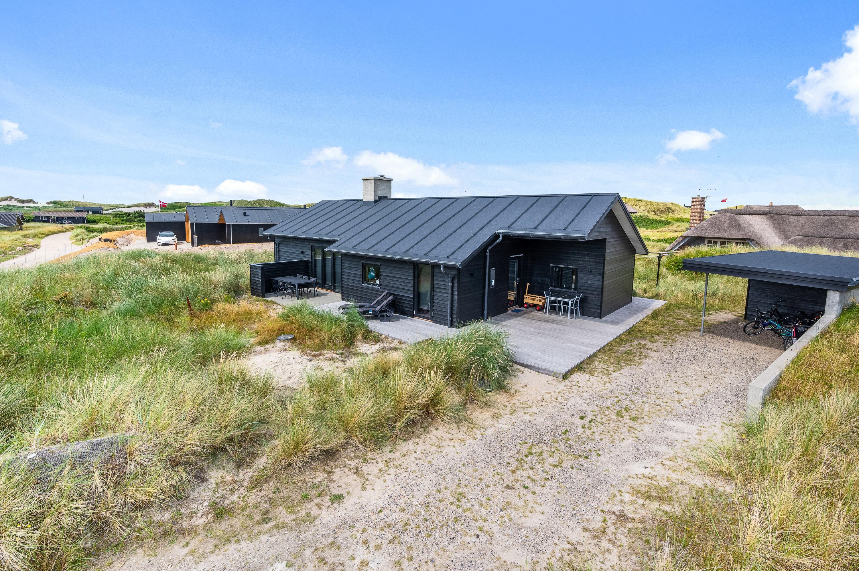 Feriehuset ligger i det smukke klitlandskab ved Søndervig. Med en delvist afskærmet træterrasse på flere sider af huset, kan I bekvemt nyde den friske luft, solen og lyden af havet, der bruser ude mod vest. På de varme sommerdage, når I kommer hjem fra stranden, så kan I nemt og hurtigt skylle sand og salt af hår og fødder i en af husets to udendørs brusere.