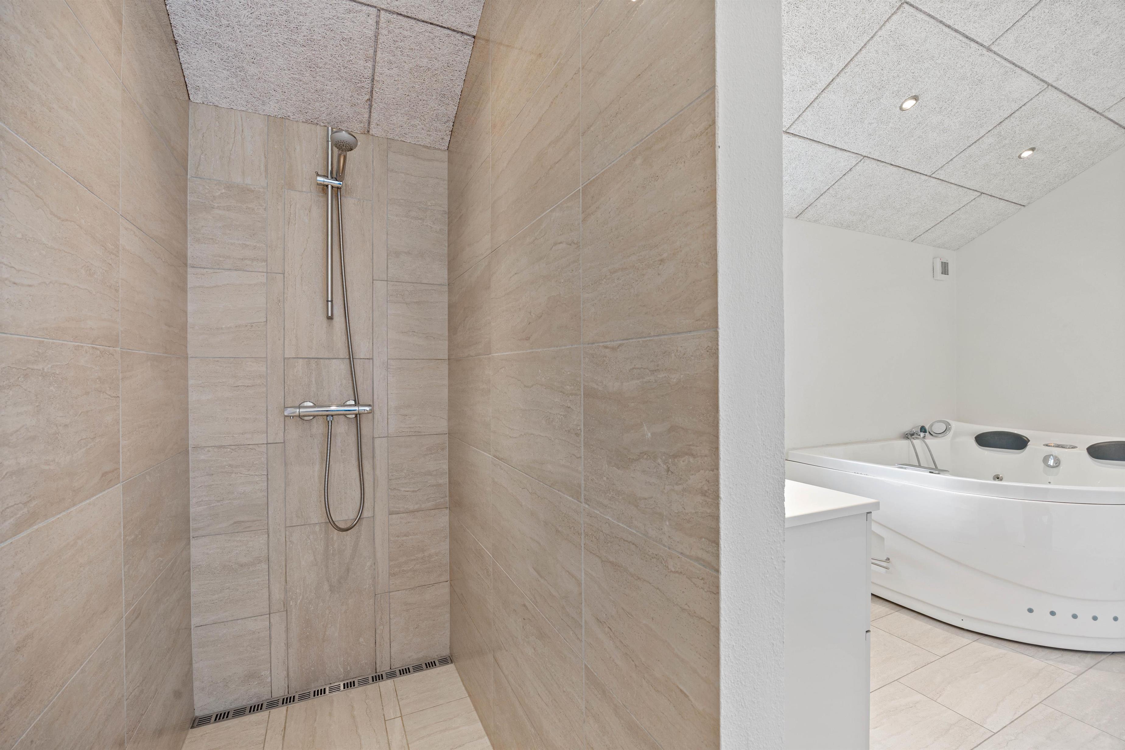 På det ene af de to flotte badeværelser, står både saunaen og indespaen klar til en dejlig afslappende stund. Så efter en dejlig gåtur, eller endda en frisk dukkert, ved stranden er det ren selvforkælelse at sætte sig ind og blive varmet godt igennem.
