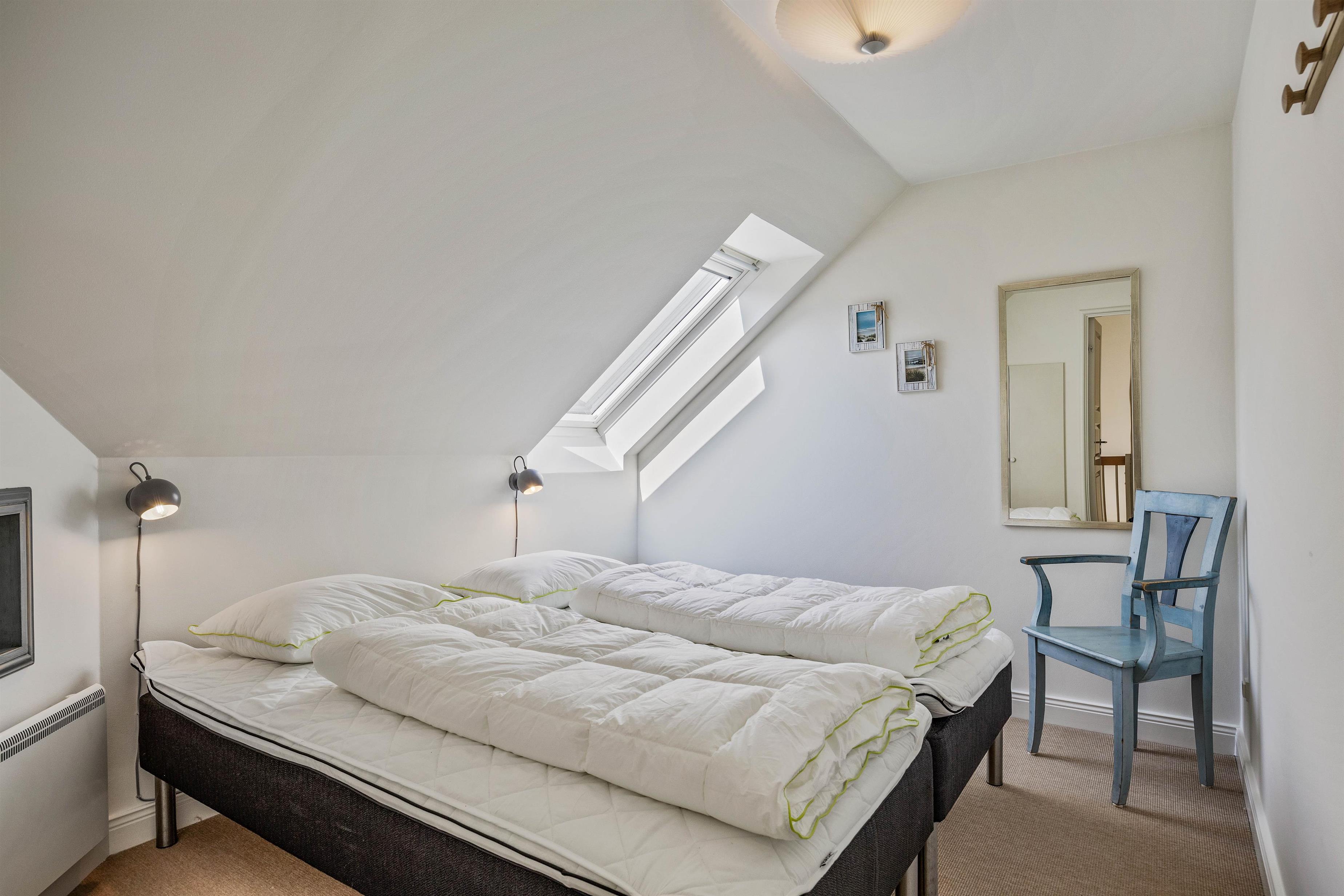 På førstesalen finder i to gode soverum, der begge er indrettet med omtanke og hygge for øje. Begge soverum er udstyret med komfortable dobbeltsenge, der sikrer en god nats søvn, så I kan vågne friske og veludhvilede. På badeværelset finder I både sauna og spabad, der giver jer mulighed for den ultimative afslapning og mini wellnessoplevelse på ferien.