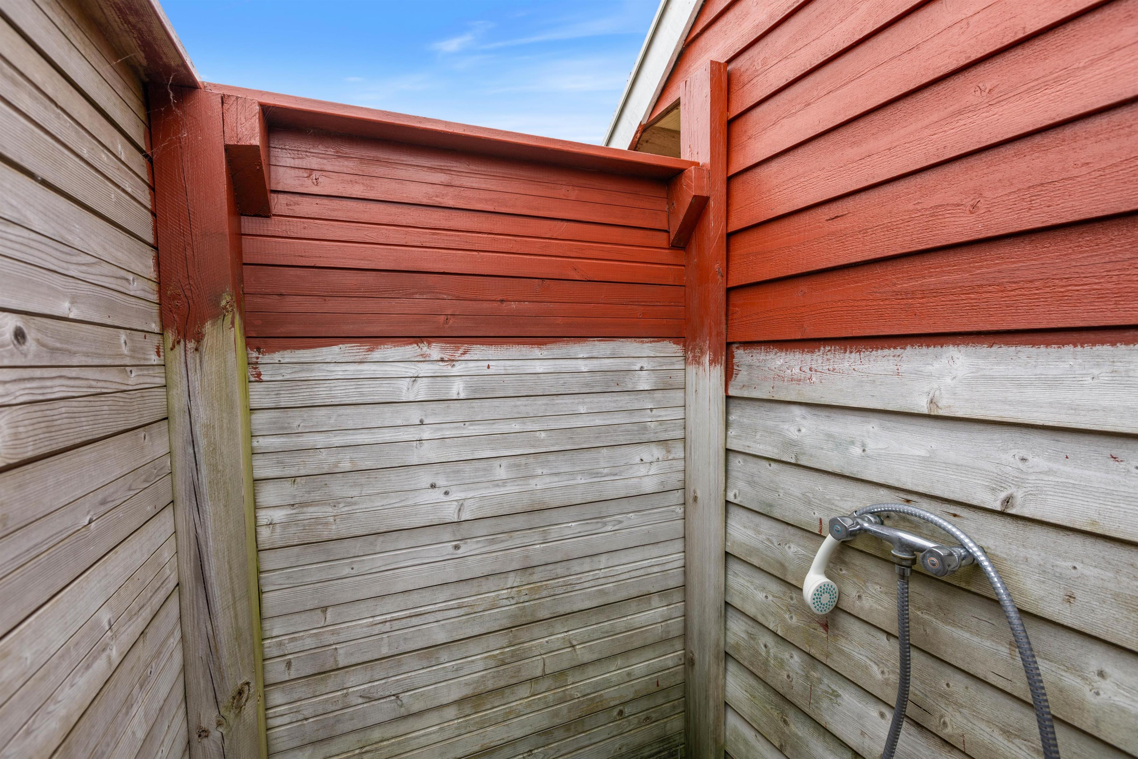 Med en grund på hele 2112m2, tilbyder sommerhuset masser af plads til aktiviteter og afslapning i det fri. På den åbne terrasse kan I sidde og nyde solens varme stråler eller tilberede et lækkert måltid ved grillen, mens havemøblerne skaber den perfekte ramme for en afslappet aften udendørs. Børnene kan lege på den store naturgrund, mens de voksne nyder et øjebliks ro med lyden af bølgerne i baggrunden.