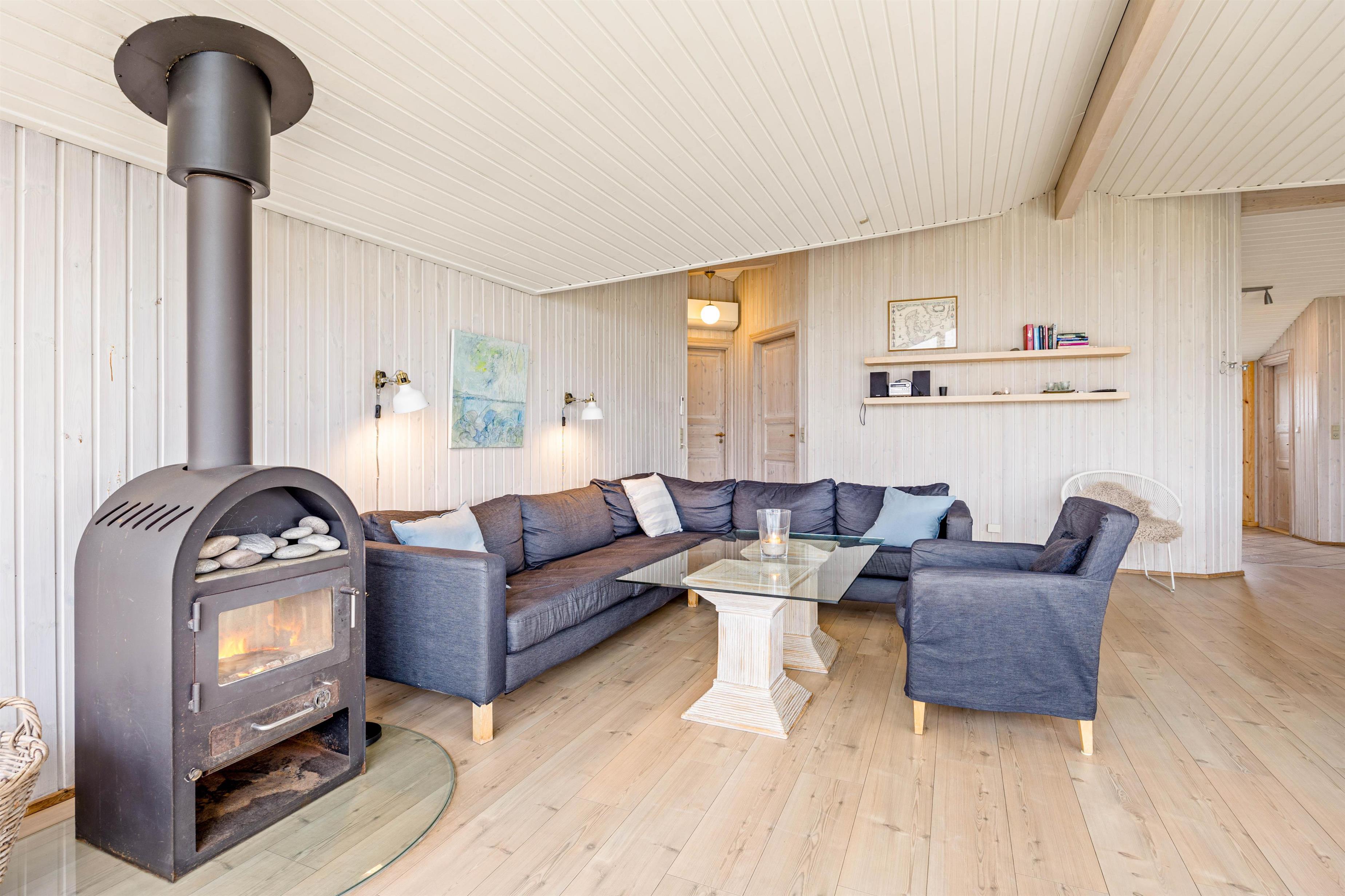 Husets dejlige og smagfuldt møblerede stue er i åben forbindelse med spisestue og køkken. Denne rumfordeling giver jer mulighed for at nyde masser af kvalitetstid sammen hele tiden, om end I hygger jer med madlavningen, et spil kort eller en quiz. Her i stuen er der fladskærms-TV, parabol, DVD-afspiller og en hyggelig brændeovn. Det store vindusparti mod terrassen giver et flot lysindfald og gør rummet meget lyst og venligt.