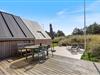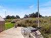 Sommerhuset har flere terrasser, som I kan nyde jeres solrige feriedage på. I har blandt andet en dejlig terrasse, der er delvist overdækket, afskærmet og lukket, hvor I både kan sidde i ly og læ. Her kan I samtidig slappe rigtig godt af og lade børnene lege frit på den lukkede terrasse. Derudover har I også en åben terrasse omkring det meste af feriehuset, hvor I kan finde jer en god plads at nyde solens stråler på.