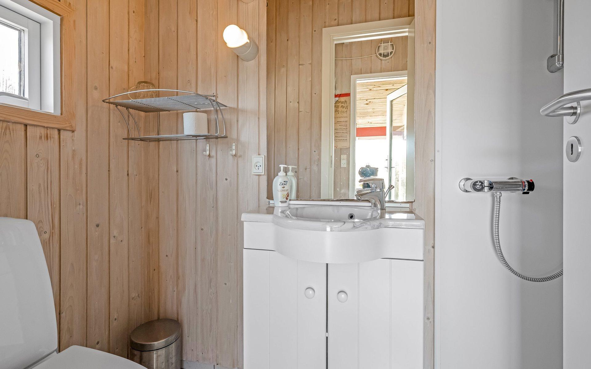 Huset har 2 badeværelser, begge med gulvvarme, hvilket er praktisk, når hele familien er samlet. Derudover er der vaskemaskine, så I kan nøjes med at pakke det mest nødvendige.