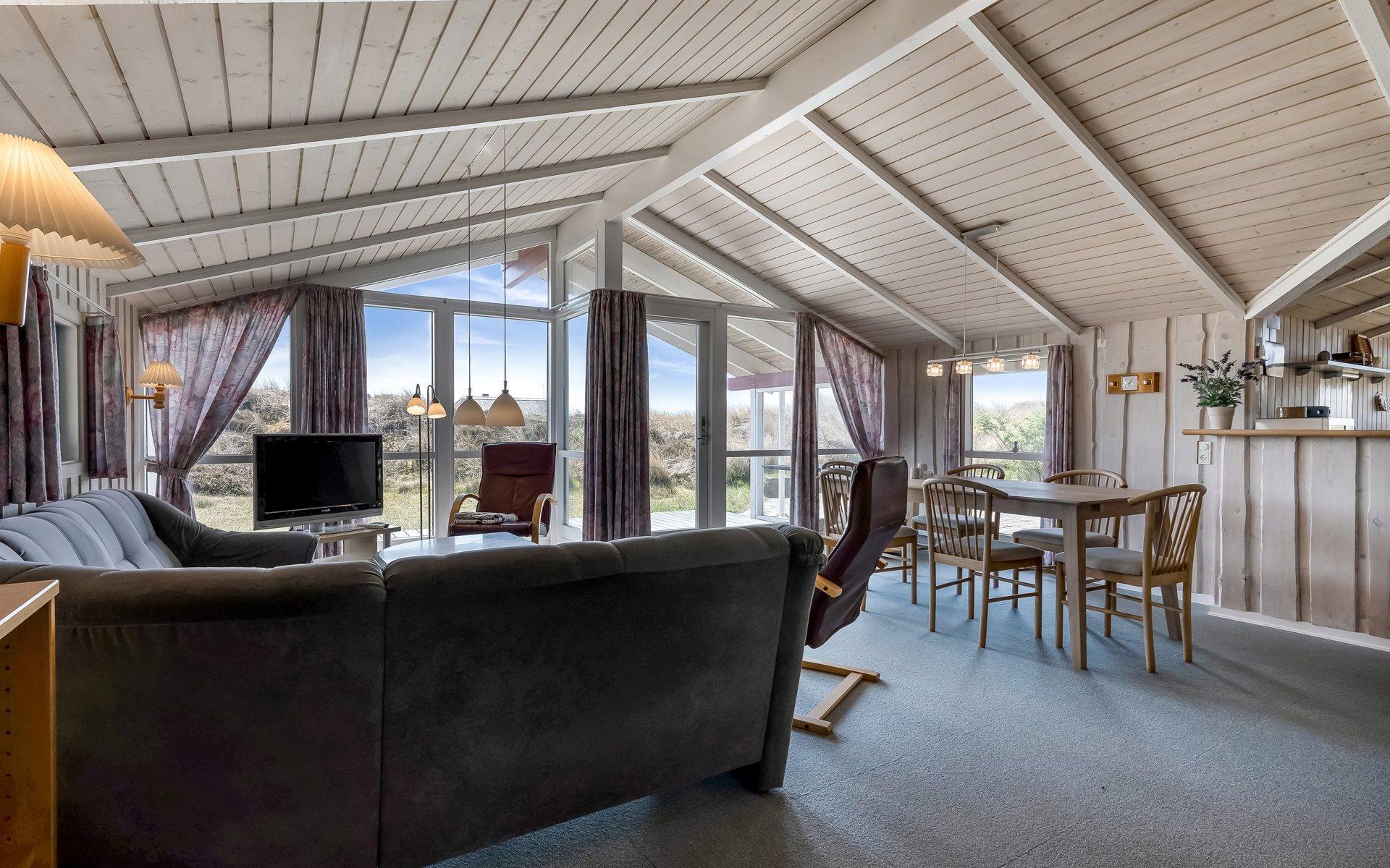 Fra sommerhuset er der kun 650 meter til Vesterhavet, hvor kilometerlange, hvide sandstrande indbyder til lange gåture. Er I friske, kan I tage en forfriskende dukkert i det brusende hav. Derudover ligger badebyen Søndervig kun 2,5 km fra huset, hvor I finder gode indkøbsmuligheder, hyggelige caféer og spændende butikker.
