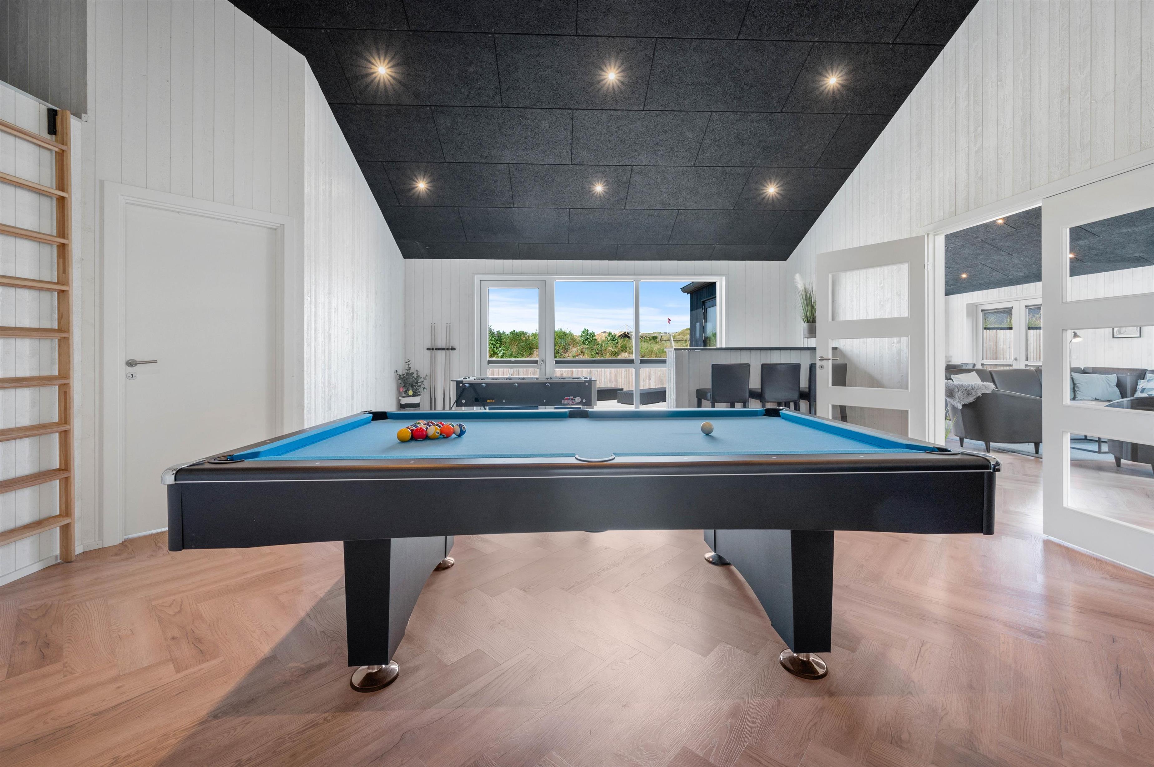 Det luksuriøse sommerhus på Holdvej 38 rummer masser af fede feriehighlights, og der er sørget for noget til enhver smag. Det store aktivitetsrum med billardbord, bordfodbold, dart og minibar ser til, at de aktive feriegæster altid er godt underholdt, og findes der noget hyggeligere end en billardturnering på en sen aften med kolde drinks og godt selskab?
