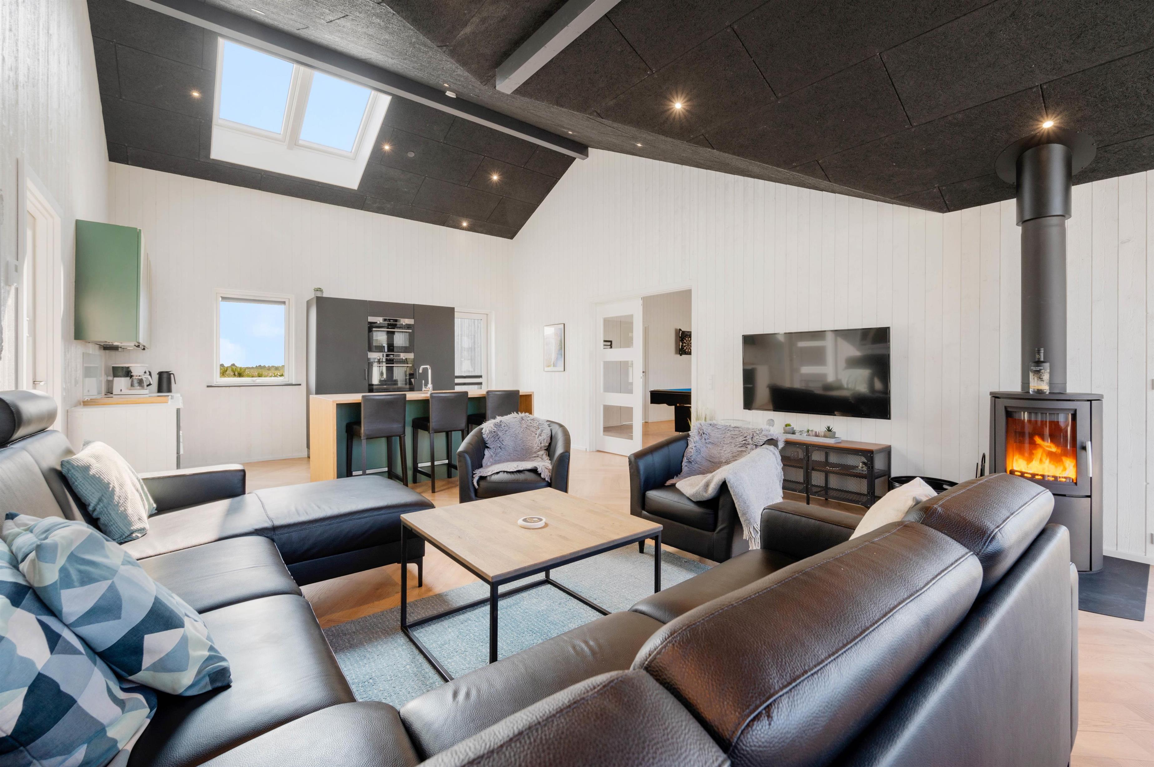 Det 5+-stjernede aktivitetshus er opført i 2020, og de lækre omgivelser vil opfylde selv den mest kræsne feriegæsts drømme. Den stilfulde indretning er en velafstemt kombination af moderne interiør, flotte kvalitetsmaterialer og den klassiske sommerhushygge med brændeovnen, som er en evig garanti for hyggelig feriestemning.