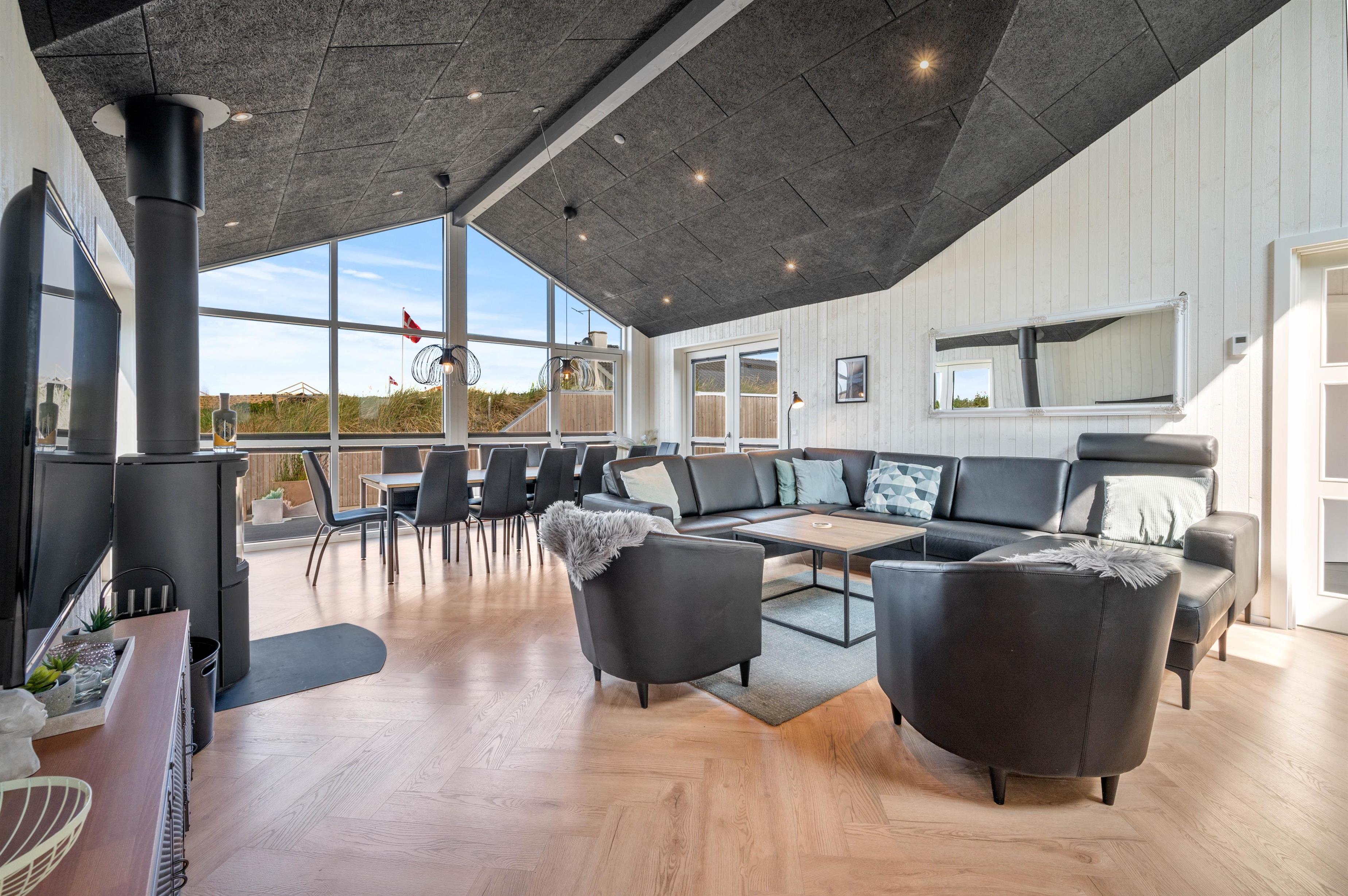 Dette luksuriøse aktivitetshus i Søndervig byder på alt, hvad feriehjertet begærer. Med plads til 10 personer er feriehuset oplagt til en ferie ud over det sædvanlige med den store familie eller vennerne. Her får I alt lige fra aktivitetsrum og et wellnessbadeværelse med spa og sauna til en stor, lukket terrasse med udendørs spabad. Prikken over i’et er feriehusets beliggenhed – tæt på både stranden og centrum af Søndervig.