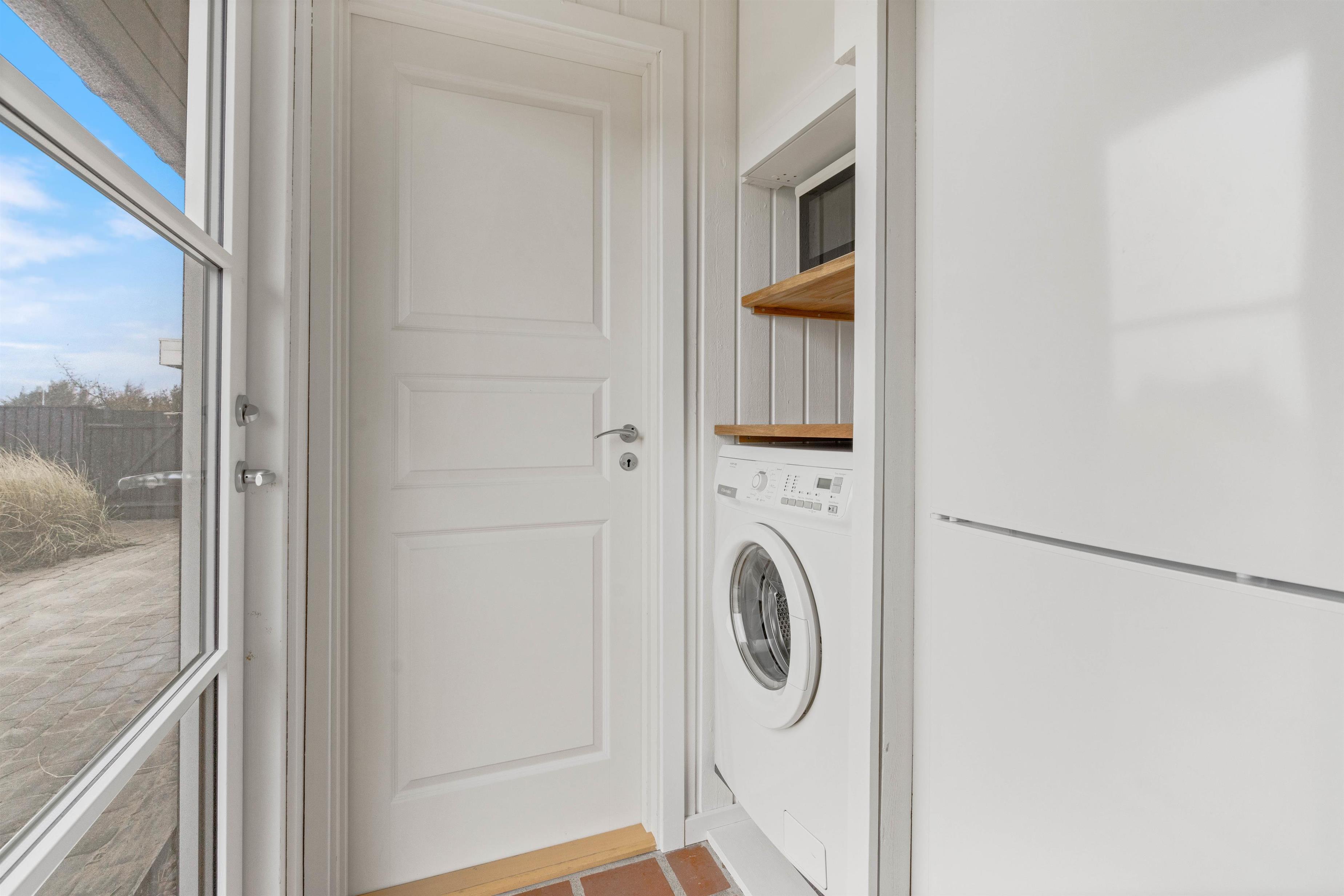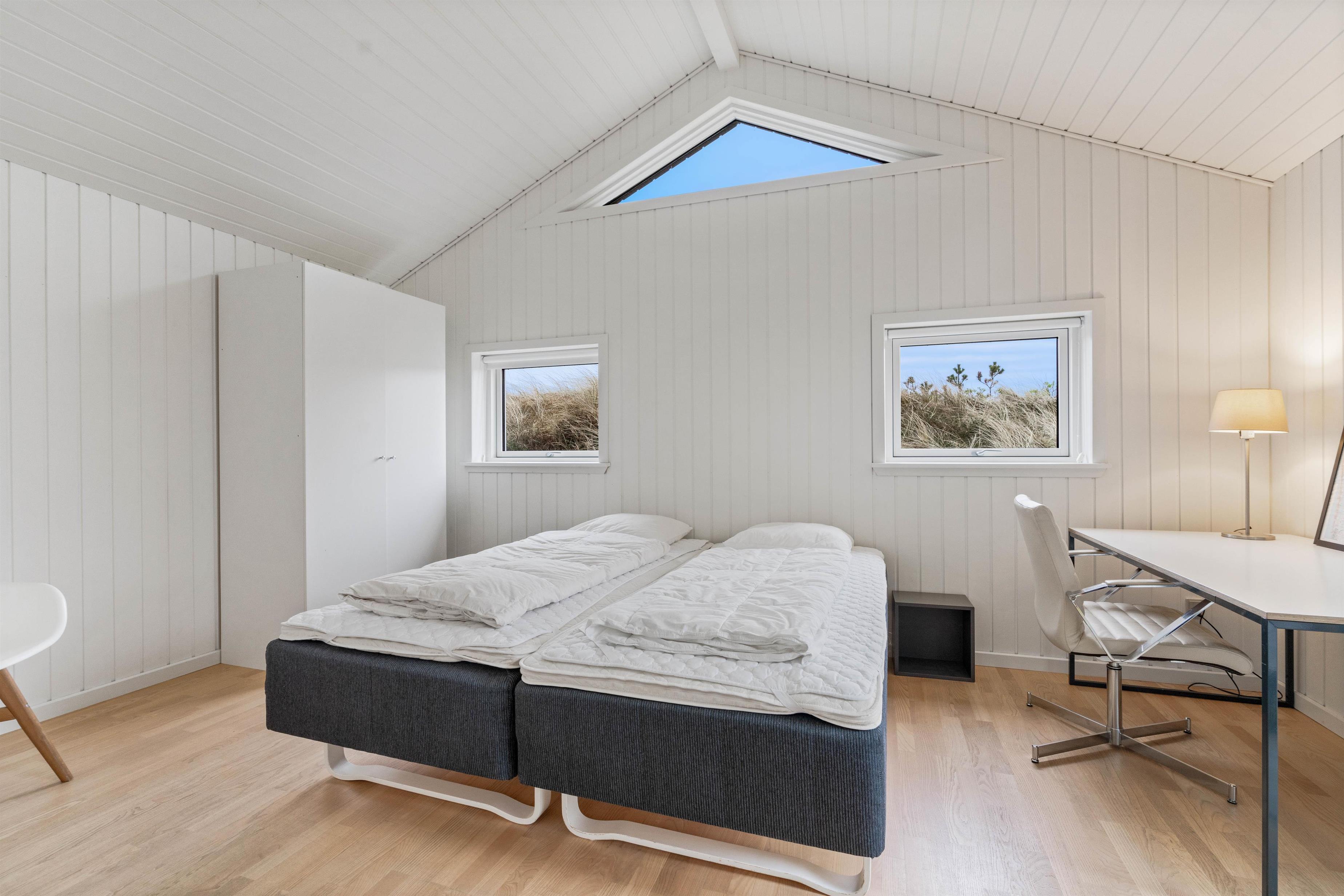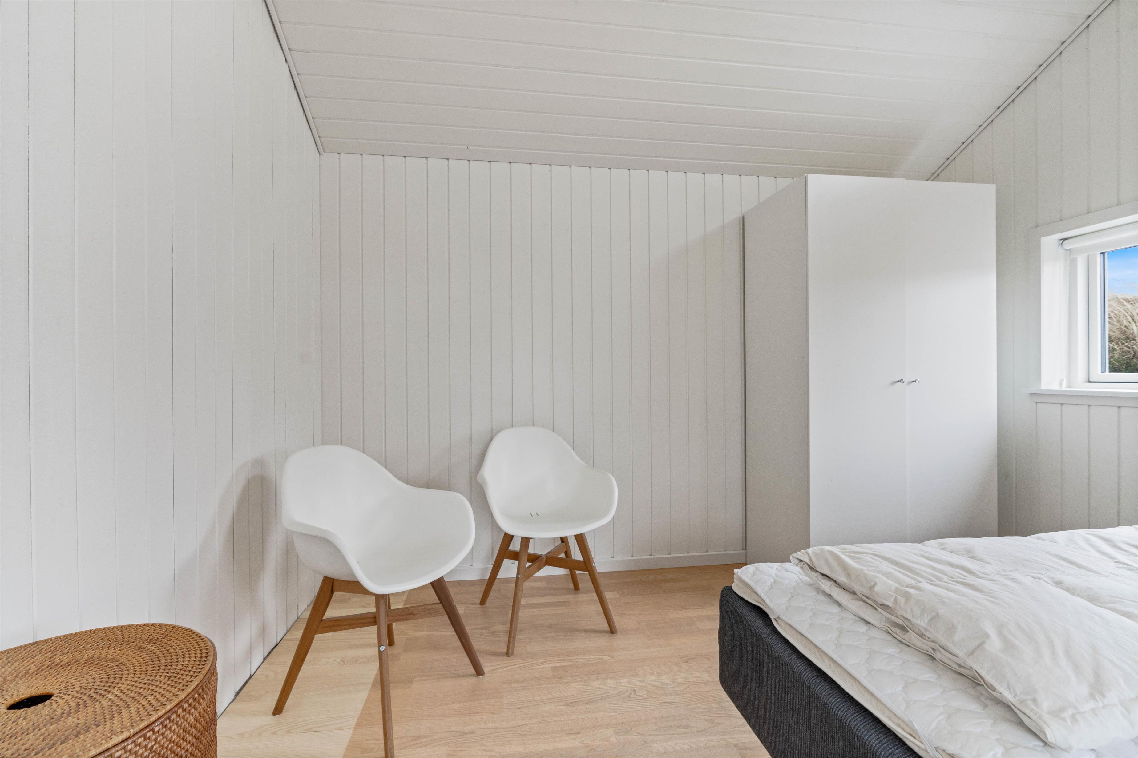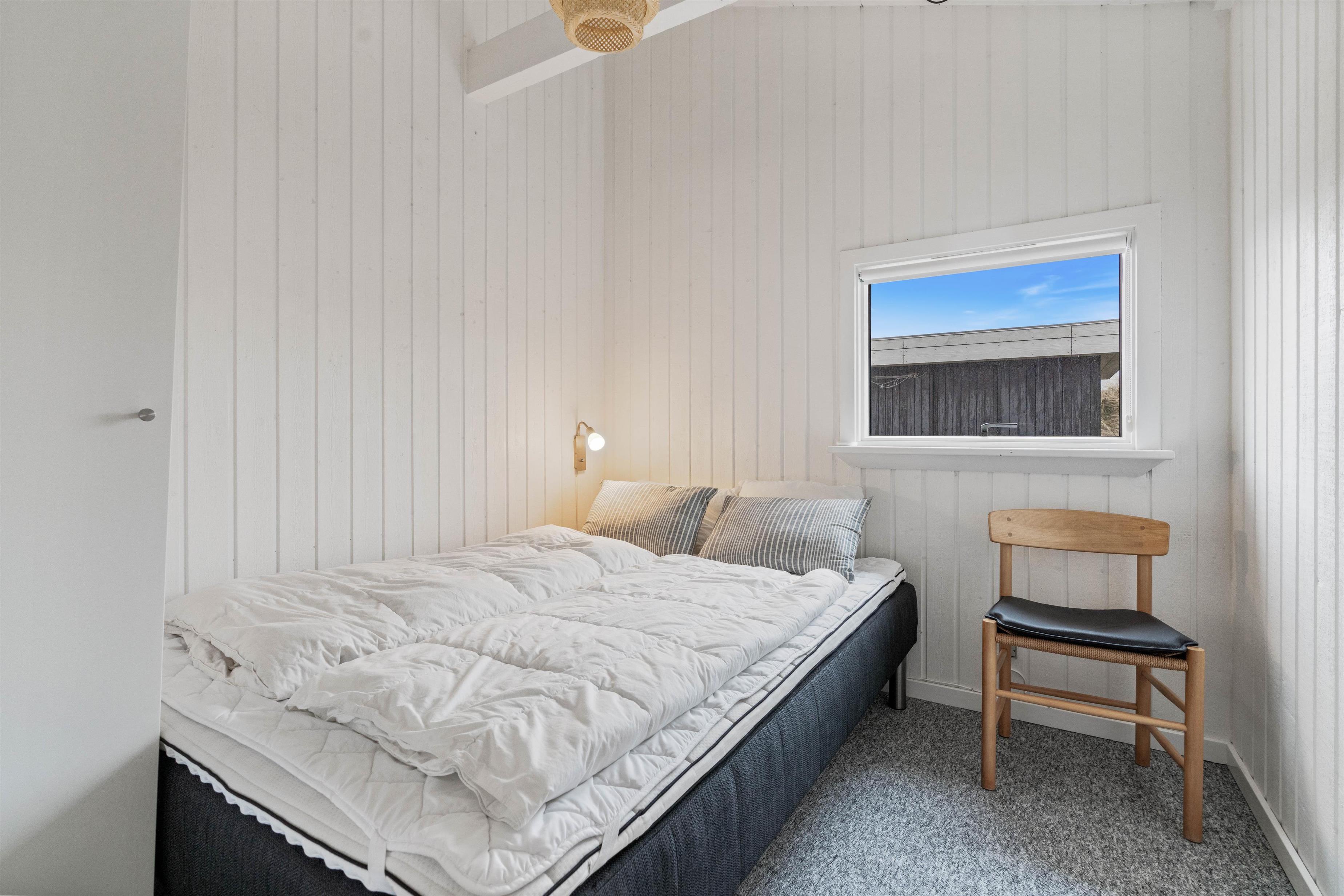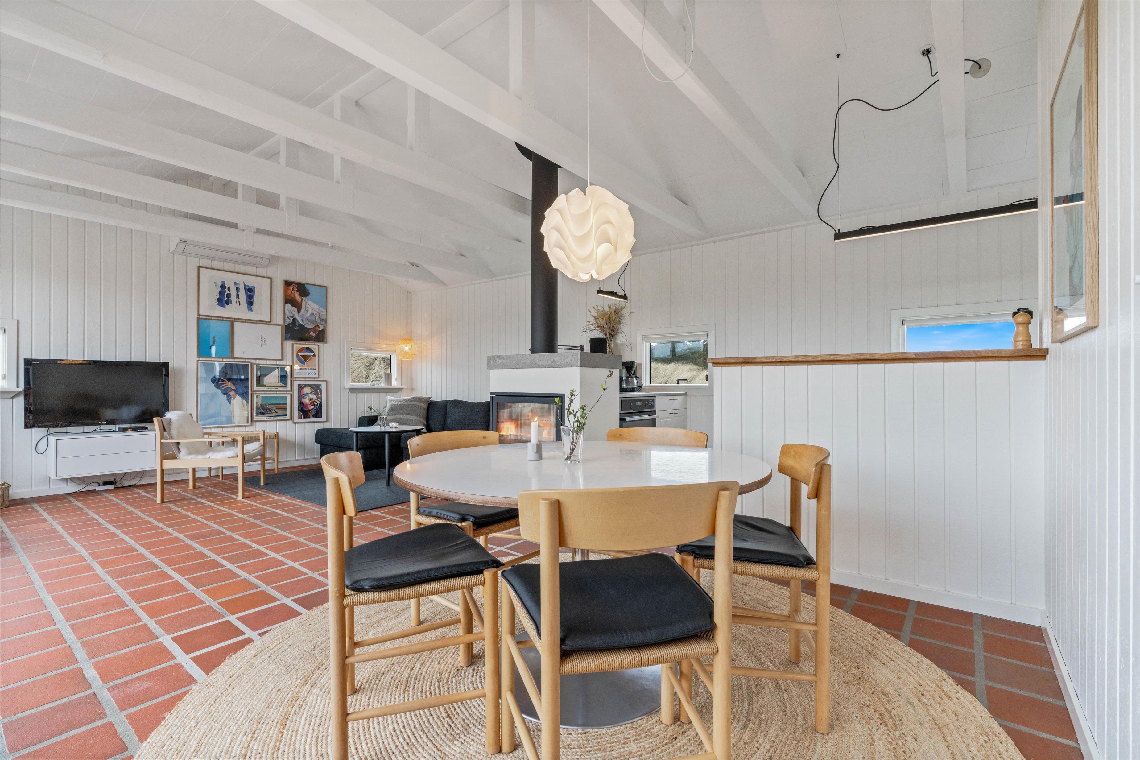 Husets hvidmalede vægge og spær og smagfulde indretning, kombineret med det varme klinkegulv, giver en stemning, så I, som gæster, hurtigt vil føle jer godt tilpas. Huset er dermed udstyret med et splinternyt køkken, hvor i sammen kan lave mad. Stuen er, på grund af det store vinduesparti, meget lys og venlig. Udsigten til klitterne gør, at man også indenfor føler, at man er tæt på naturen. Store dobbeltsenge i 2 af husets soverum og en 140 cm bred seng i det 3. giver garanteret plads til en god nattesøvn efter en dag med masser af frisk havluft.