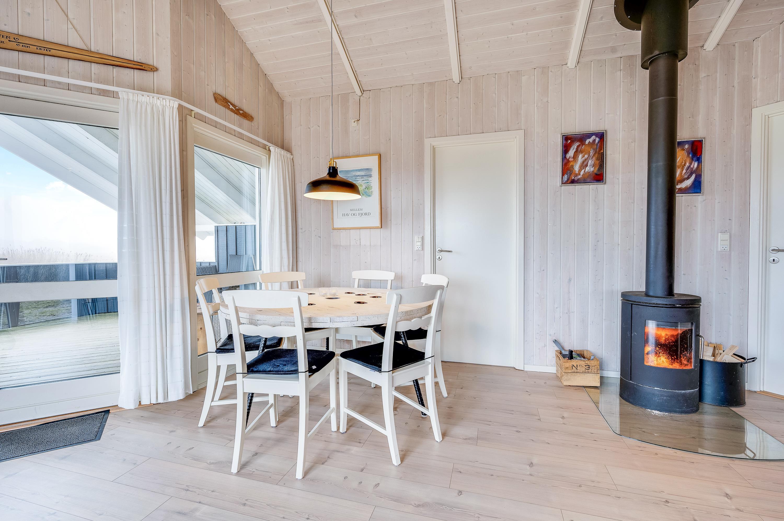 I dette hyggelige og stemningsfulde sommerhus med dets lyse træværk og naturfarver, vil I straks føle jer hjemme og komme i den rette feriestemning. Her er der tænkt over detaljerne og ikke sparet på noget: energibesparende varmepumpe, gratis lynhurtig internetforbindelse samt gratis vaskemaskine. Og i det moderne køkken koges og brases der på induktionskomfur, mens opvasken klares af opvaskemaskinen.