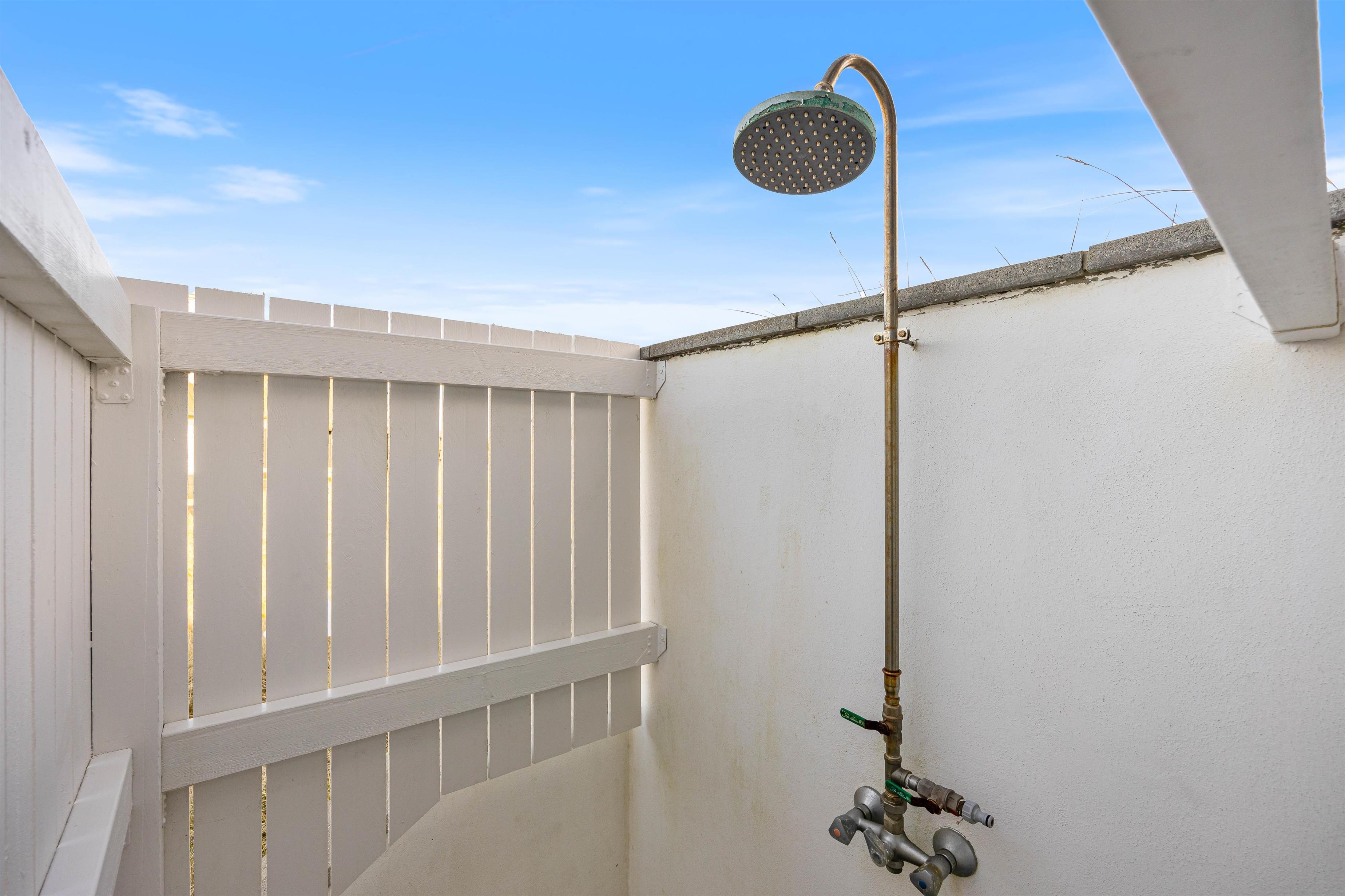 På nordsiden af feriehuset finder i feriehusets udebruser, som er oplagt at bruge efter en god tur på stranden, for at skylle det værste strand af kroppen. OBS. Udebruseren er åben fra april-november.