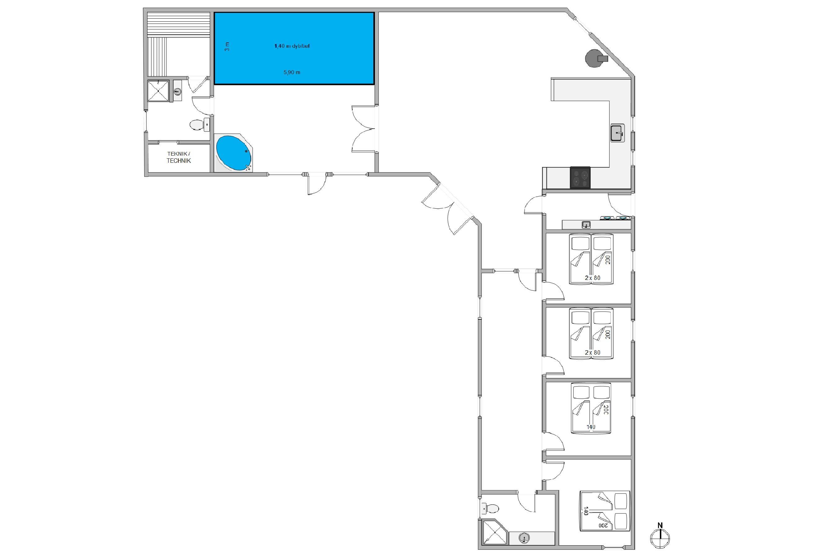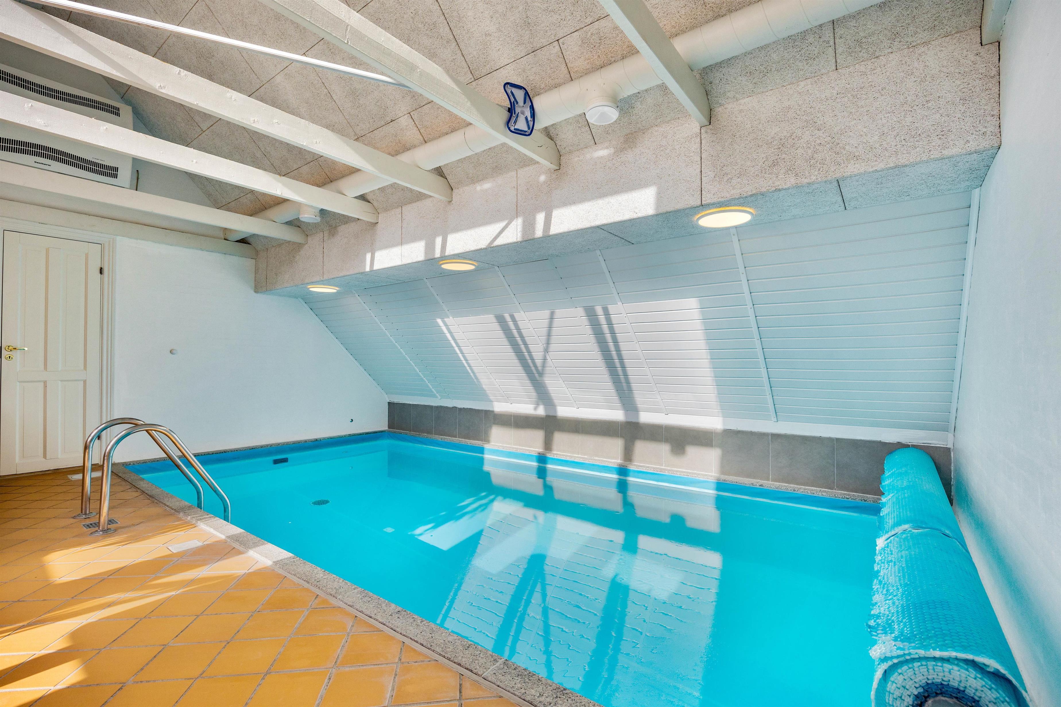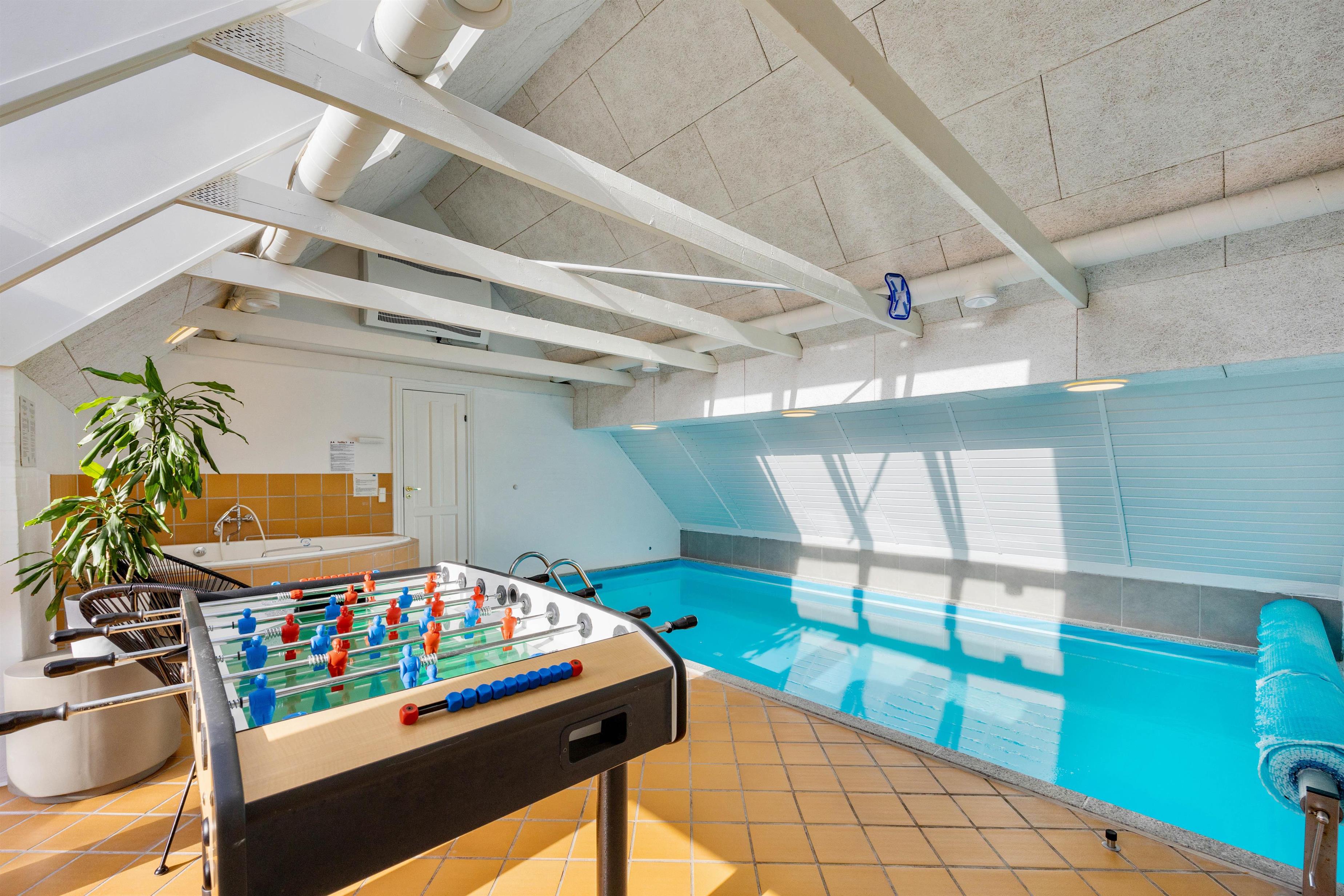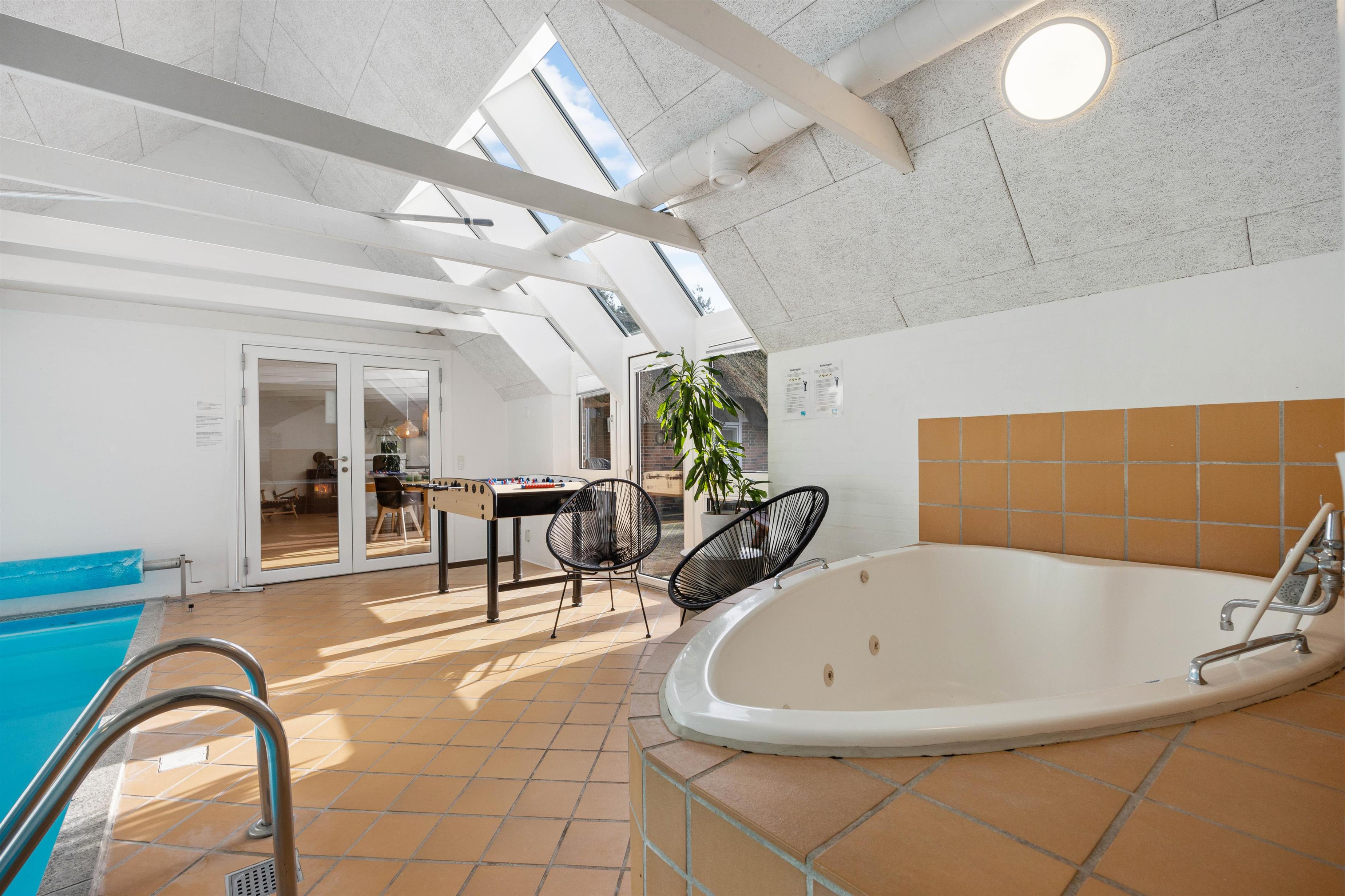 Her er virkelig tale om et rigtig flot og meget velholdt hus med perfekt beliggenhed på en stor afskærmet grund i gåafstand fra Søndervig. Her er masser af underholdning for både store og små: En flot wellness afdeling med 18 m2 swimmingpool, stort boblebad og badeværelse med sauna. Når ungerne er trætte af at plaske i poolen, er der mulighed for et spil bordfodbold. Overalt er huset velholdt og pænt indrettet. Et hus hvor du og din familie eller venner helt sikkert vil føle jer godt tilpas.