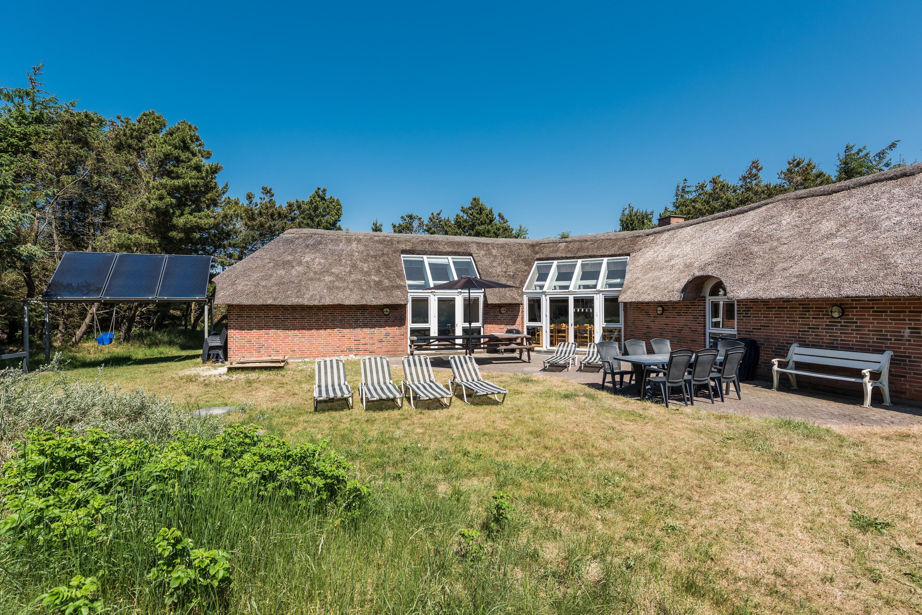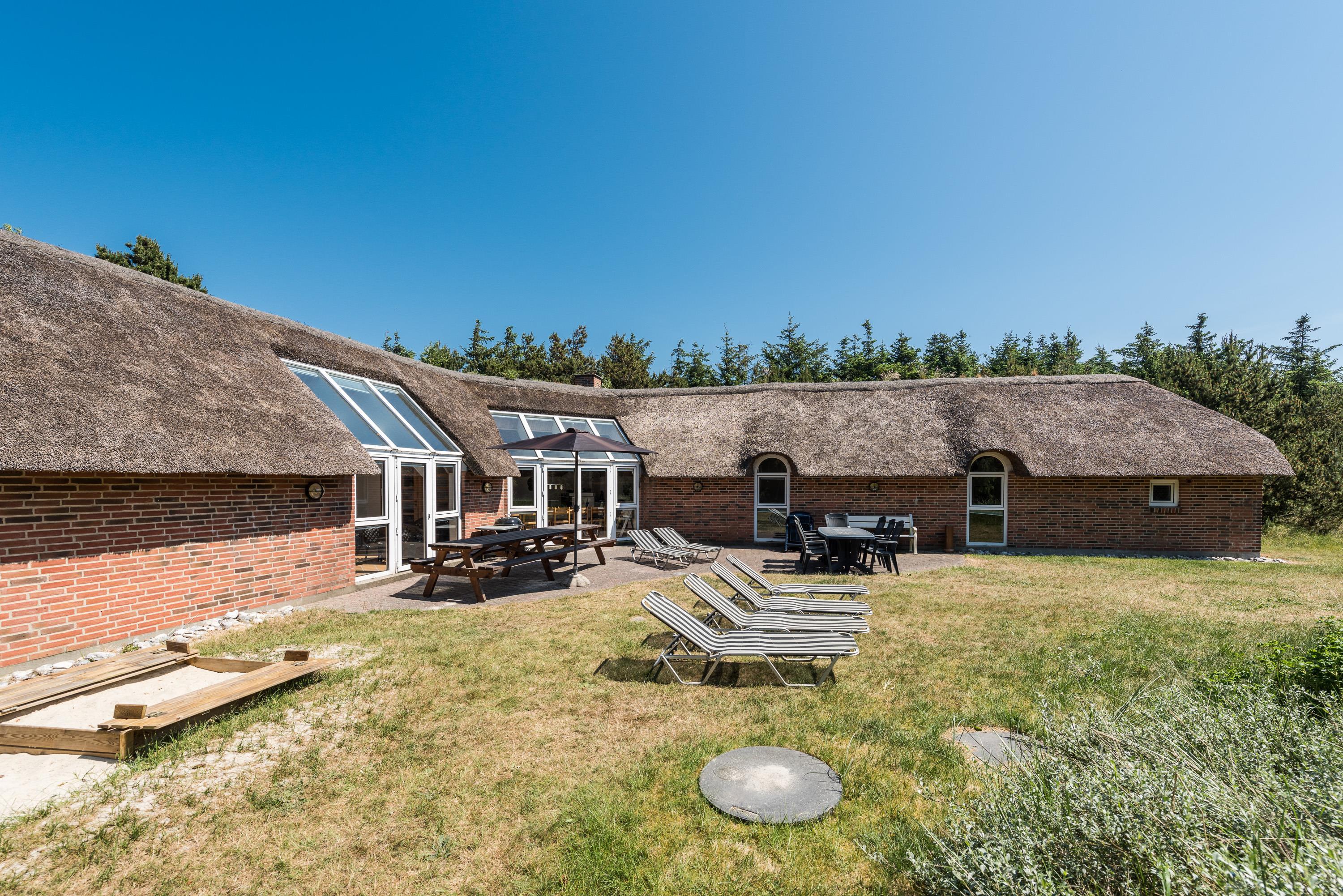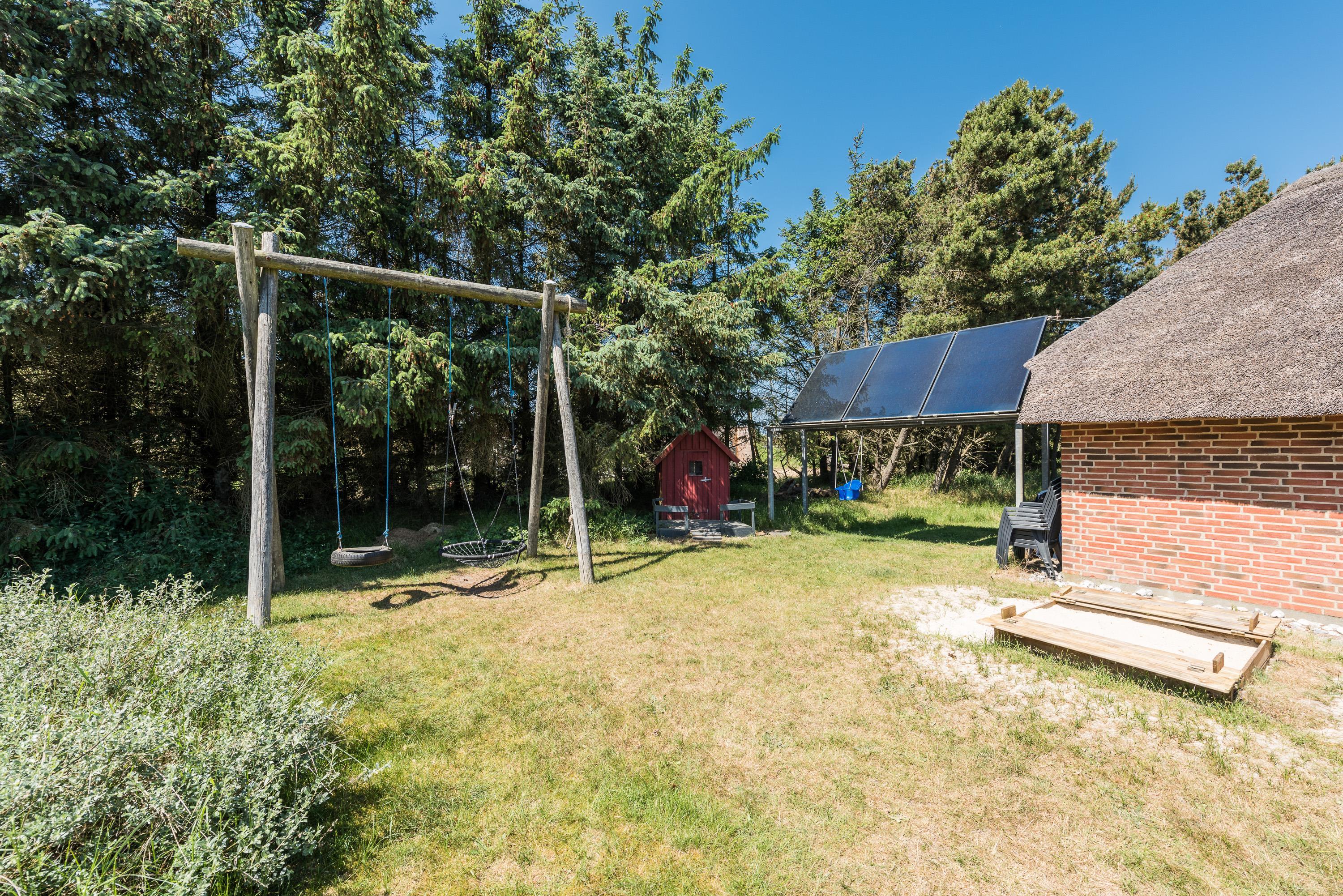 Nyder du at fiske og er fangsten stor, så er der udenfor indrettet fiskerenseplads med rindende vand, hvor fisken kan gøres klar. I Søndervig er der en fin put-and-take sø med mulighed for at fange en ørred til aftensmaden. Trænger du til frisk luft og til at brænde noget energi af, så har du en bane udenfor, hvor der kan spilles basket, fodbold eller hvad du har lyst til. Havet finder du kun 500 meter væk og Søndervig har du indenfor gåafstand. På terrasser er der havemøbler med hynder og parasol, samt liggestole og grill.
