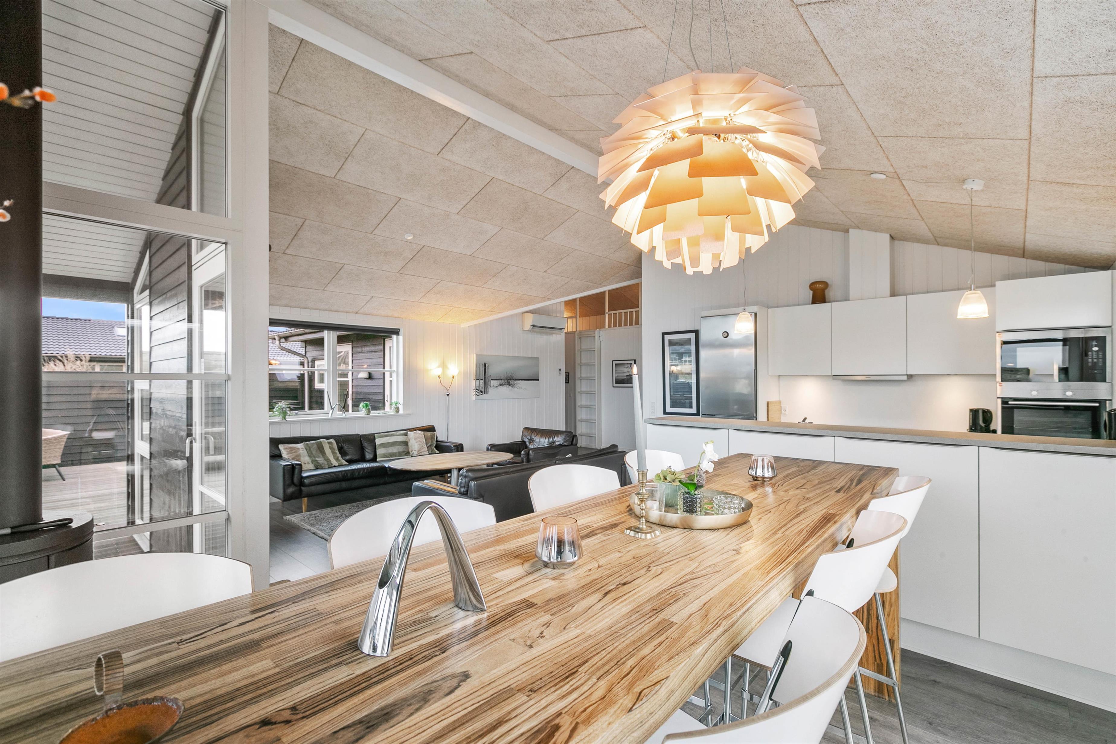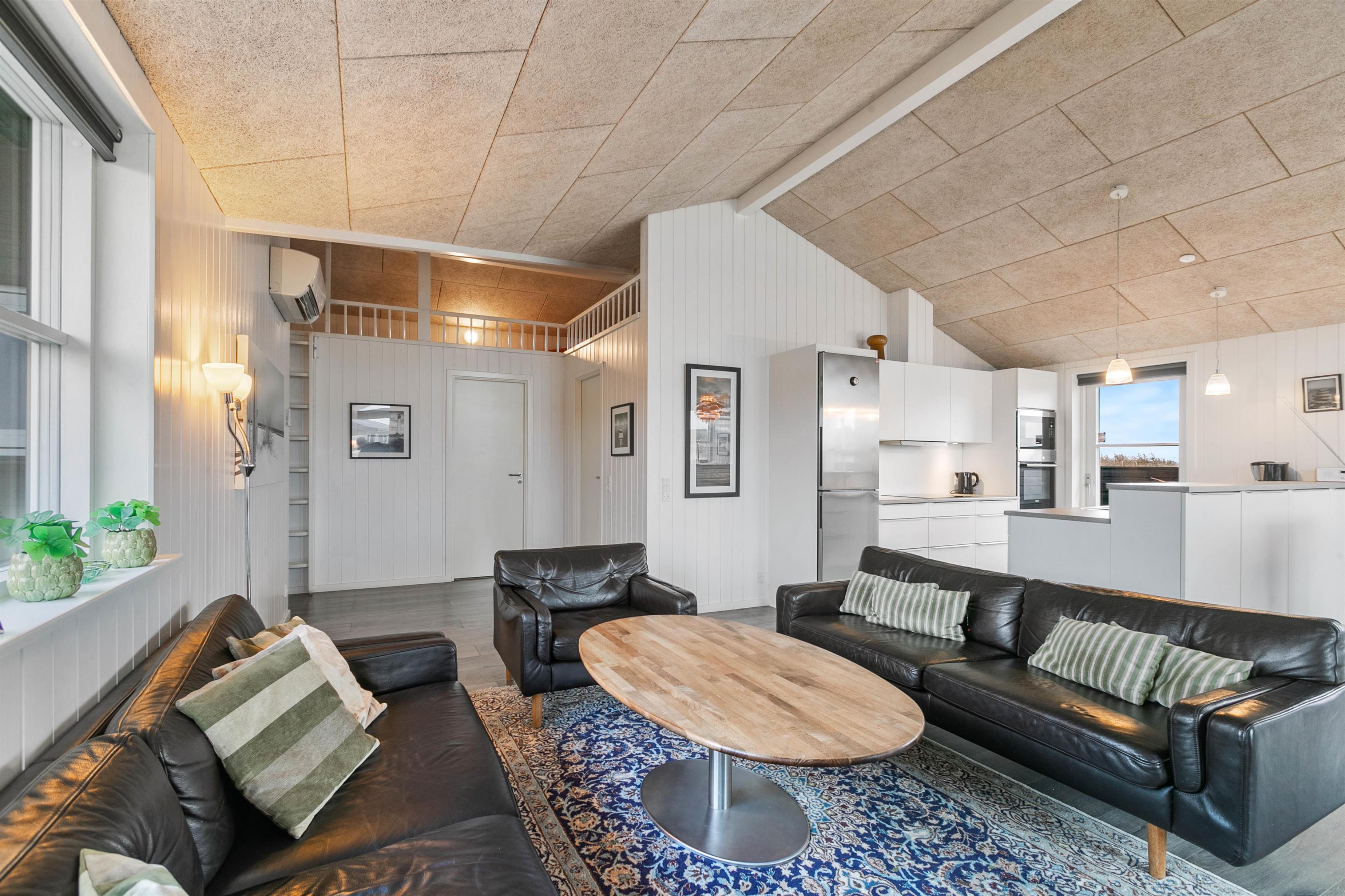 I dette hus kan man nyde en ferie i et moderne sommerhus på Holmsland Klit. Huset er smagfuldt indrettet og fremstår særdeles lyst og indbydende. Gulvene er flotte og rengøringsvenlige, og der er 2 lækre badeværelser. Fra det store badeværelse med sauna er der en terrassedør ud til udespaen på terrassen. Huset er forsynet med flere fladskærms-TV, så både de voksne og børnene kan se det, de gerne vil. Efter en delig feriedag kan I slappe af husets spa eller sauna. Her kan I rigtigt blive varmet igennem og blot lade tankerne flyde.