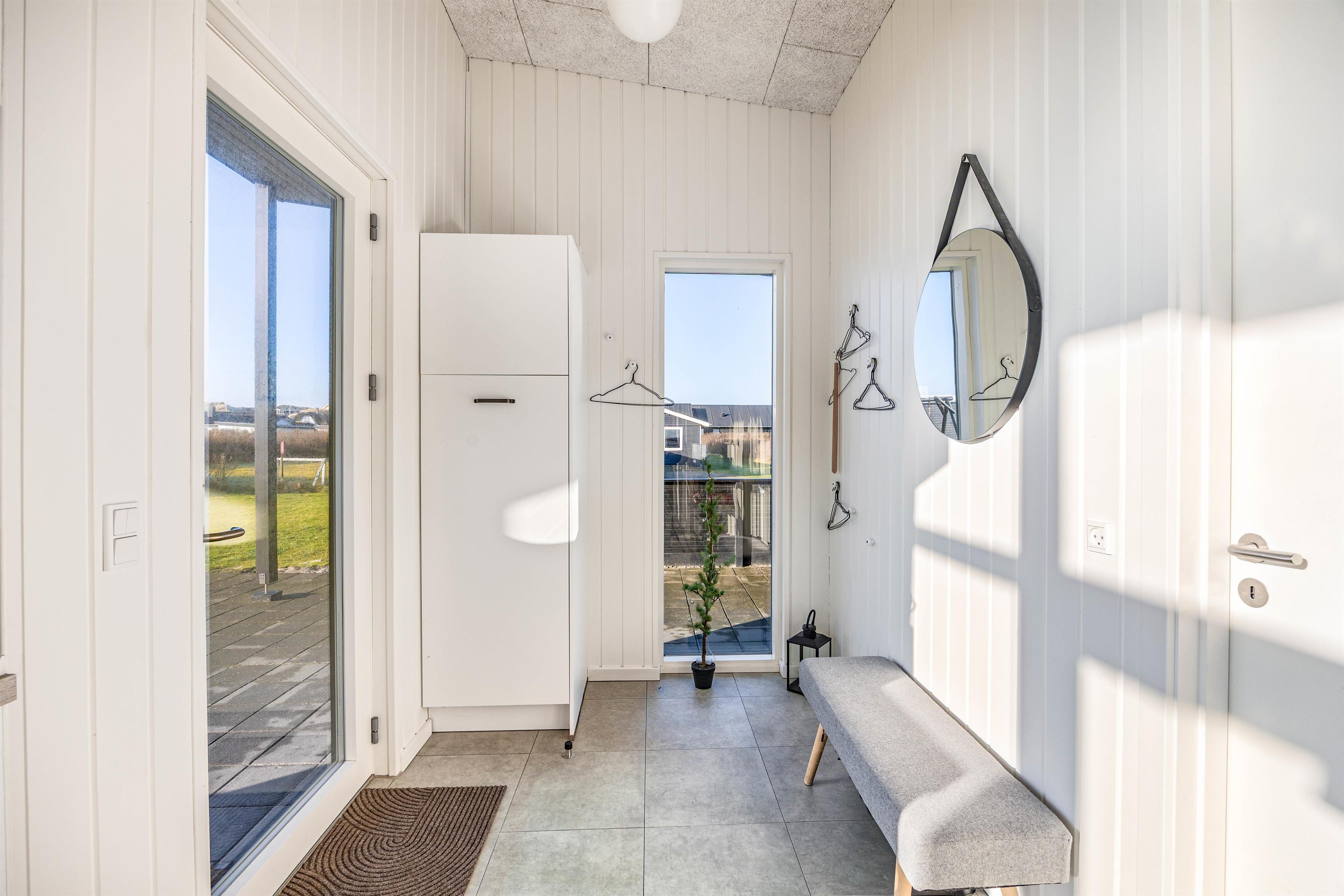 Er I på udkig efter et moderne sommerhus med masser af lys og god plads? Så er Hafavej 32 et oplagt valg. Sommerhuset har plads til op til 8 personer og 1 hund, hvilket gør det ideelt til den store familie eller flere vennepar. Beliggende på en 1.200 m² stor grund ligger sommerhuset kun 300 meter fra Vesterhavet og de brede, hvide sandstrande, som området er kendt for.