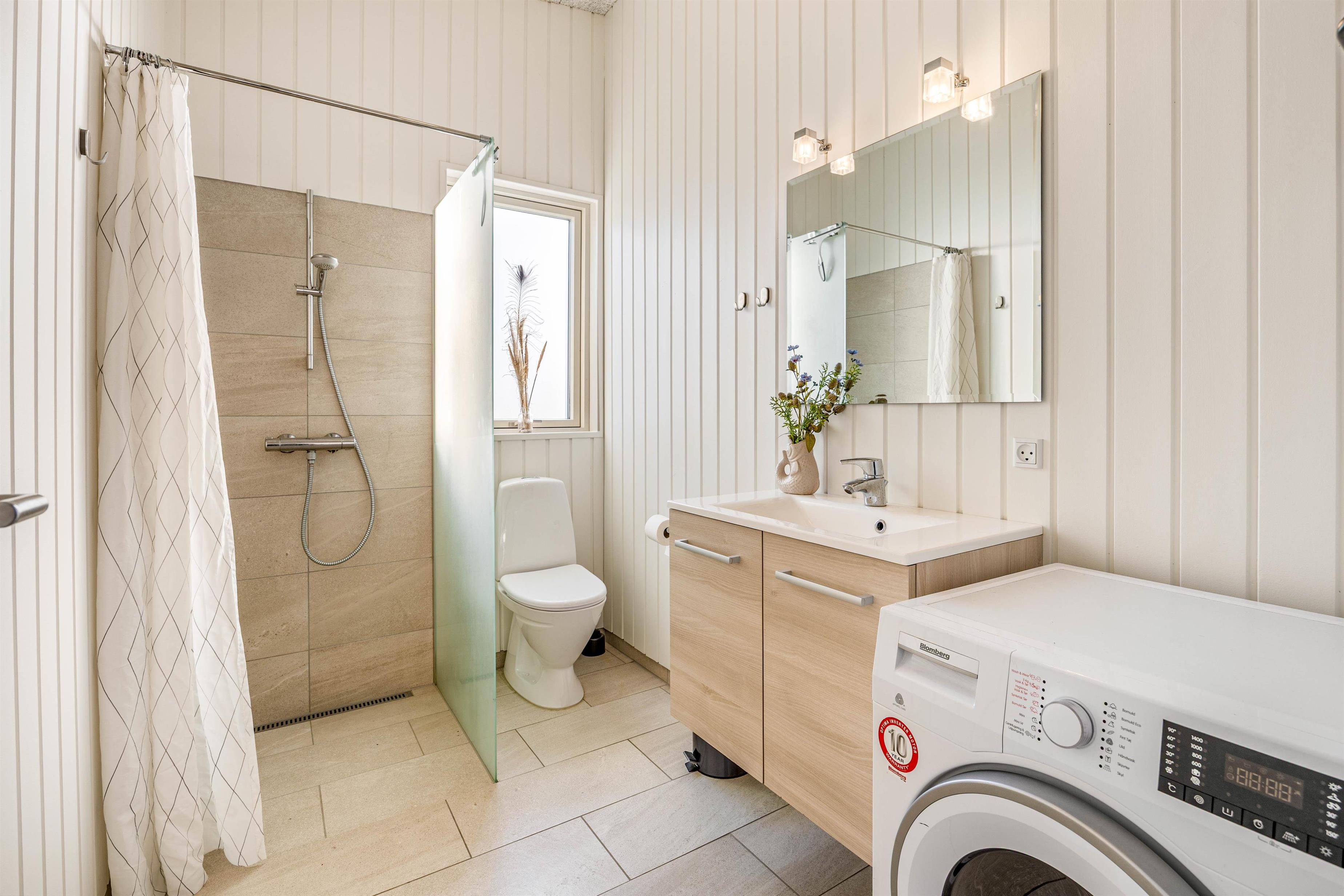 For ekstra komfort er sommerhuset udstyret med opvaskemaskine, separat fryser på 60 liter, vaskemaskine og tørretumbler. Begge badeværelser har gulvvarme, så ingen behøver at fryse fødderne om morgenen.