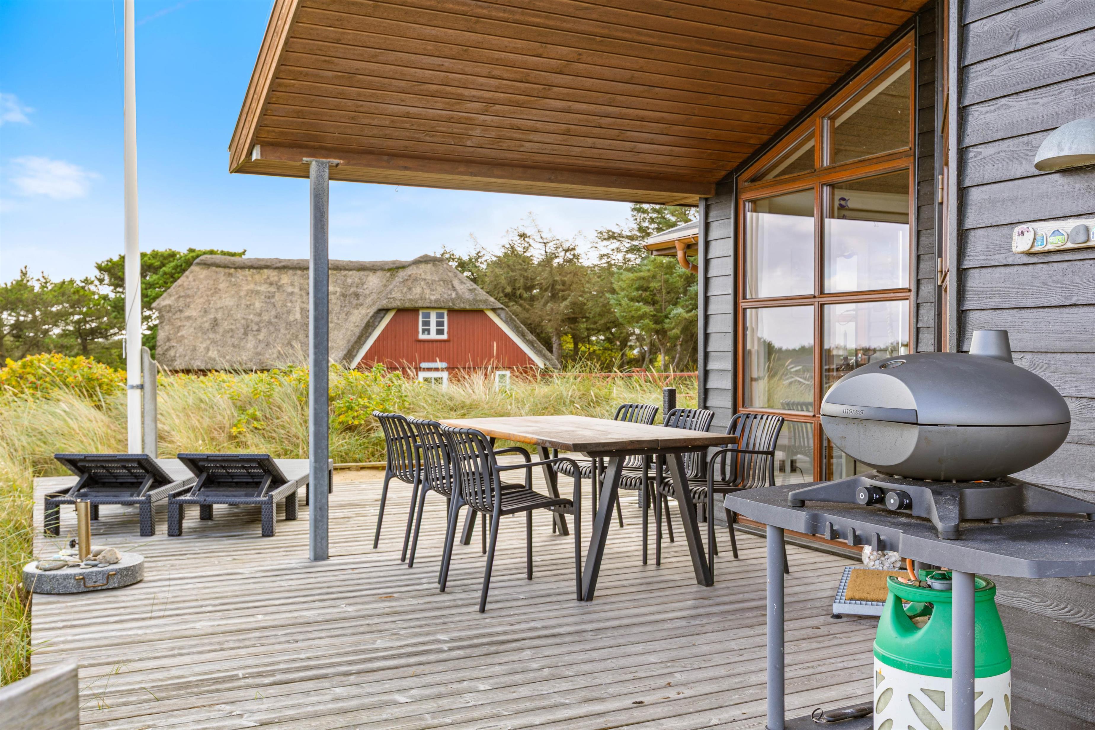 Efter en dag fuld af aktiviteter, kan I slappe af i sommerhusets sauna eller nyde en stund i spabadet. Sommerhuset indeholder 2 stilfulde badeværelser, hvor gulvvarme giver ekstra komfort. Den rummelige terrasse byder på både overdækket, åben og afskærmet plads, hvor I kan slappe af og nyde omgivelserne. Med havemøbler til jeres rådighed er der masser af muligheder for at nyde jeres måltider og hygge sammen udendørs.