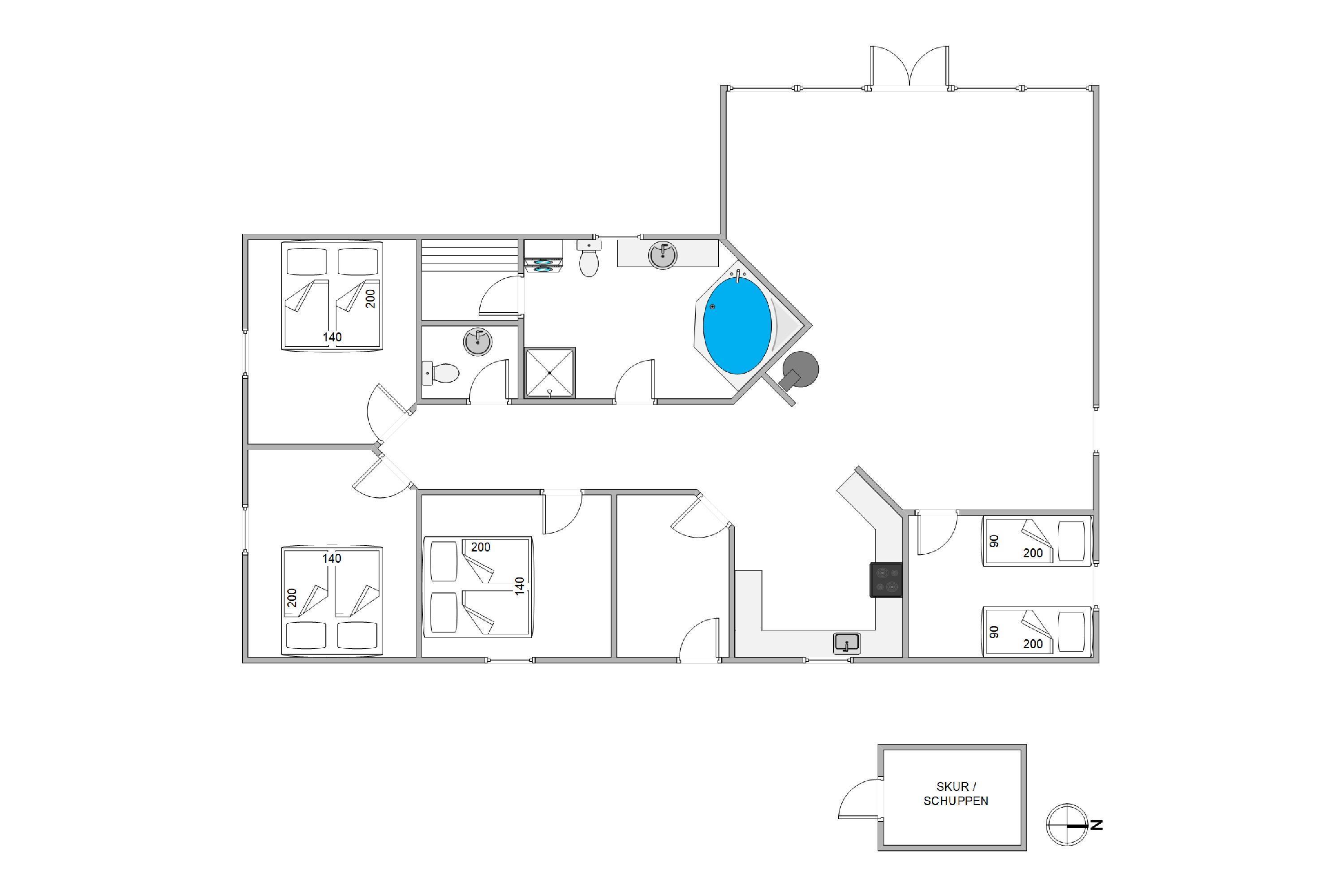 Sommerhuset er indrettet med 4 lyse og rummelige soveværelser, fordelt på 3 dobbeltsenge og 2 enkeltsenge – ideelt til både den store familie eller til flere vennepar, der ønsker at holde ferie sammen.