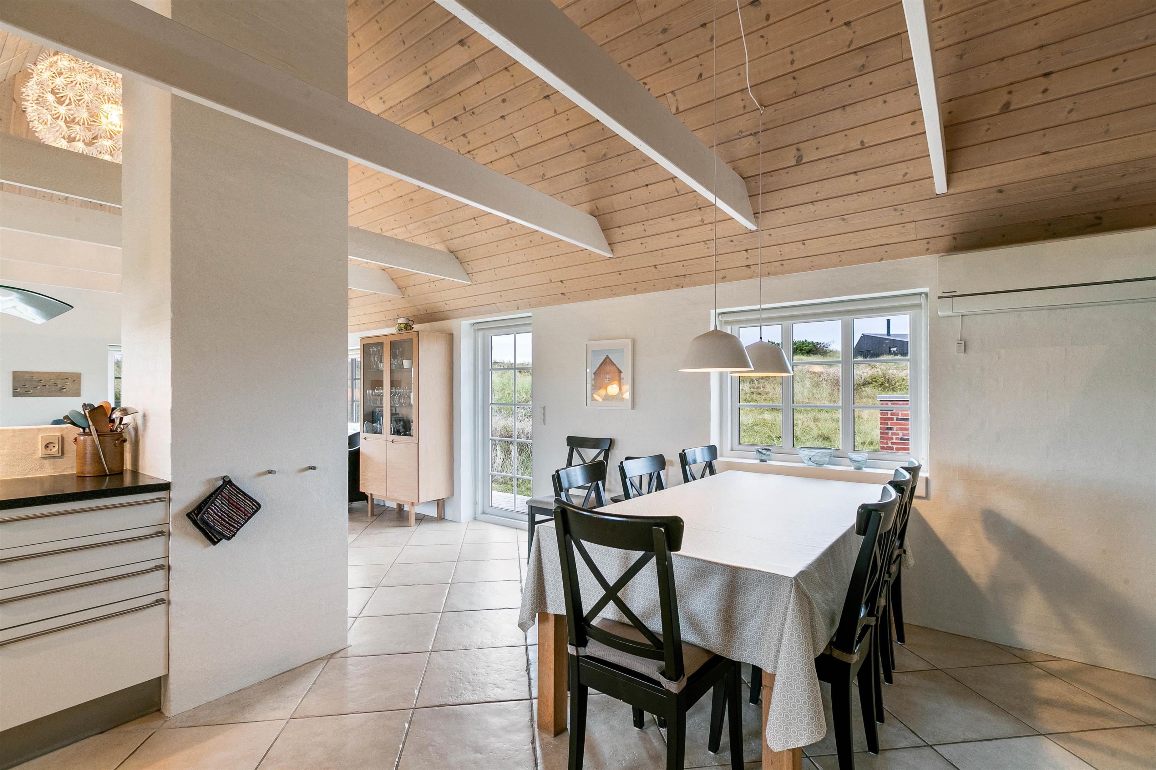 I dette fantastiske og rummelige sommerhus er alle forudsætninger for en god og afslappende ferie til stede. Huset har en dejlige terrasse, hvor I naturligvis finder havemøbler, liggestole og en grill. Der er kun 150 meter til havet og den skønne strand – og Søndervig centrum ligger også i gåafstand fra huset. Der er gynge og sandkasse til de mindste gæster.