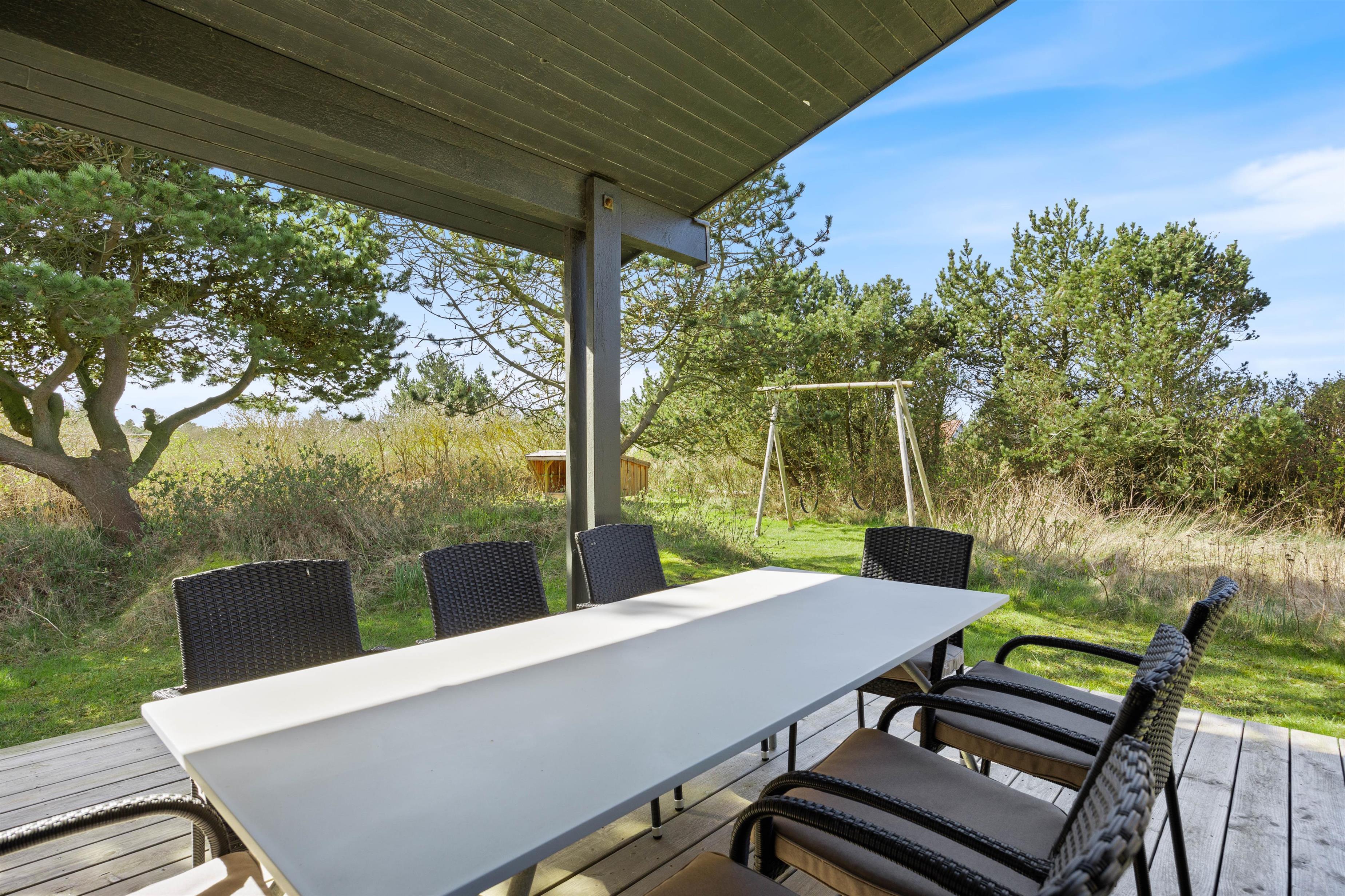 På den store ugenerede grund ligger det skønne sommerhus på Hjelmevej 29 med en stor træterrasse, der er et fantastisk sted at slappe af og nyde det gode vejr med familie og venner. Denne terrasse er ikke bare stor, den har også en række forskellige faciliteter, der gør den endnu mere attraktiv.