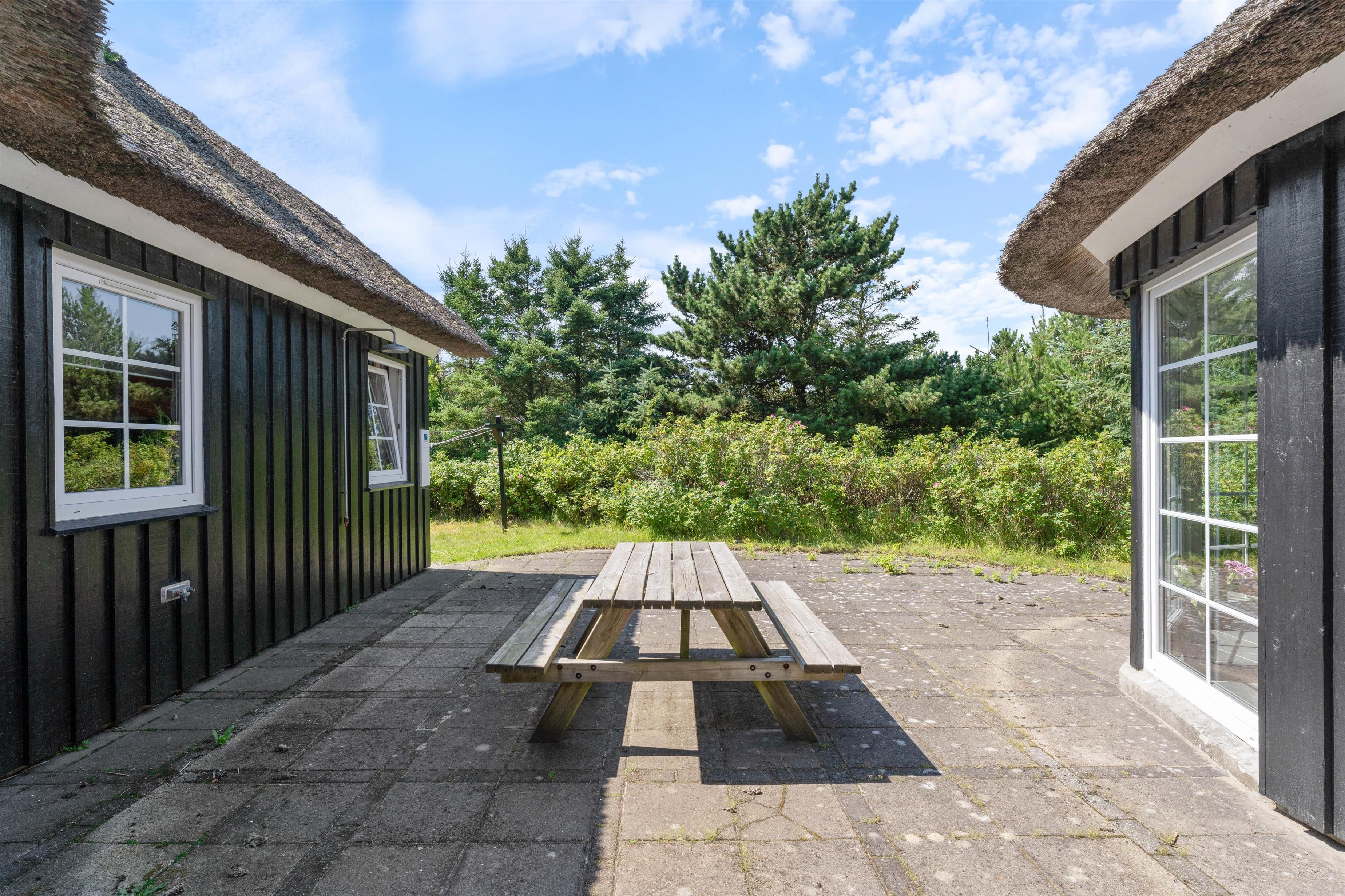 Her er et idyllisk sommerhus med stråtag, hvor I kan nyde jeres ferie i fulde drag. Sommerhuset har plads til syv personer, og det er også tilladt at have hunden med på jeres ferie. Sommerhuset har mange gode kvaliteter bl.a. sommerhusets gode beliggenhed, den stilfulde indretning og ikke mindst det dejlige terrasseområde. Dertil tilbyder sommerhuset en ekstra form for afslapning, da det både har spabad og sauna, hvor I virkelig kan slappe af og nyde jeres ferie.