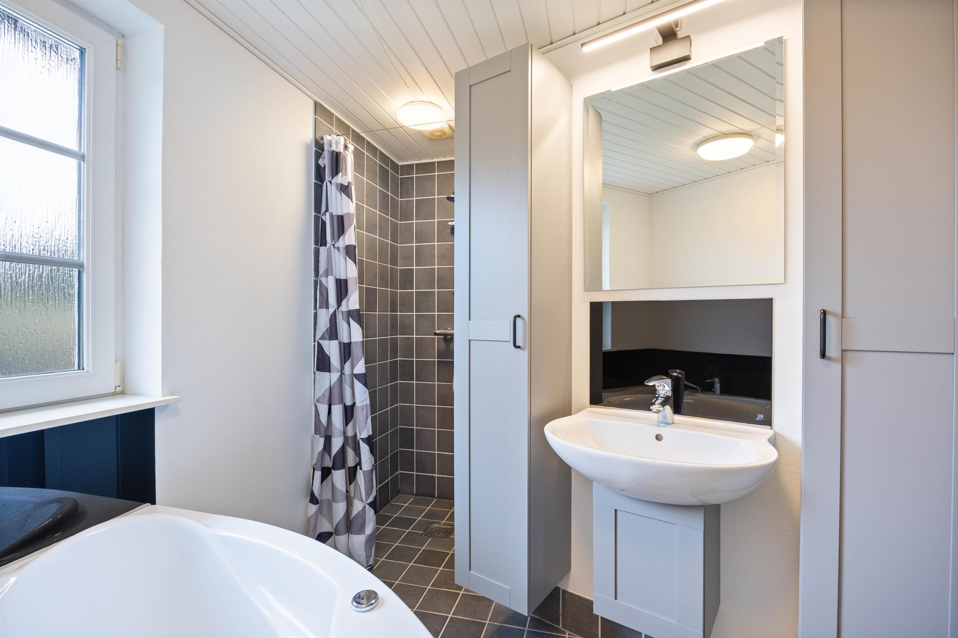 Dette skønne sommerhus har hele to badeværelser, hvor begge er indbygget med gulvvarme. Så hvis I er to familier, der holder ferie sammen, kan hver familie have sit eget badeværelse. Det ene badeværelse indbyder yderligere til ekstra velvære, da det er indrettet med både spabad og sauna. Og efter en lang dag ved stranden eller en god gåtur i klitterne, er det oplagt at benytte begge og rigtigt mærke følelsen af ferie.