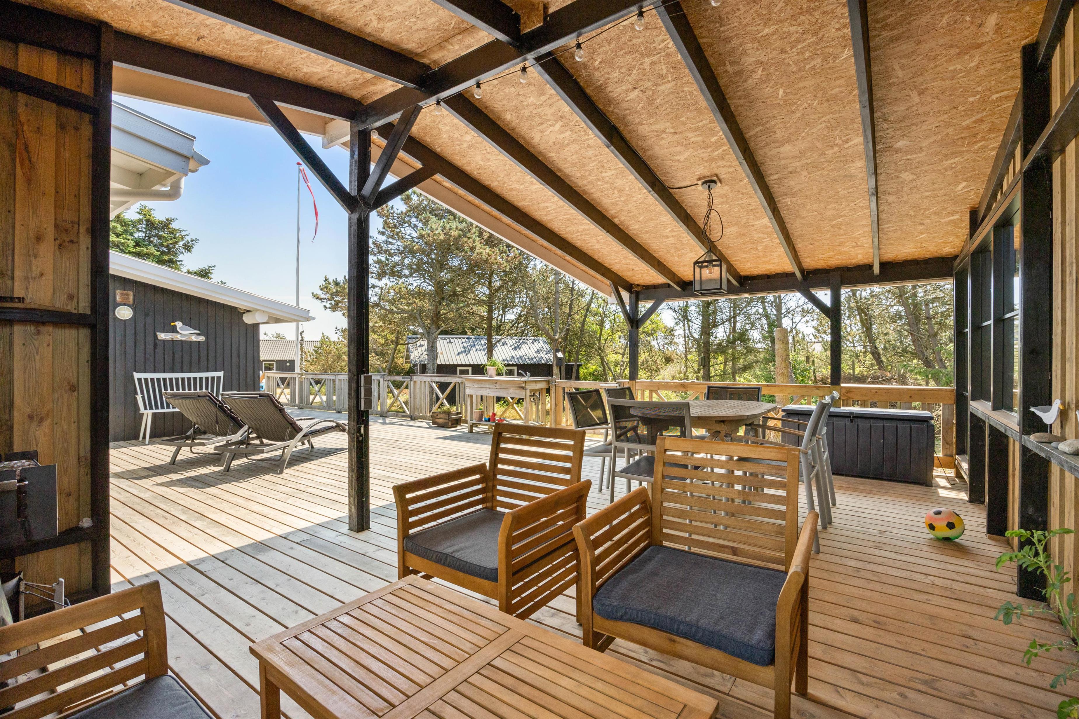 Efter en dag med solbadning i liggestolene kan I tage en forfriskende skyller under udendørsbruseren. Eller I kan benytte bruseren til at skylle det værste sand væk efter en lang dag ved Vesterhavet, der ligger blot 750 meter fra huset.