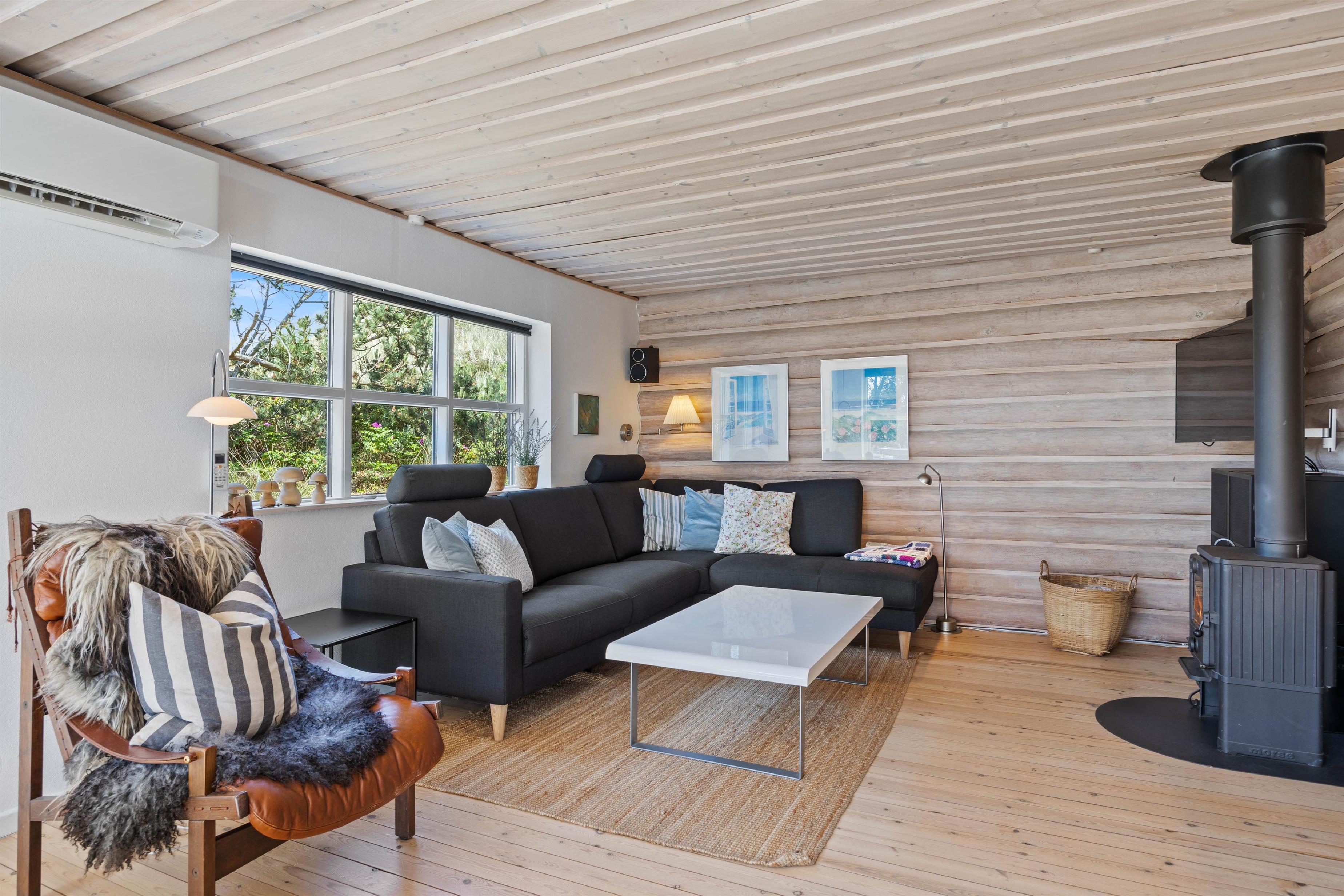 I det hyggelige opholdsrum er der virkelig lagt i kakkelovnen til et par skønne feriedage med fokus på afslapning og hygge. Her står den knitrende brændeovn og udsender sine varmestråler, mens den bløde sofa venter på at blive indtaget. Det er de perfekte omgivelser, når man skal i den rette feriestemning.