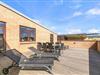 Foran sommerhuset ligger en dejlig, lukket terrasse, hvor sommersolen kan nydes i de gode udendørsmøbler. Feriehuset råder desuden både liggestole og grill til huset. Foran terrassen er der både legetårn, gynge og sandkasse til familiens yngste. Det betyder, at I kan slappe af på terrassen og stadig have et øje på børnene. Når aftensolen er gået ned, kan I trække ind i den dejlige udestue, som I har adgang til fra både terrassen og stuen. Udestuen er også perfekt til de kolde vintermåneder eller det lyse forår, hvor det stadig er for koldt til at sidde ude, da I her ikke er afhængige af vejr eller vind.
