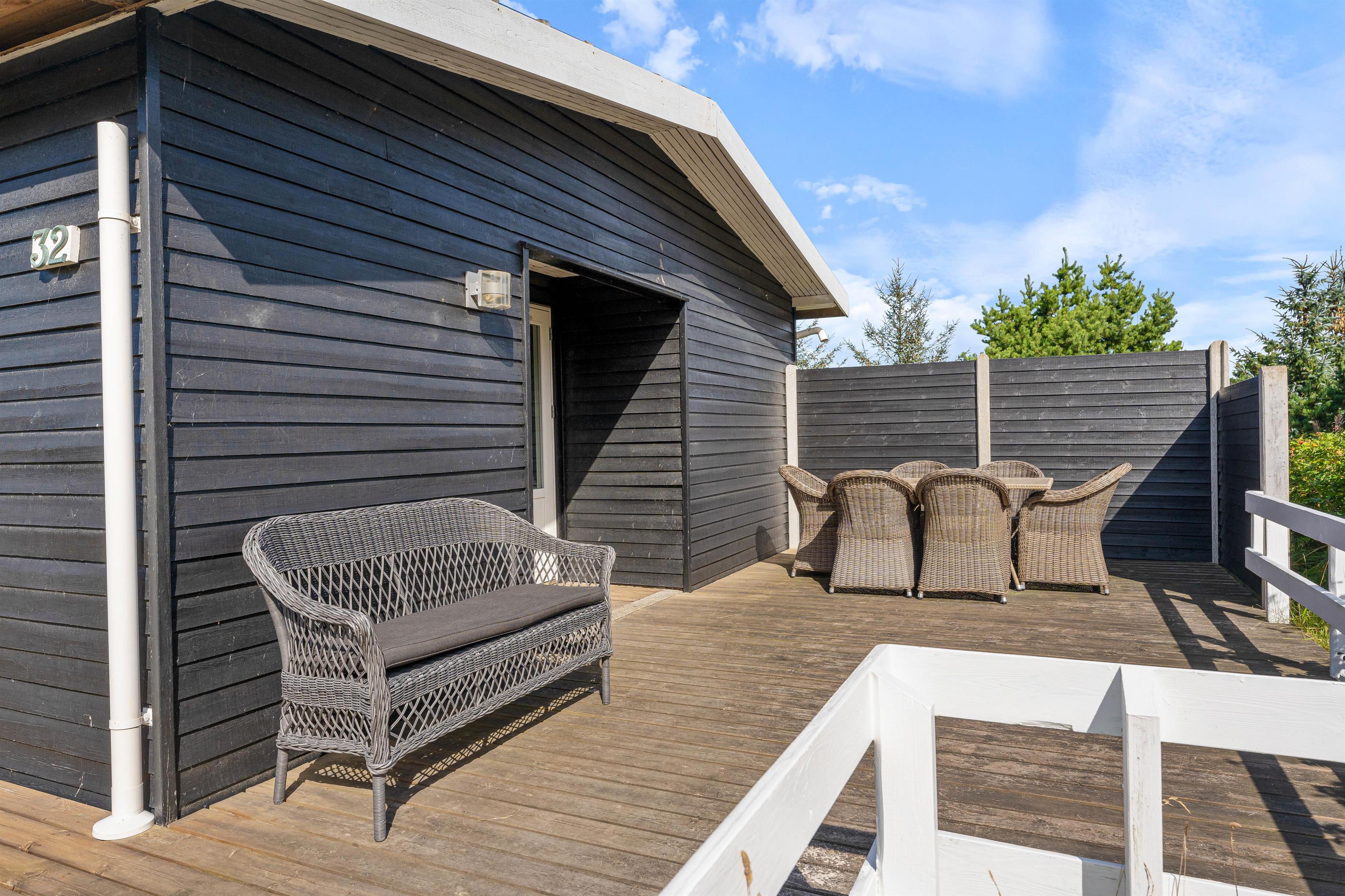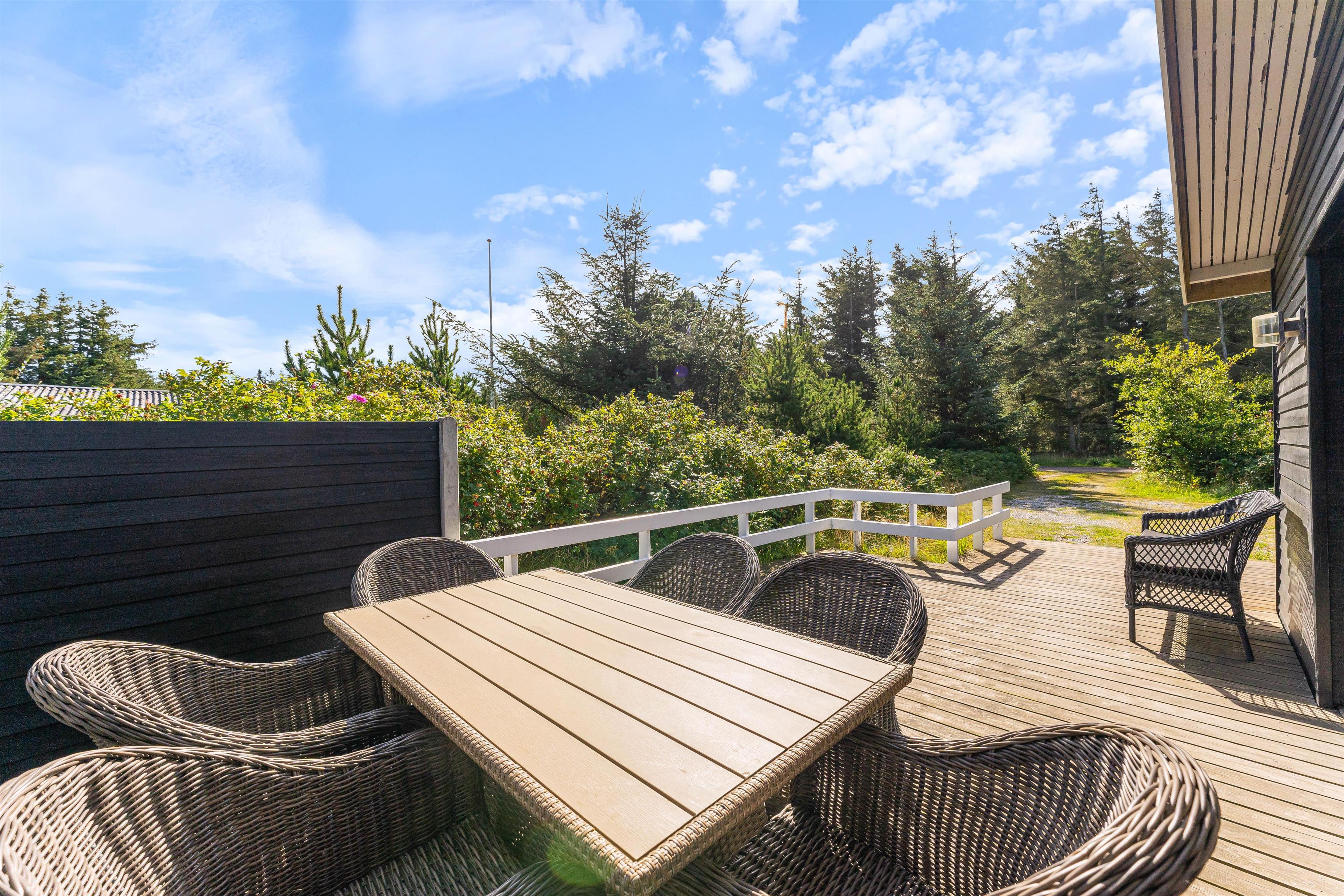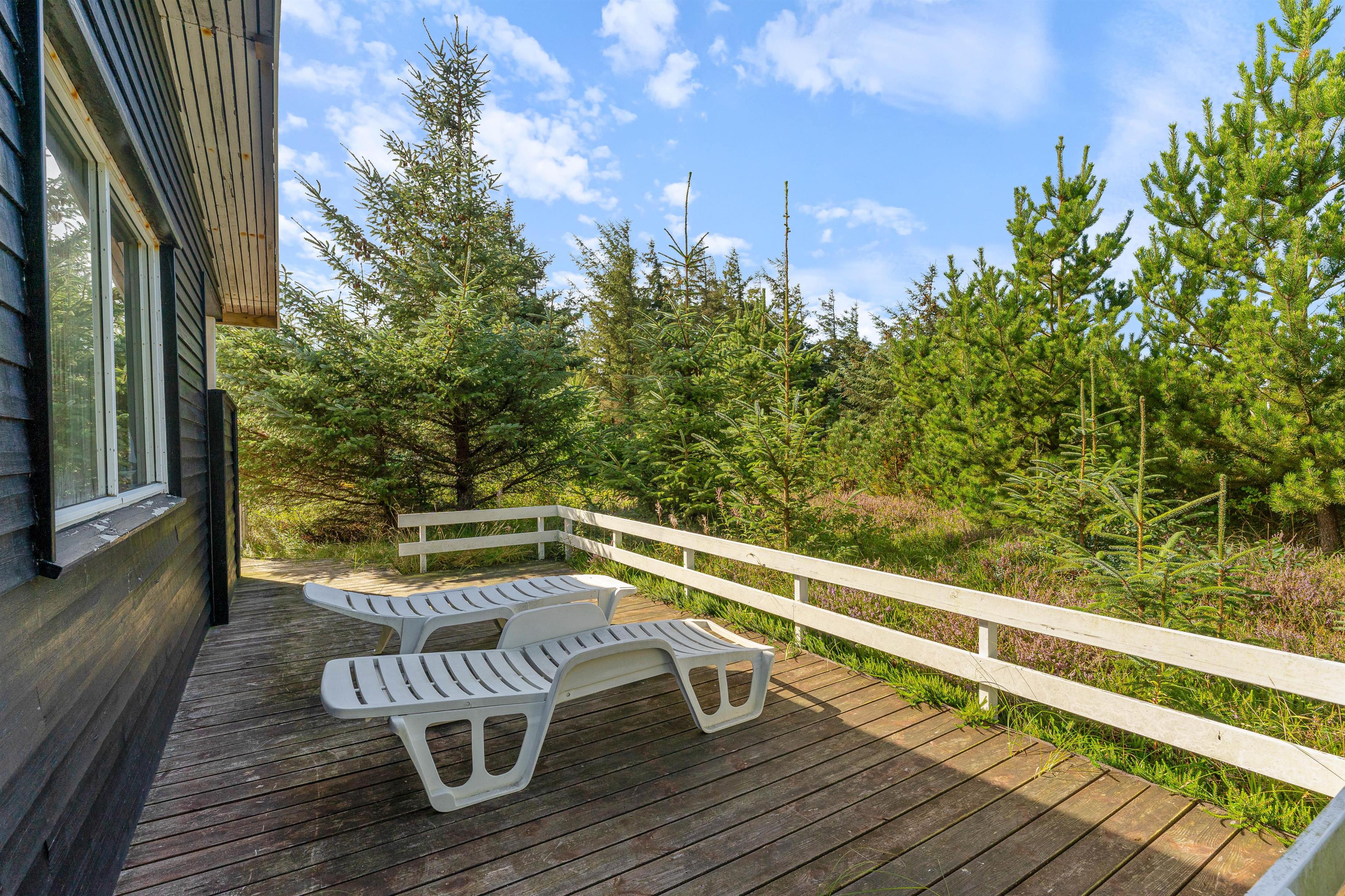 Udendørsområderne ved dette sommerhus i Søndervig er ideelle til både afslapning og leg. Den overdækkede terrasse er perfekt til hyggelige grillaftener med venner og familie. Med tilhørende havemøbler kan I nyde de lange sommeraftener sammen. For børnene er der opsat en gynge, som vil give mange timers sjov. Naturgrunden på 2286m2 giver masser af plads til leg og udforskning. Grunden ligger blot 650 meter fra havet, så I kan nemt tage en forfriskende dukkert eller en afslappende spadseretur langs stranden.