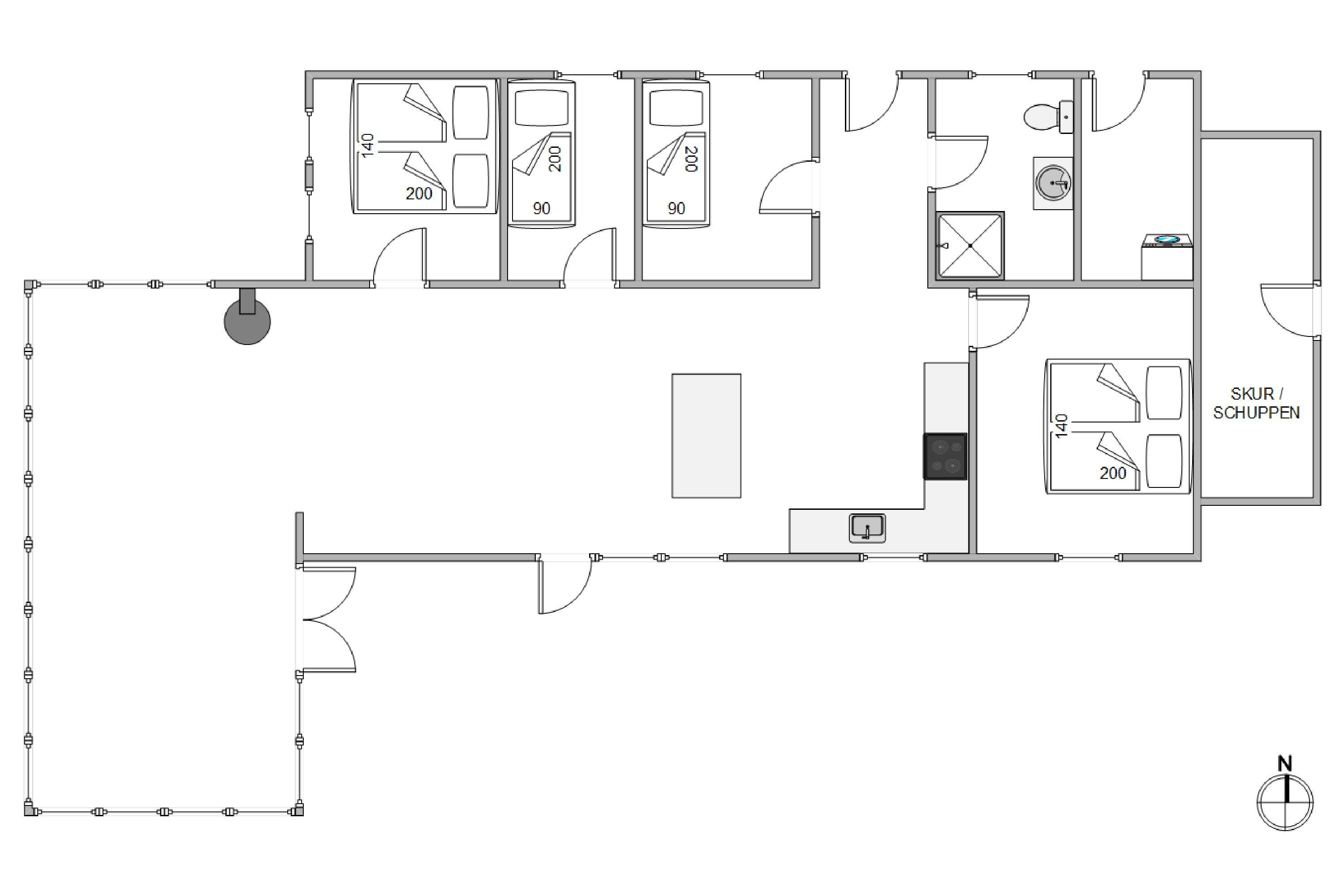 Med et fladskærms-tv og fiberinternet i sommerhuset I kan også sætte jer til rette med en god film. For at også gøre jeres ferie endnu mere afslappende har dette feriehus vaskemaskine, tørretumbler og opvaskemaskine. Luft-til-vand-varmepumpen sørger for en behagelig og energieffektiv varme i feriehuset.