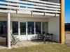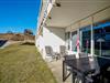 I kan træde direkte ud på ferielejlighedens overdækkede terrasse fra alrummet. Her kan I sætte jer til rette i havemøblerne, mens I bare nyder jeres ferie med lyden af bølgernes brusen i baggrunden.
