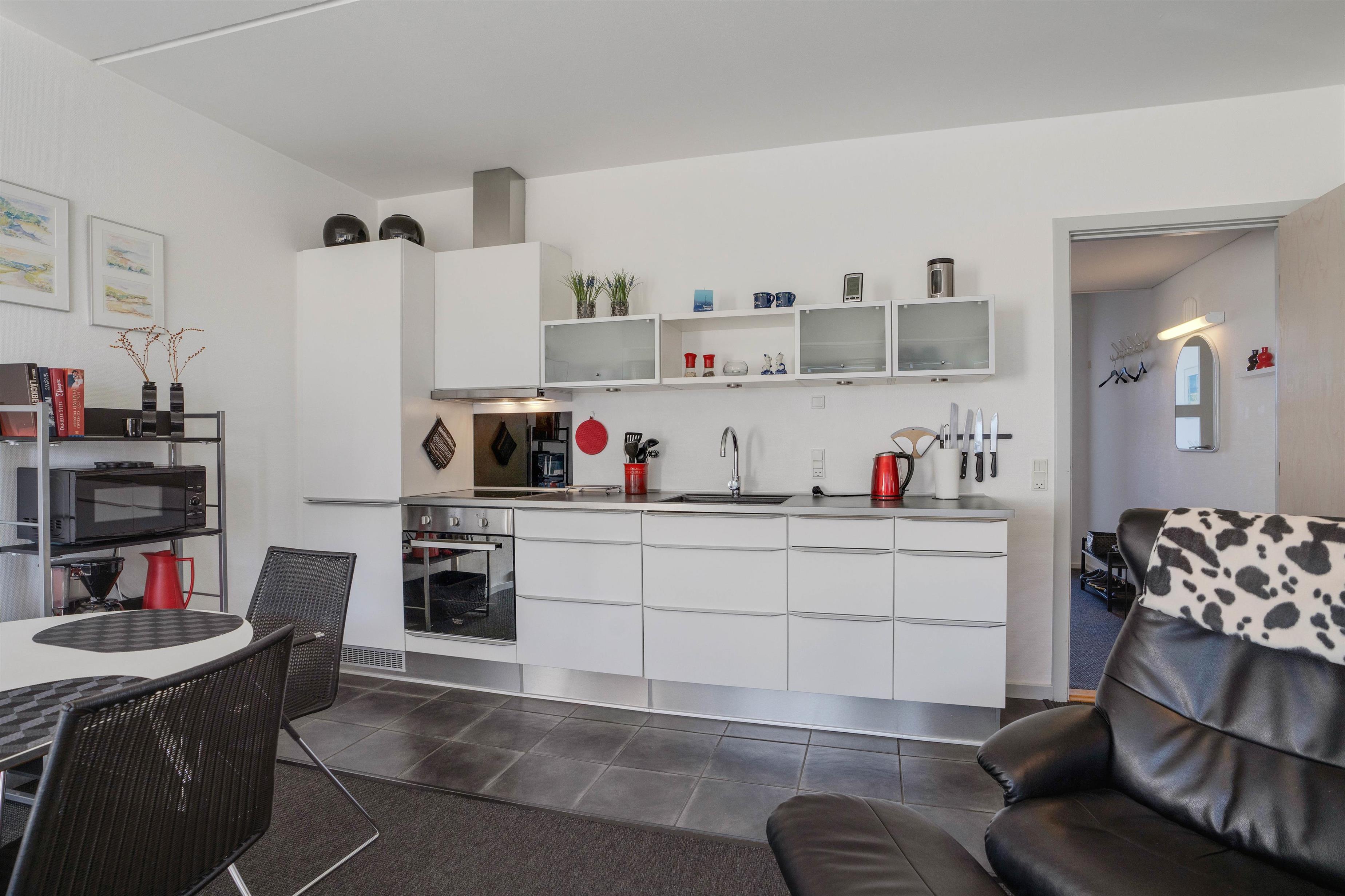 I den 50 kvadratmeter store ferielejlighed på Lodbergsvej 239G, 101g st i Søndervig er det alrummet, der udgør hjertet og jeres samlingspunkt på ferien. Her er køkken, stue og spiseplads forenet, og derfor har I mulighed for at tilbringe mange hyggelige stunder sammen her, hvor I kan samles til forskellige aktiviteter.