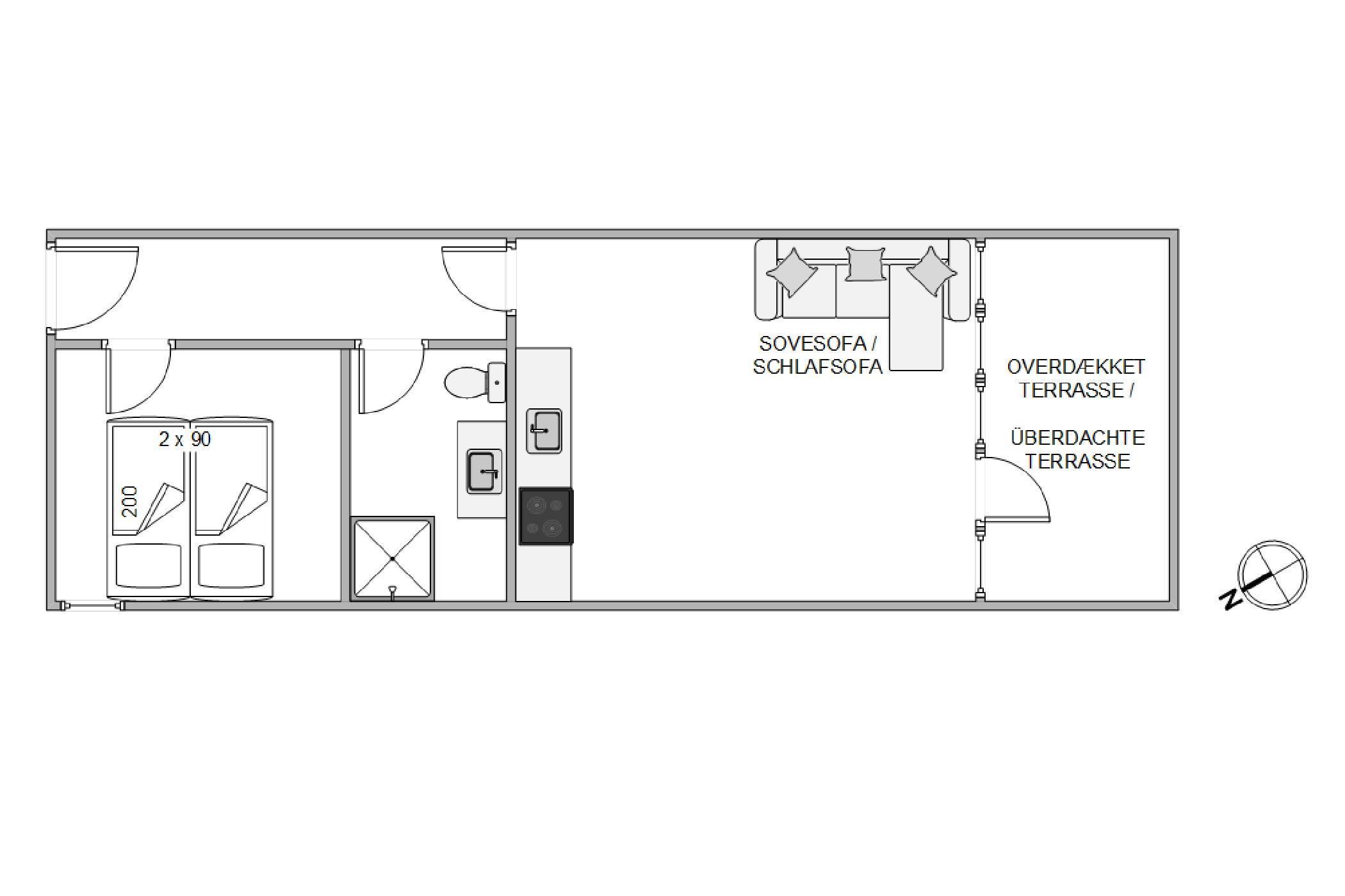 I ferielejligheden er der 1 soveværelser med 2 enkeltsenge samt en dobbelt sovesofa i alrummet, hvor I kan søge hen efter en dejlig feriedag, så I kan samle ny energi. Derudover er der 1 badeværelse i ferielejligheden.