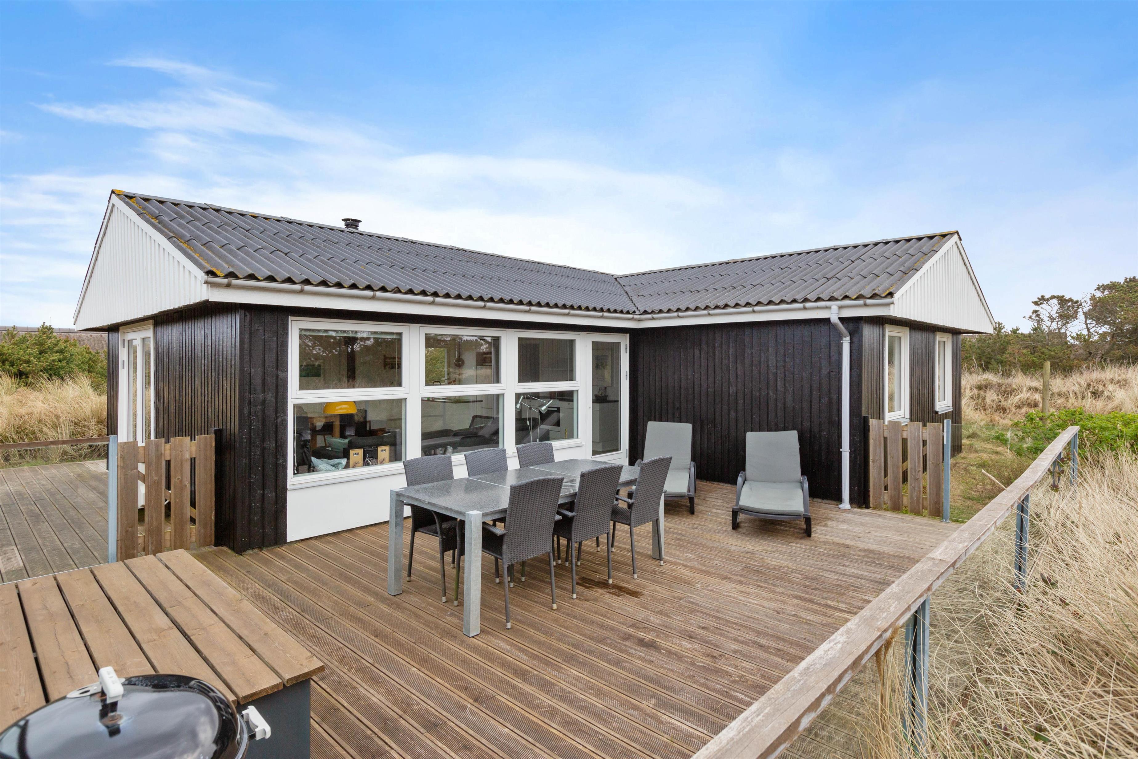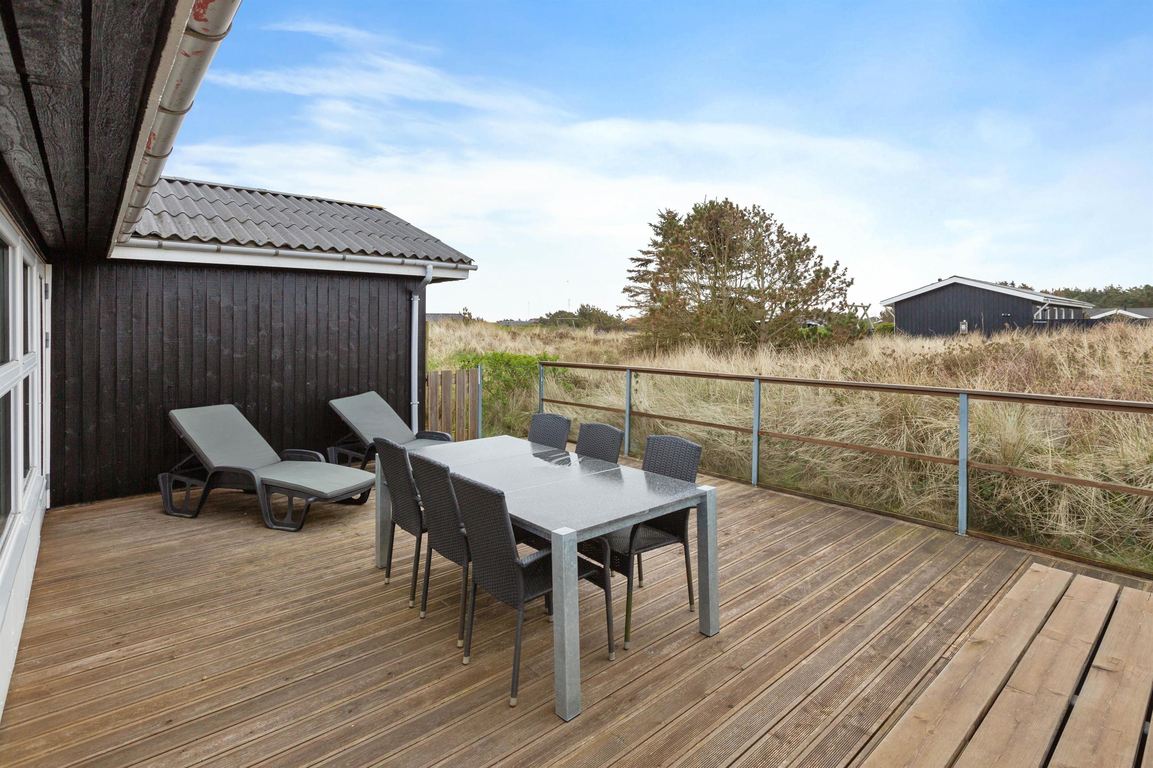Der er flere hyggelige siddekroge rundt om feriehuset, og I kan følge med solen hele dagen. Nyd udsigten til den flotte vestjyske natur med lyng, hede og klitlandskab så langt, øjet rækker.