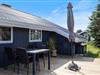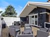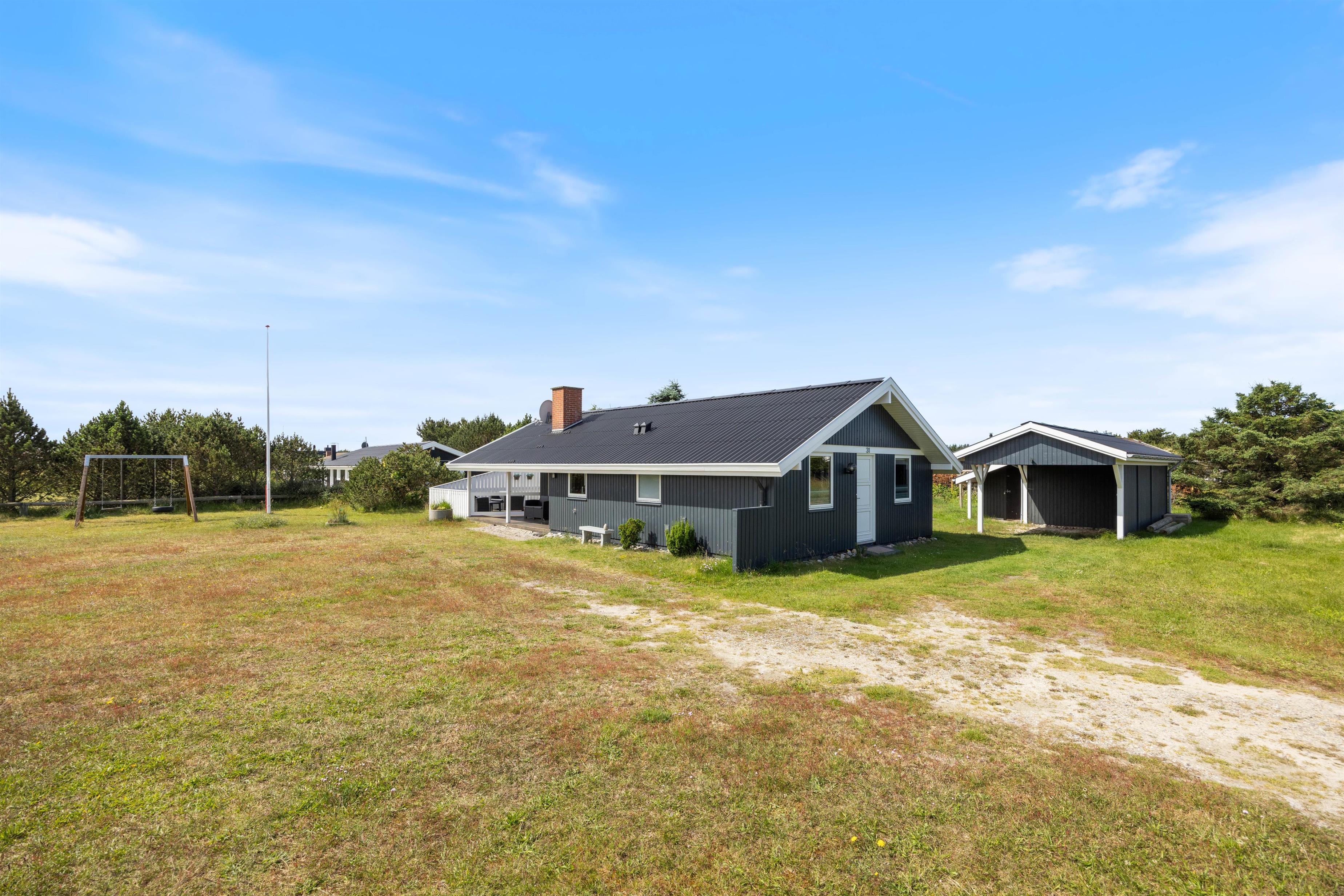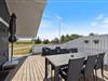 Sommerhuset har en rigtig dejlig træterrasse. Det er her sommerlivet leves. Der er mulighed for at sidde på flere sider af huset, så I kan følge solens gang på himlen. En del af terrassen er også let overdækket. Her kan I søge skygge på en hed sommerdag og søge læ på tidlige forårsdage. Sommerhuset ligger på en dejlig plænegrund, og der er derfor et stort, dejligt udeareal, som børnene kan boltre sig på. Hertil hører der desuden både sandkasse, gynge og trampolin.
