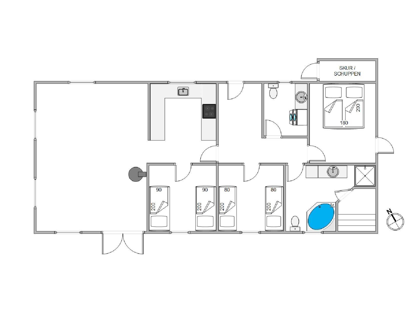 Dette sommerhus har hele to badeværelser, så I kan derfor undgå den værste kø om morgenen, hvor hele familien skal gøre sig klar. Derudover er det store badeværelse både indrettet med spabad og sauna, som I frit kan benytte. Her kan den ekstra velvære nydes i spabadet eller saunaen efter en god dag i naturen, hvor I rigtigt kan mærke følelsen af ferie.
