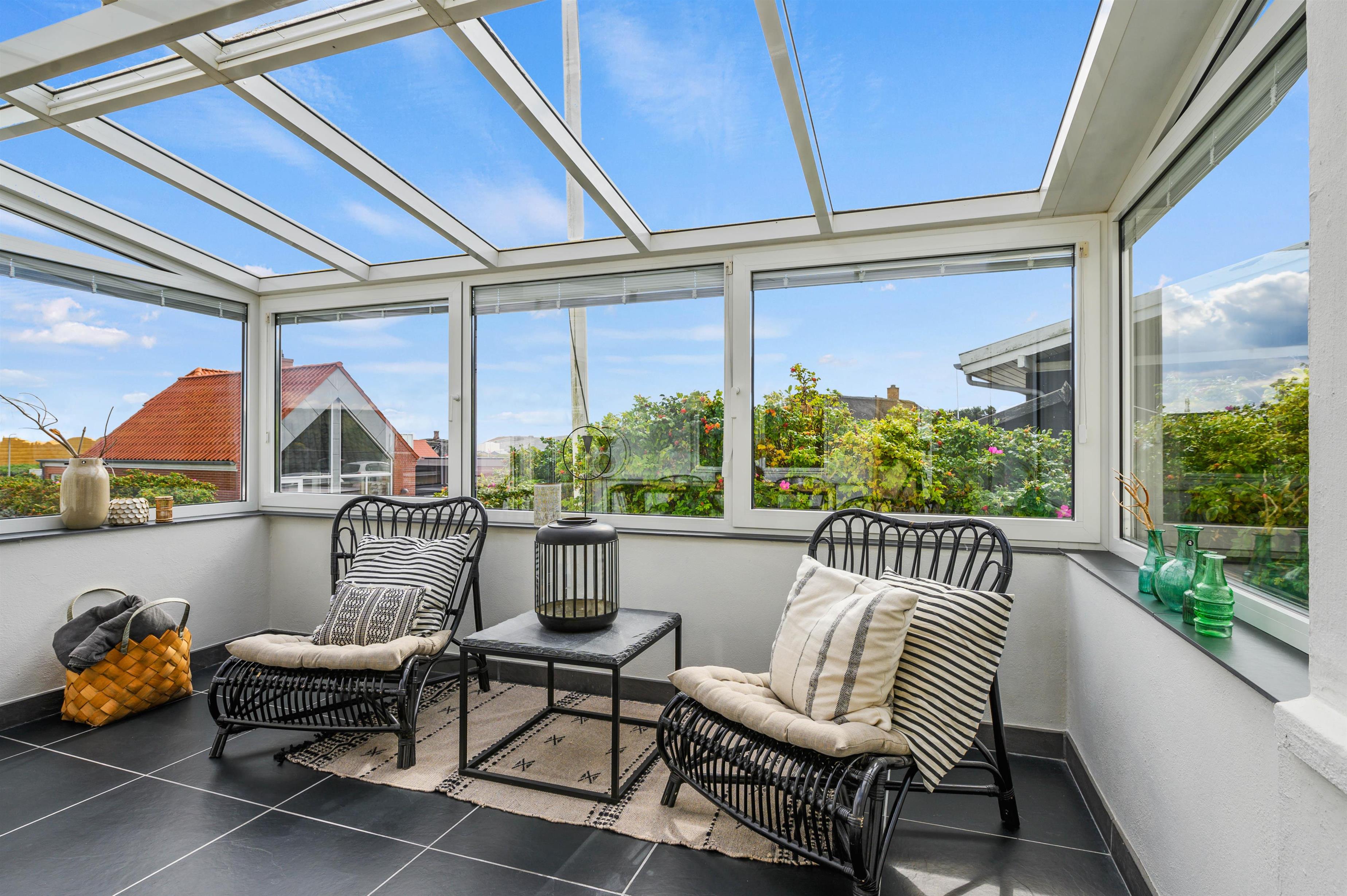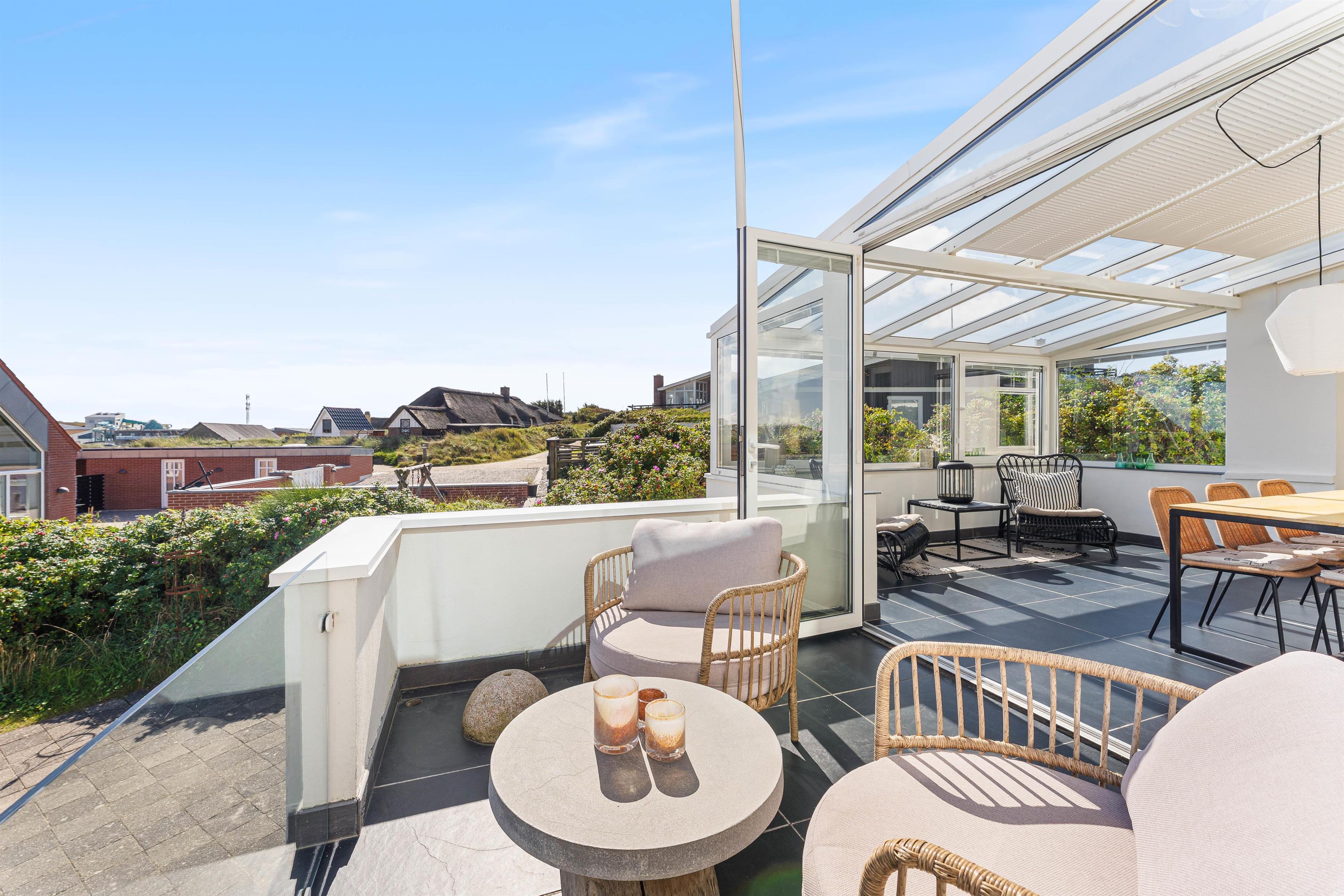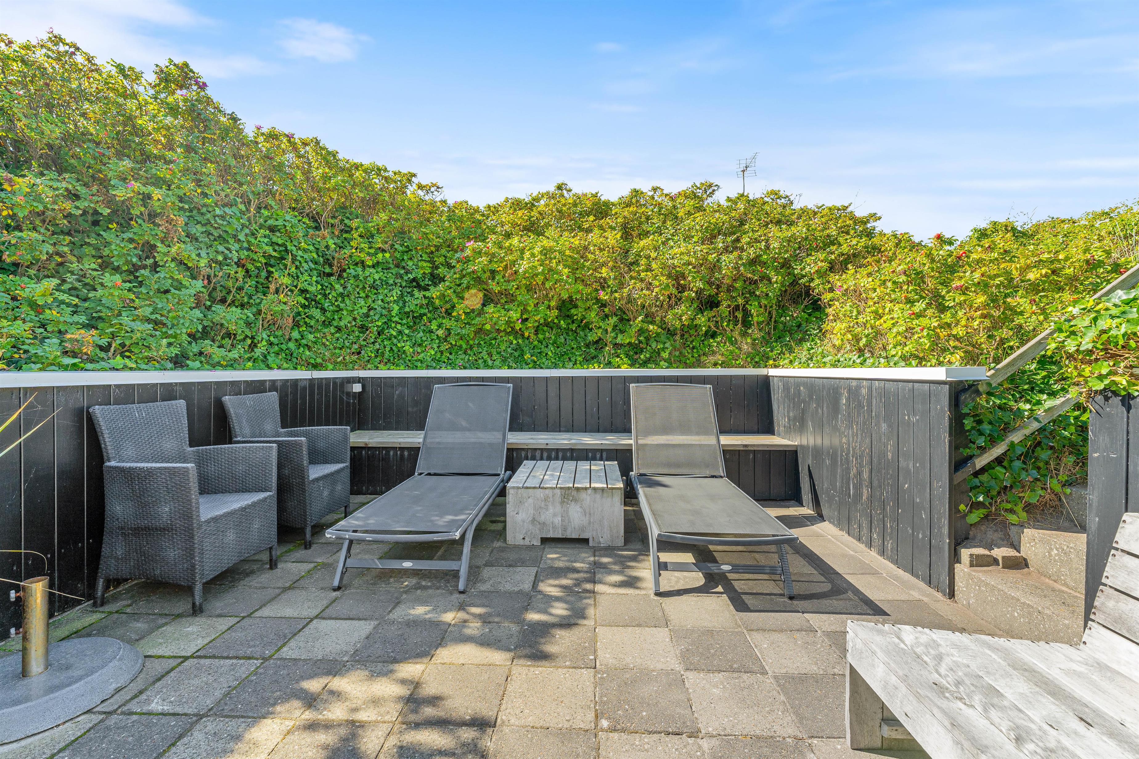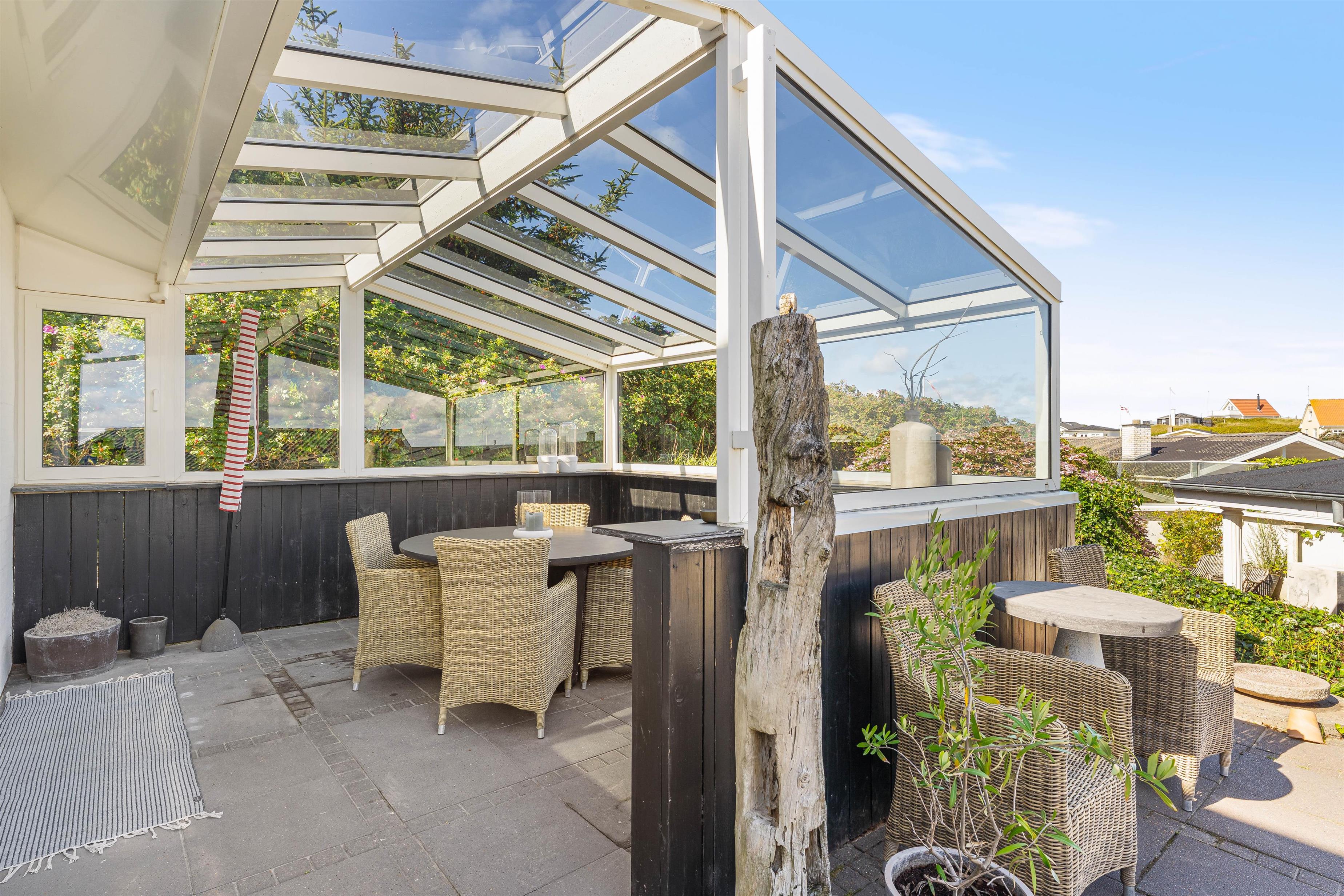 Til huset er der så mange forskellige terrasser, så der er altid mulighed for at finde læ og nyde solen stråler, eller bare nyde den friske vestenvind. Feriehusets udestue kan benyttes til grillaftener i mange af årets måneder, ligesom den delvist lukkede og overdækkede terrasse mod nord kan det. Den skønne naturgrund har også mange steder, hvor I kan nyde noget privatliv, da der er mange forskellige former for afskærmninger der sikrer masser af privatliv og ren ferienydelse.