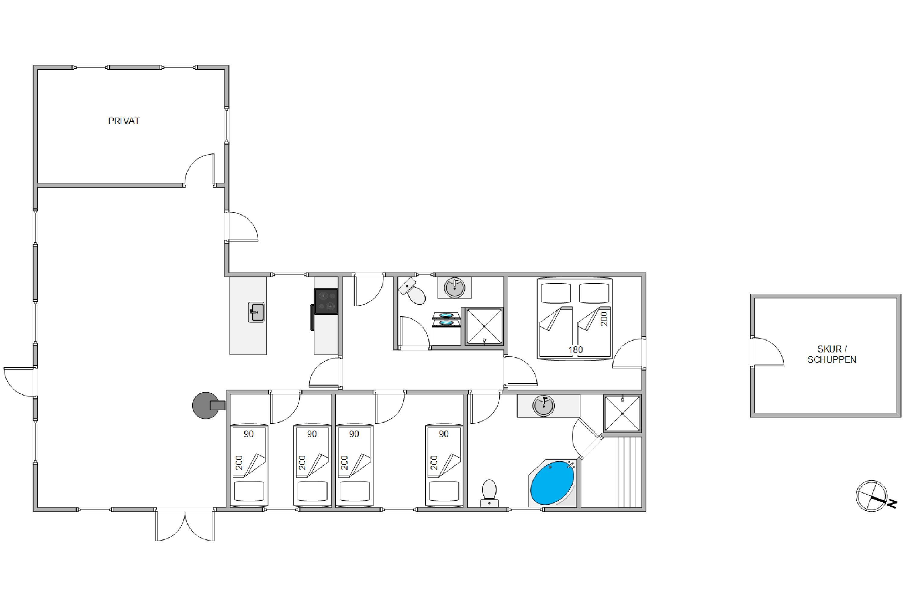 1. soverum/sengestørrelser2 x 90 x 200