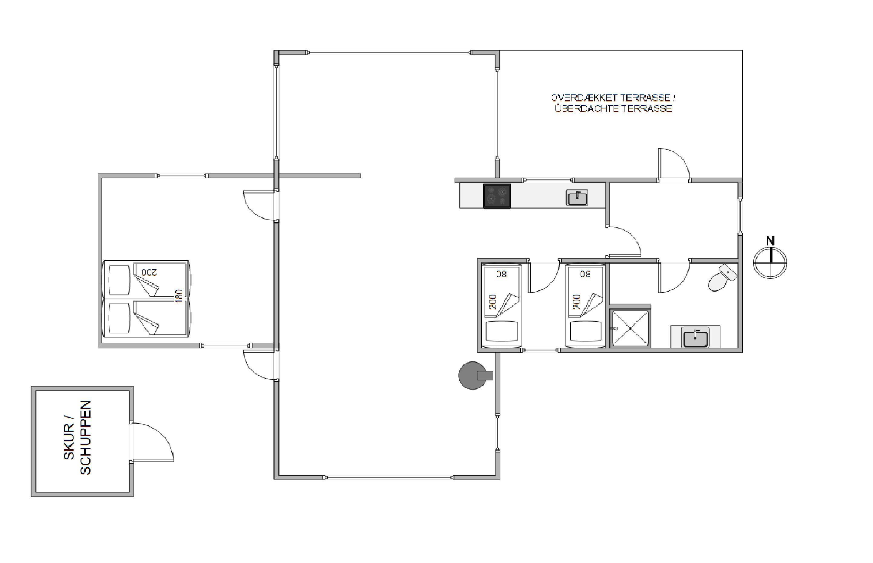 Der er to gode soveværelser i sommerhuset - et med dobbeltseng og et med to enkeltsenge. Desuden hører der et anneks med til sommerhuset med to enkeltsenge, hvor den ekstra plads kan udnyttes til overnattende gæster.