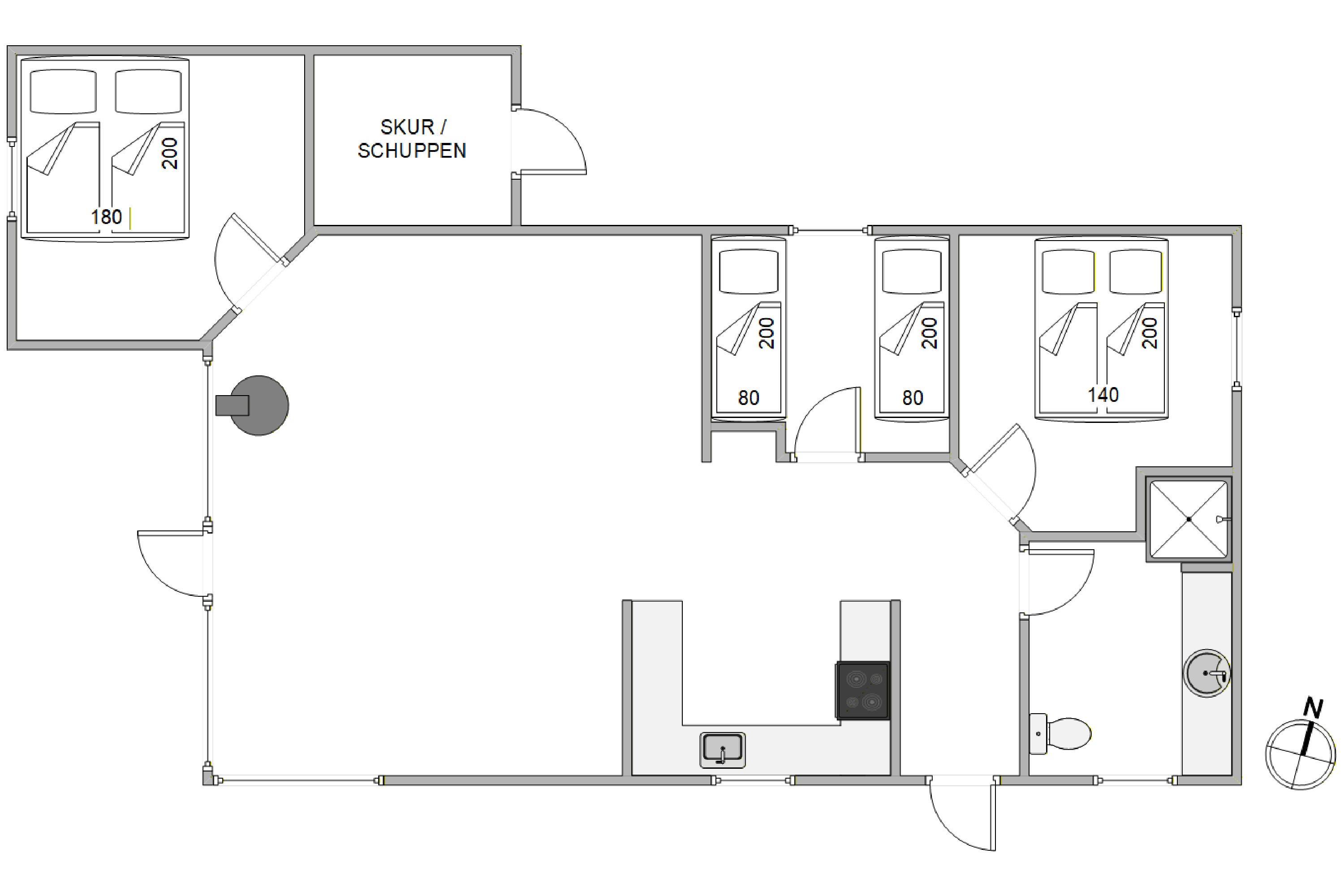 Sommerhuset er opført i år 2000 og har et boligareal på 79 kvadratmeter, som giver god plads til en afslappende ferie ved Vesterhavet. Med 3 hyggelige soverum fordelt på 2 dobbeltsenge og 2 enkeltsenge er der komfortabel plads til op til 6 personer – ideelt til både familieferie og ophold med venner.