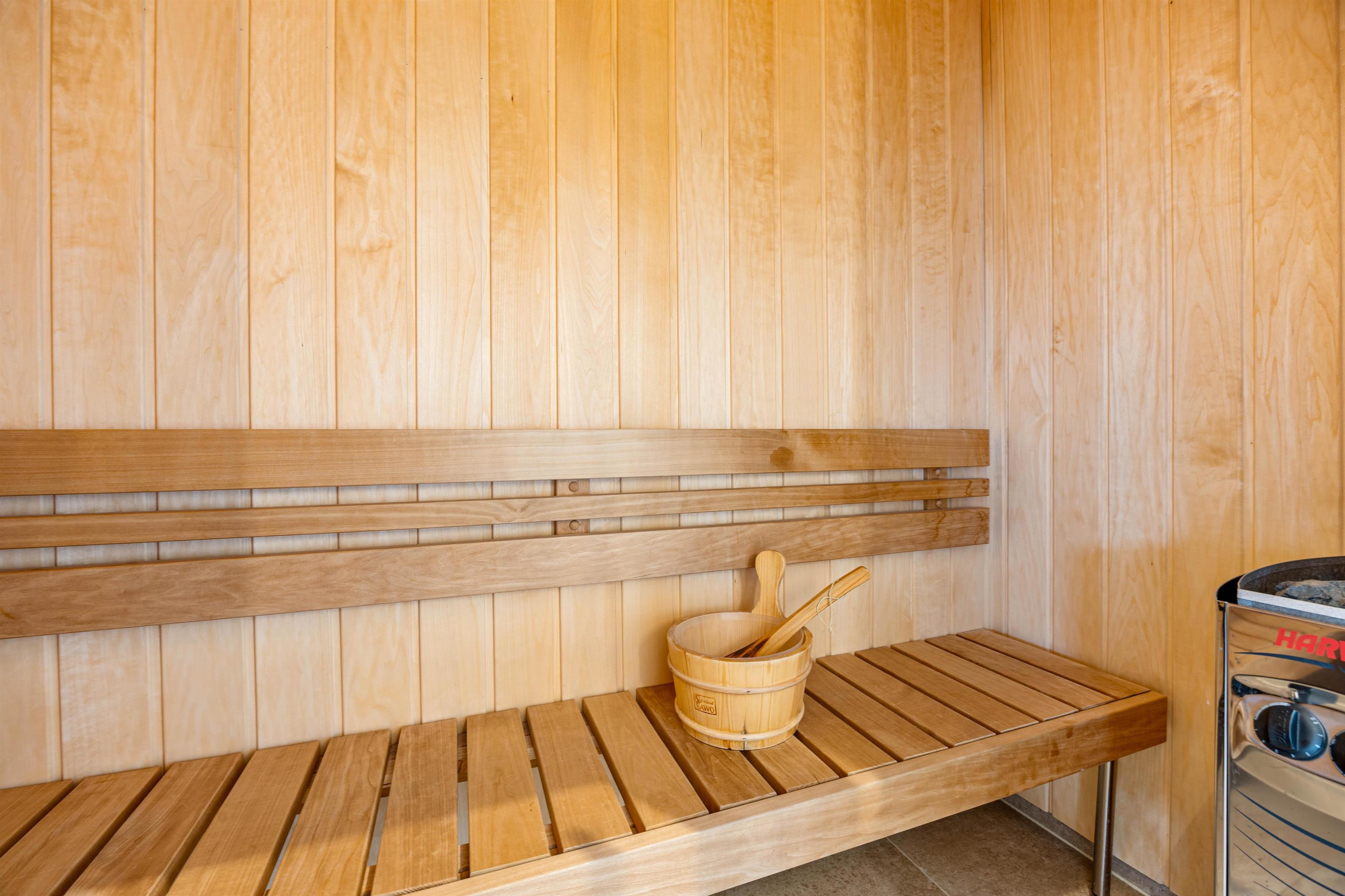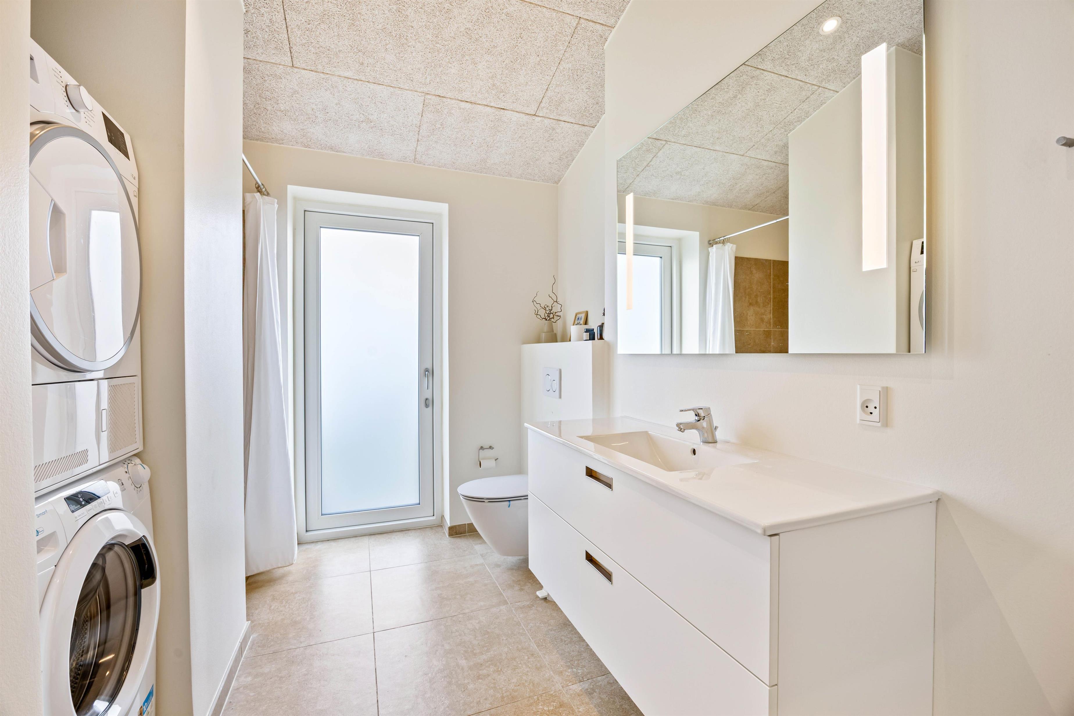 Begge badeværelser er topmoderne, hvoraf det ene er med sauna. På badeværelset findes også vaskemaskine, tørretumbler og pusleplads. Desuden er feriehuset godt isoleret, hvilket også hjælper med til at holde forbruget nede.