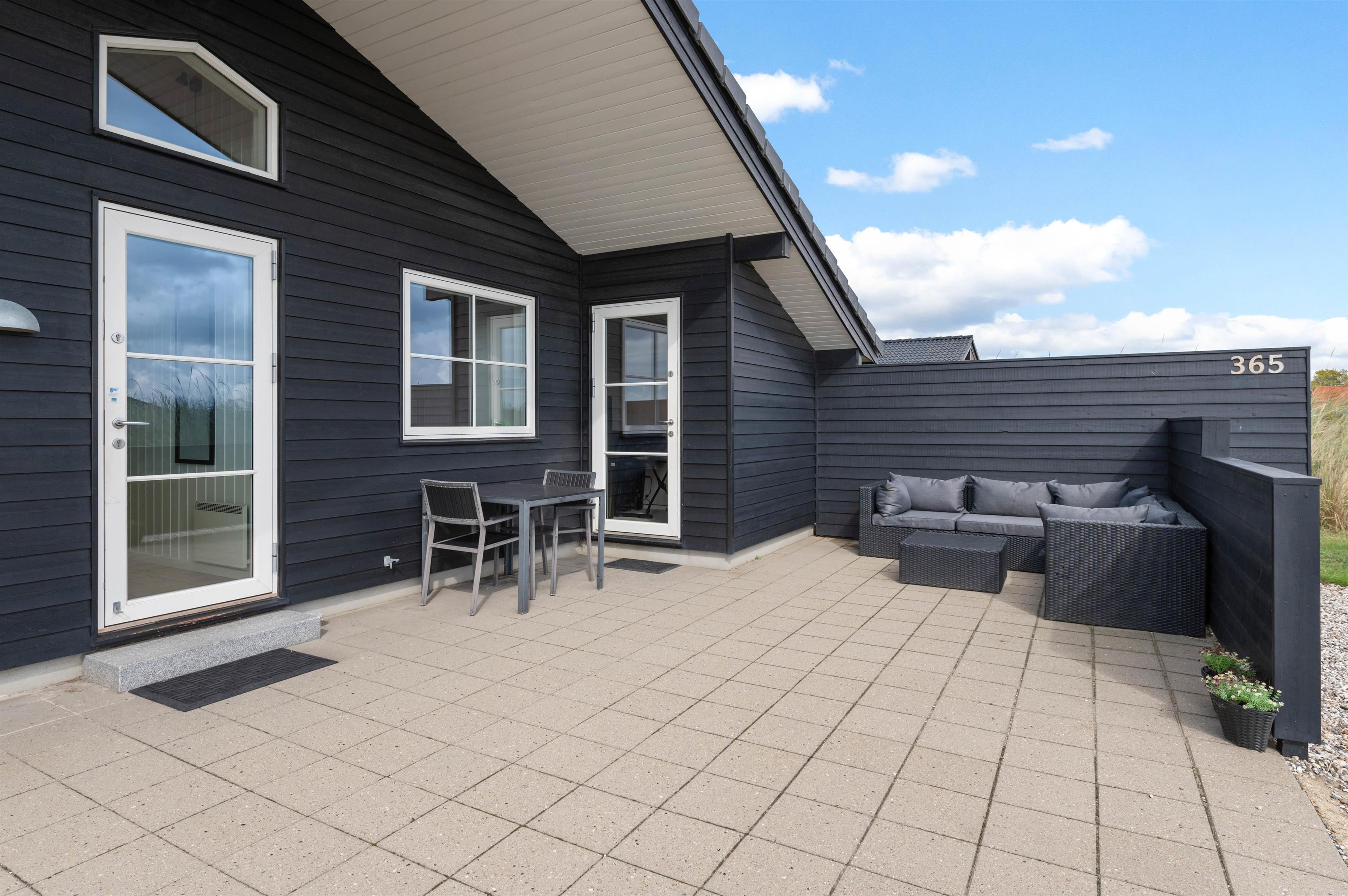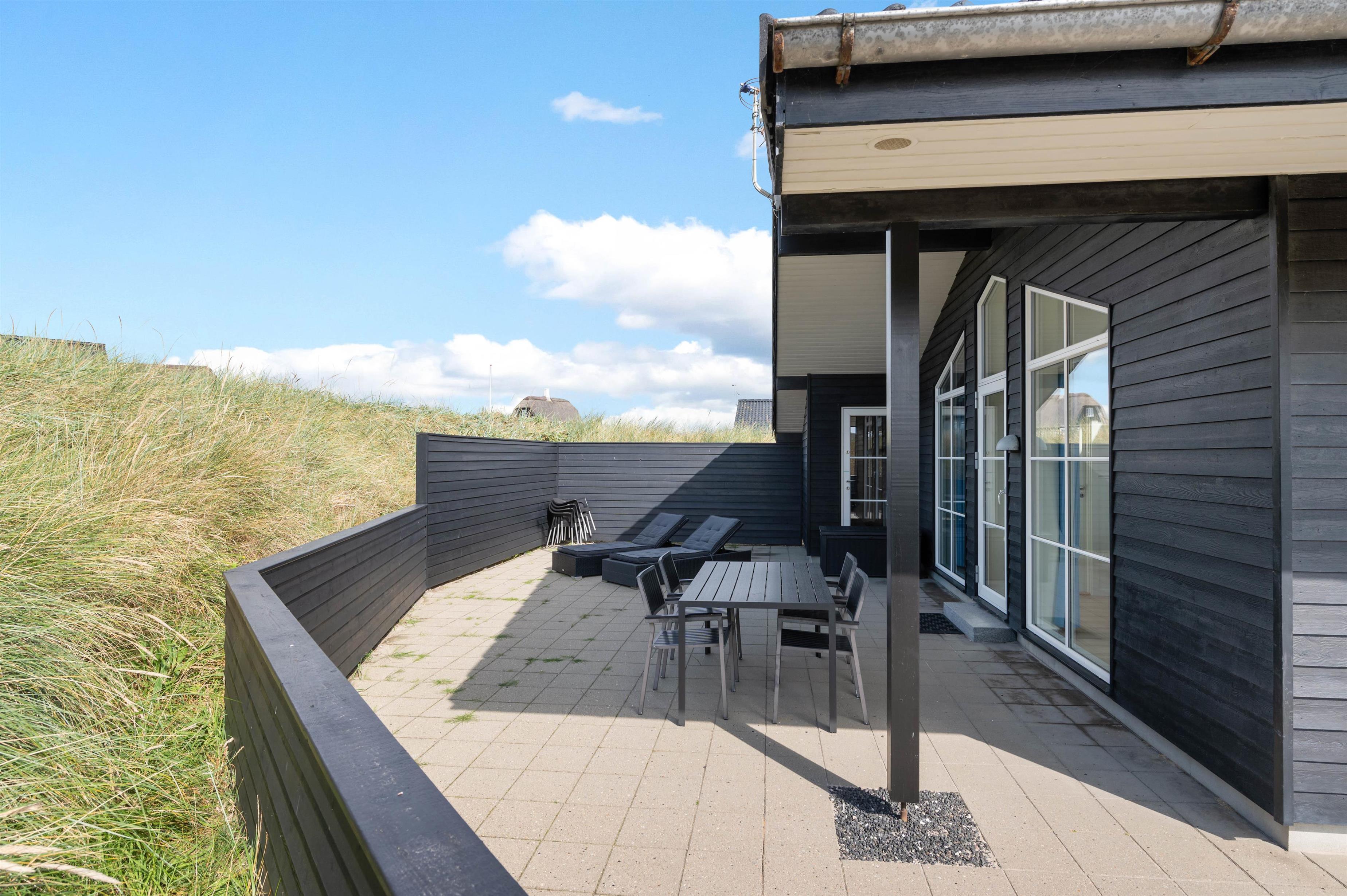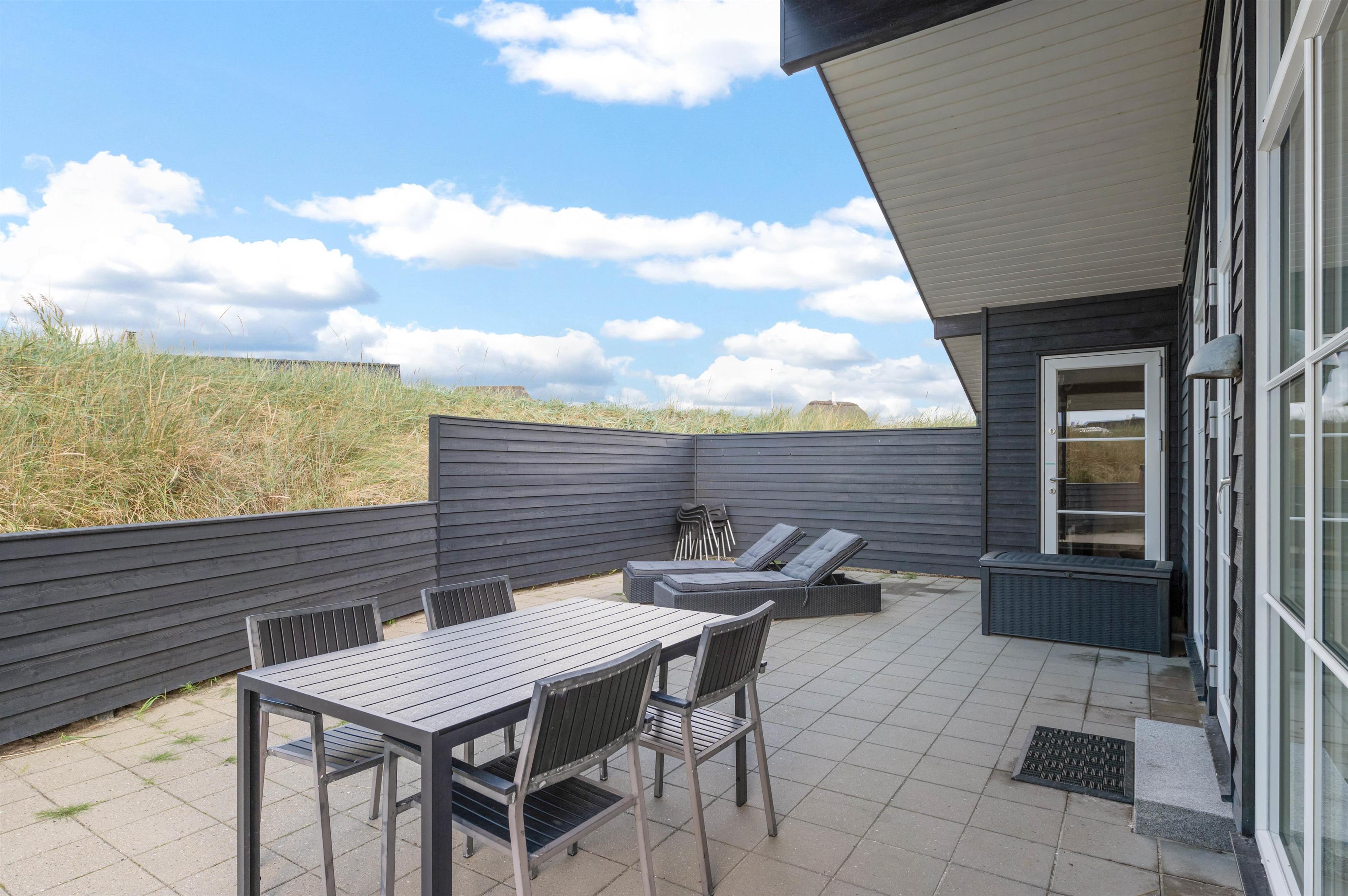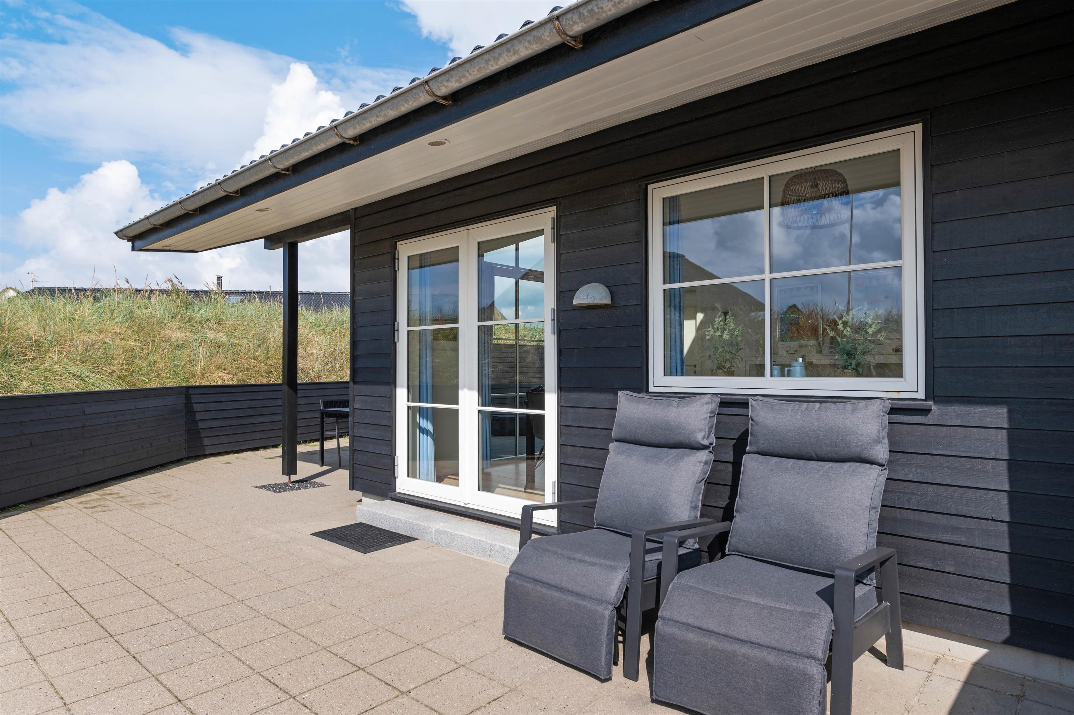 Til et feriehus hører naturligvis også en terrasse - I dette tilfælde en skøn, delvist overdækket og afskærmet terrasse, hvor I kan nyde den friske luft og en hyggelig grillaften. Terrassen er udstyret med liggestole, komfortable loungemøbler og en grill.
